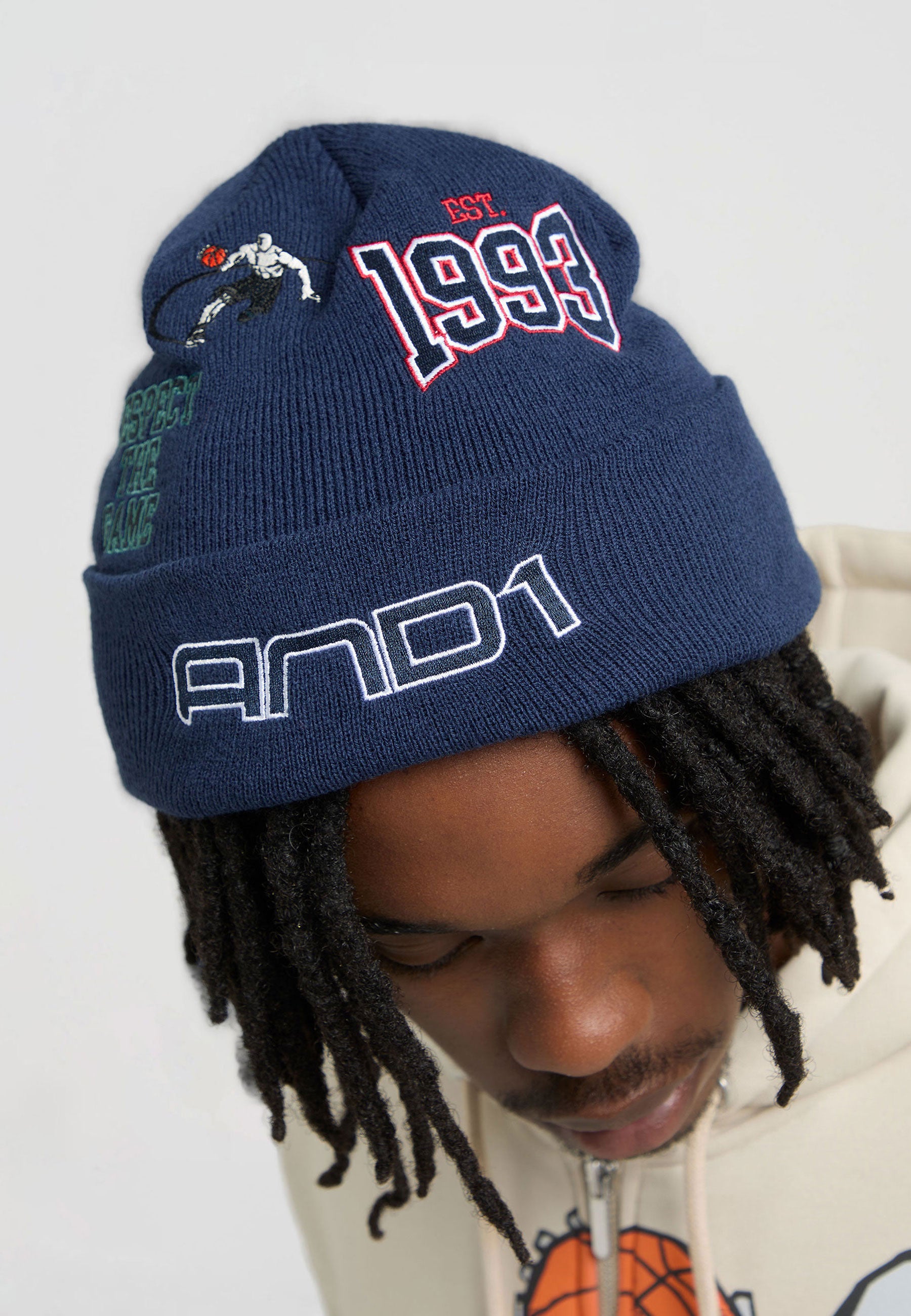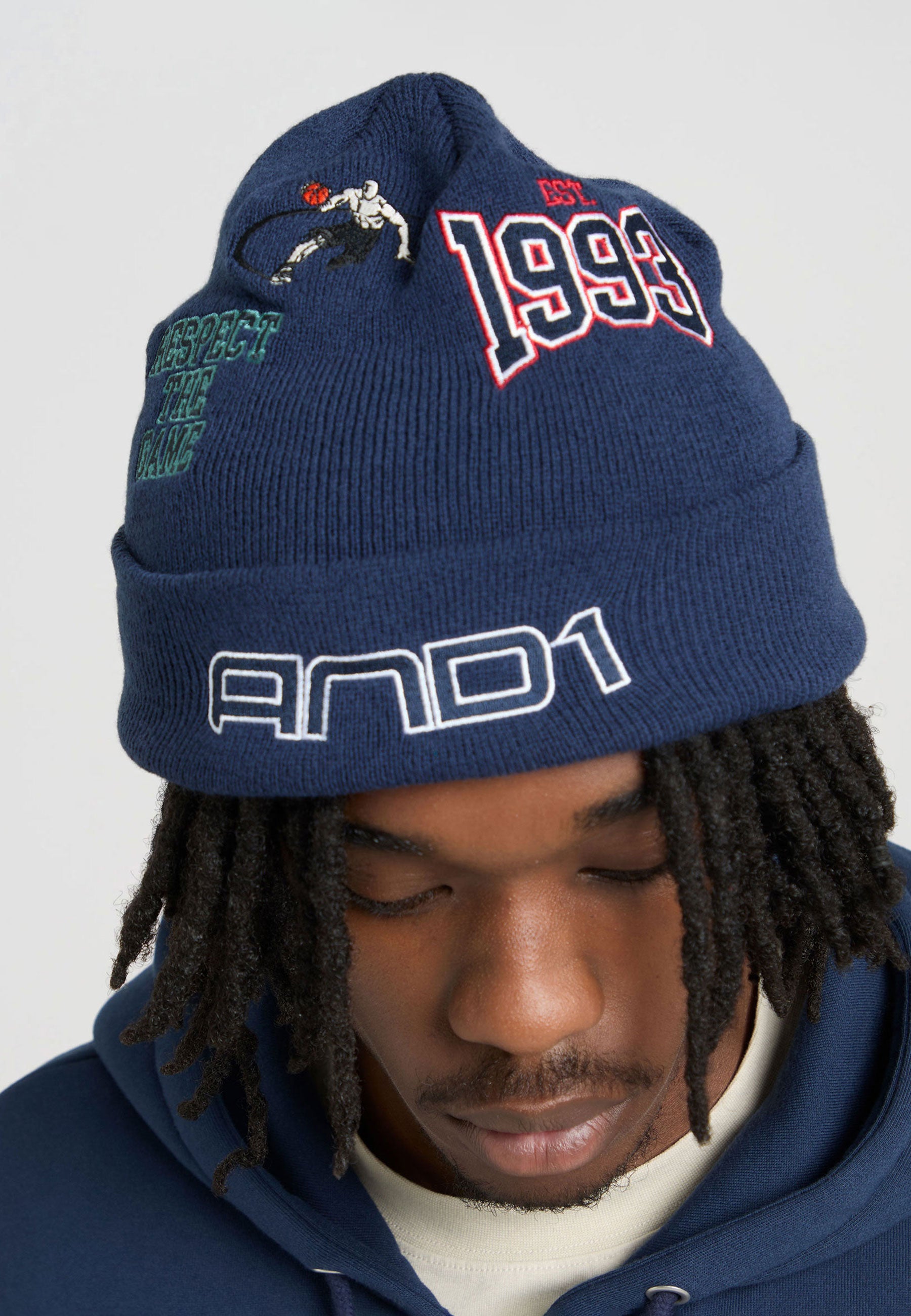 Unisex Retro Logo Multi Badge Beanie Hat - Navy
