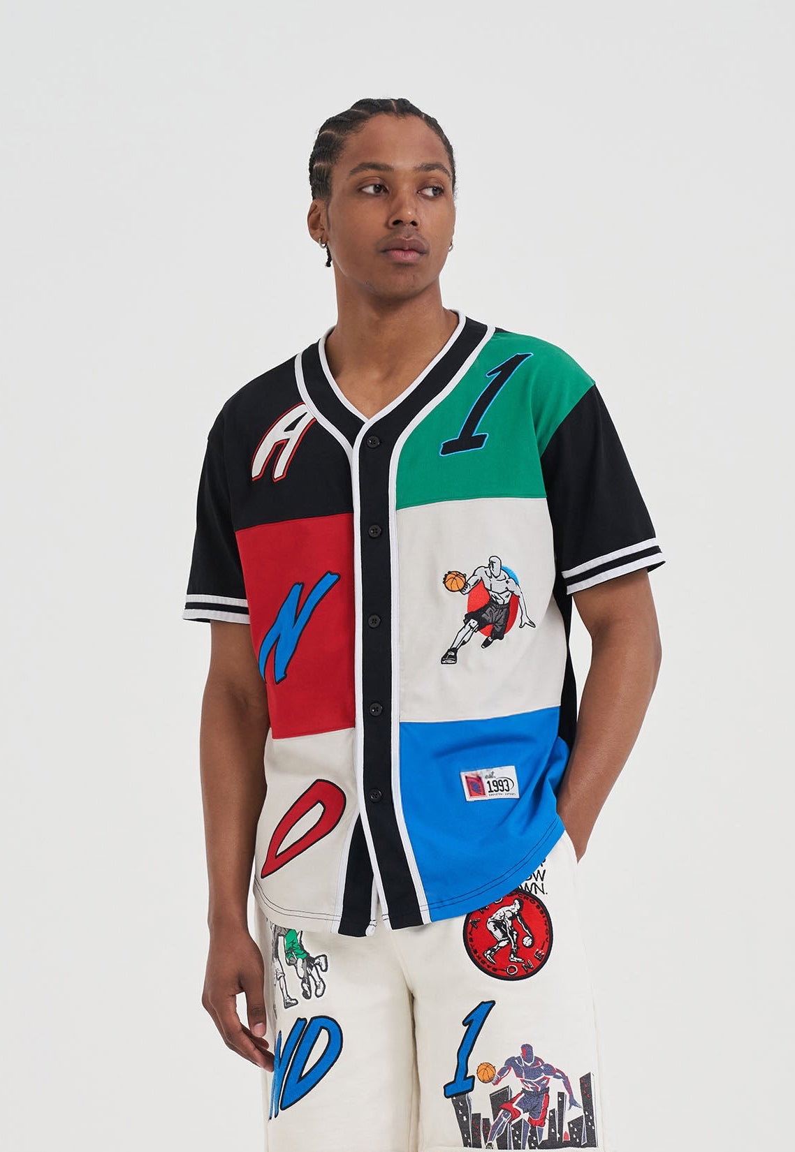 Mens Patchwork Baseball Jersey Top - Multi