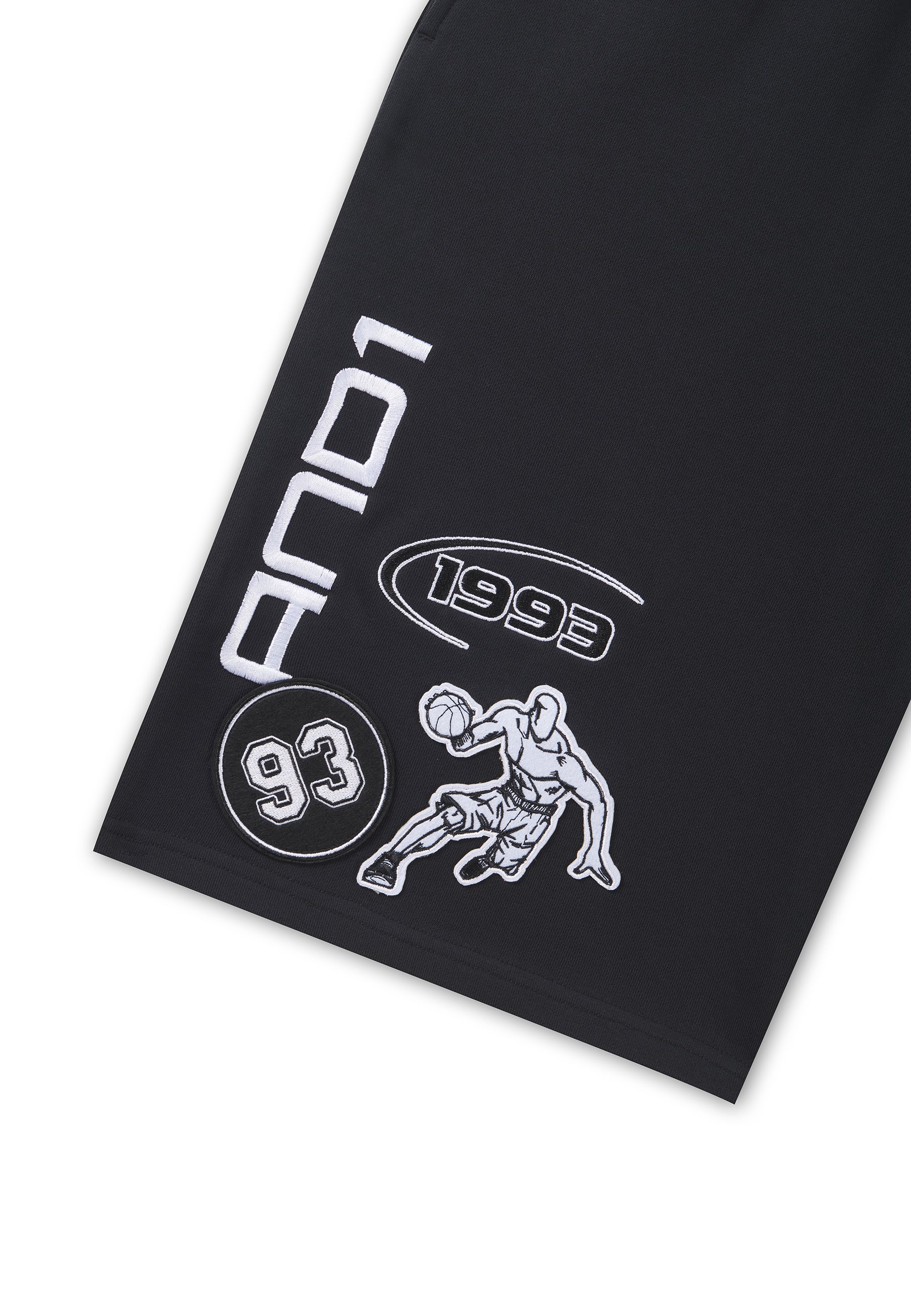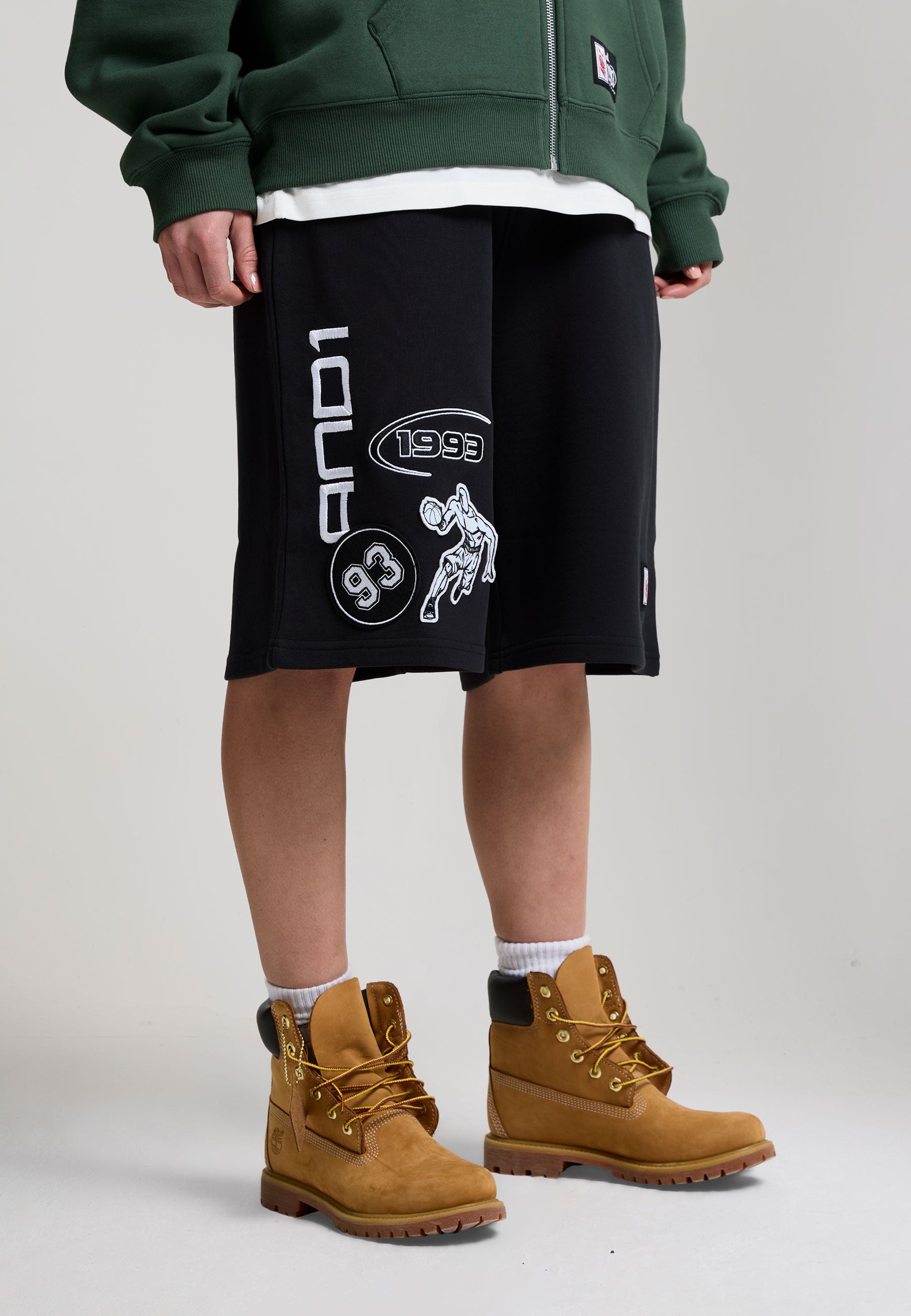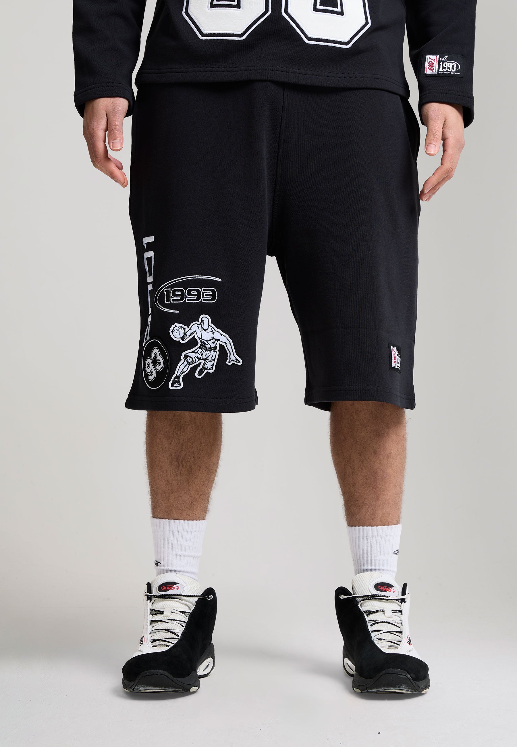 Mens On Court Applique Badge Jersey Basketball Jorts - Black
