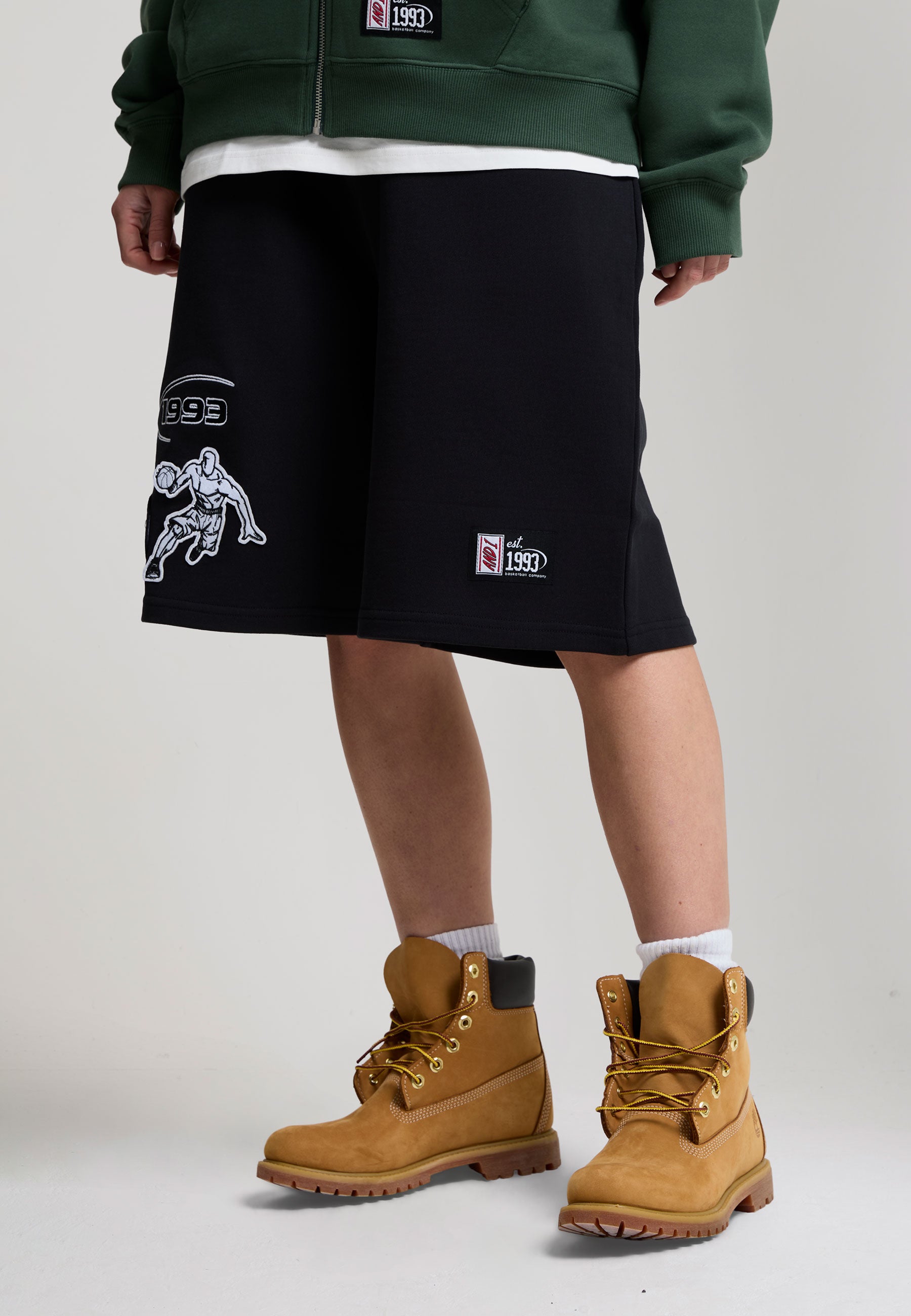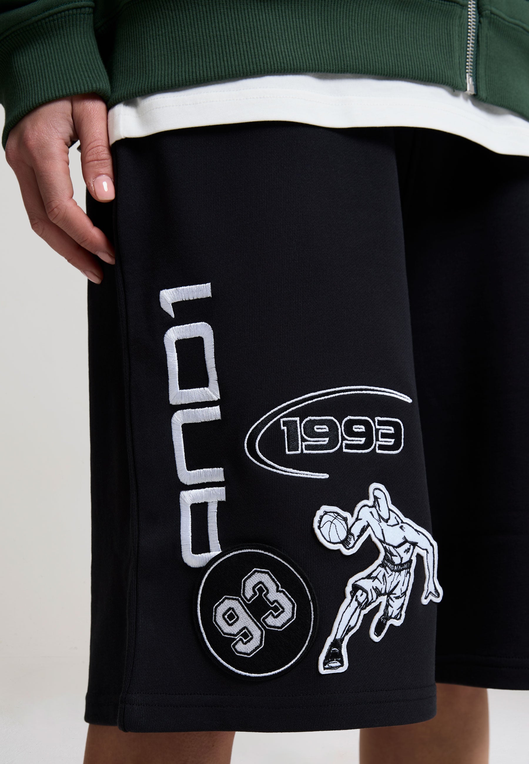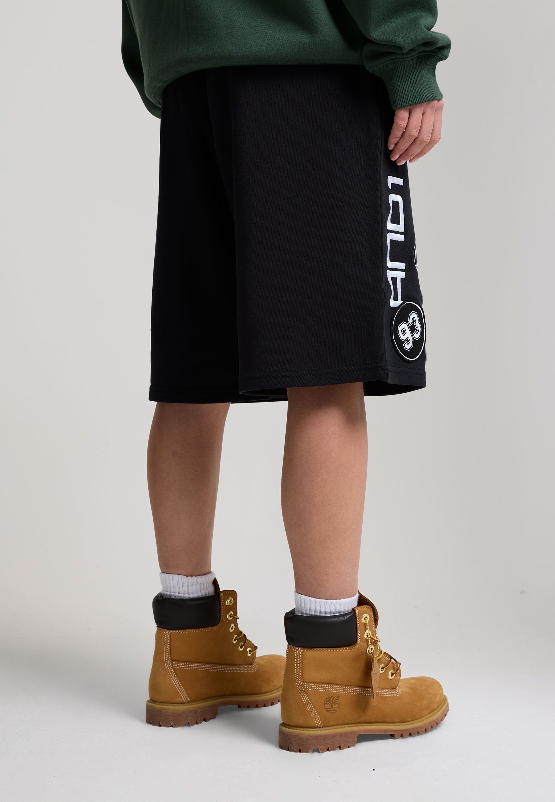 Mens On Court Applique Badge Jersey Basketball Jorts - Black