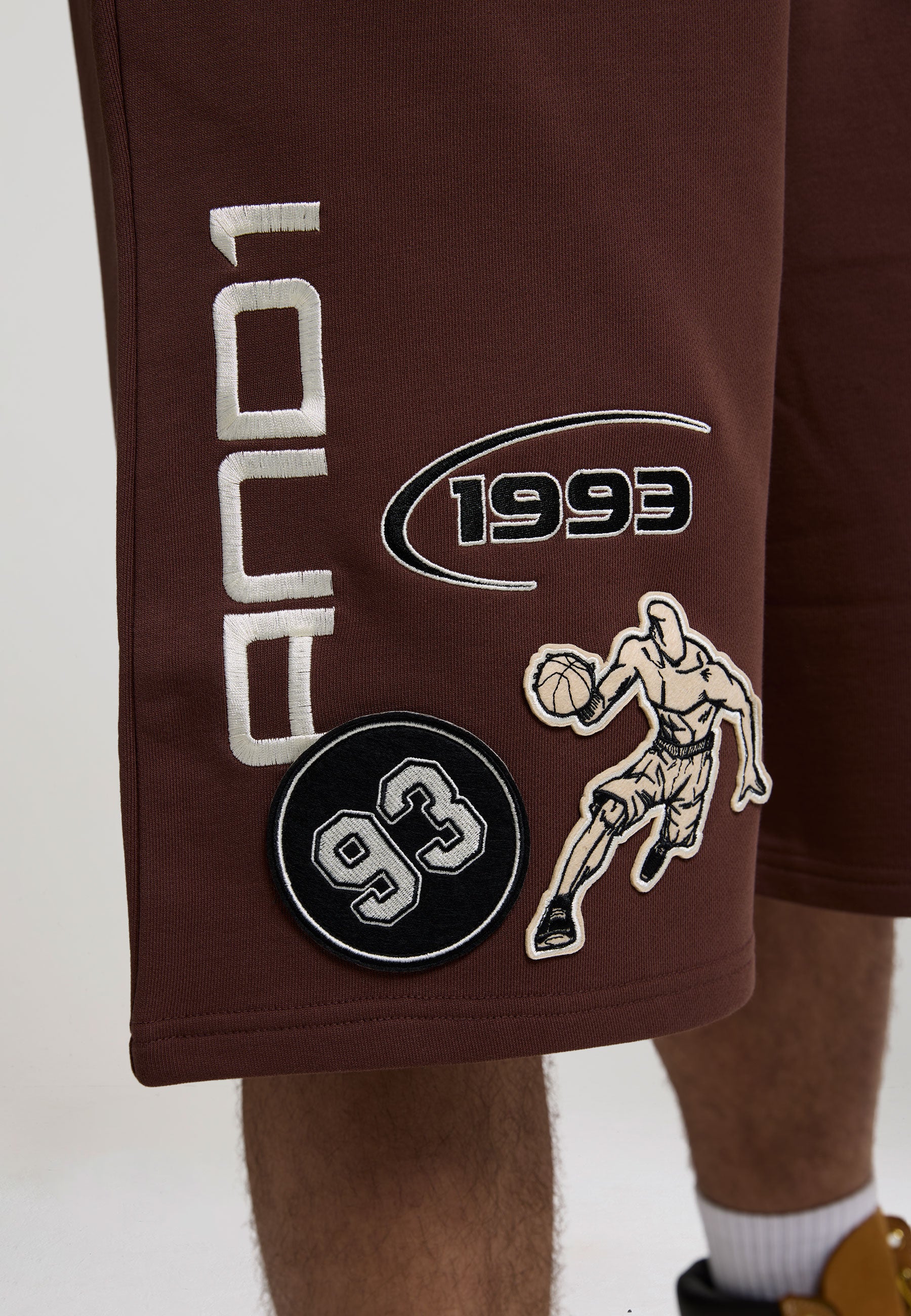 Mens On Court Applique Badge Jersey Basketball Jorts - Brown
