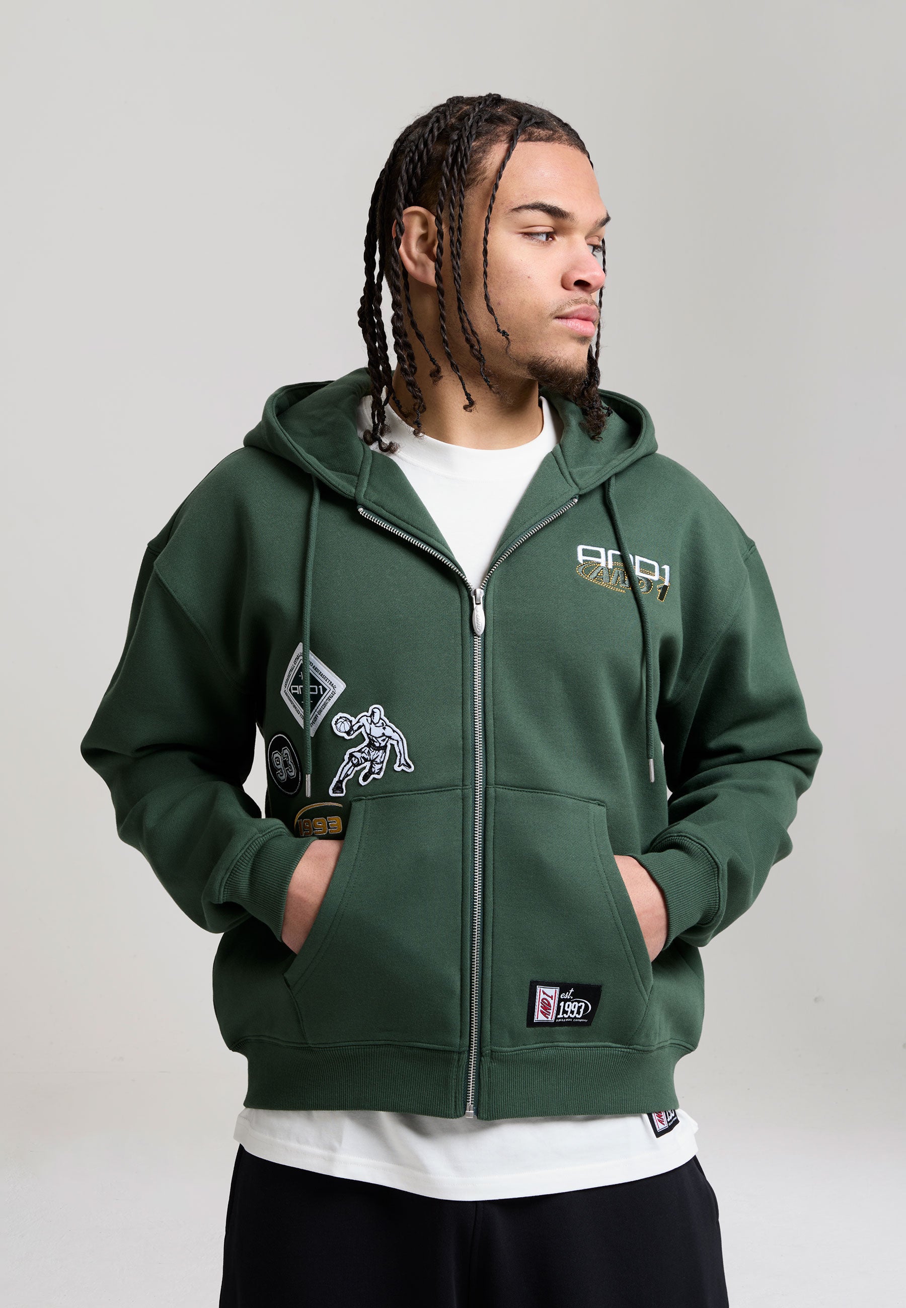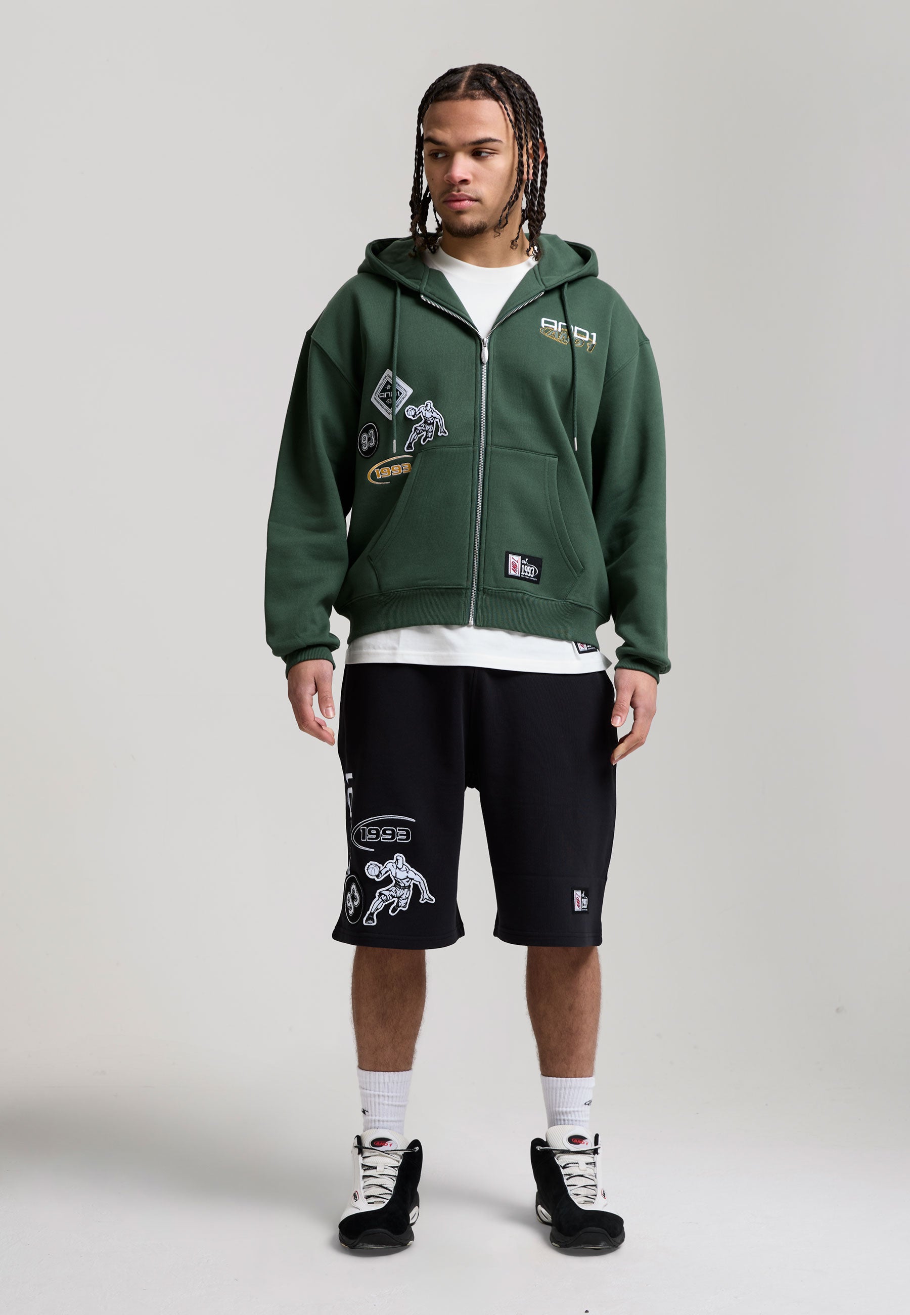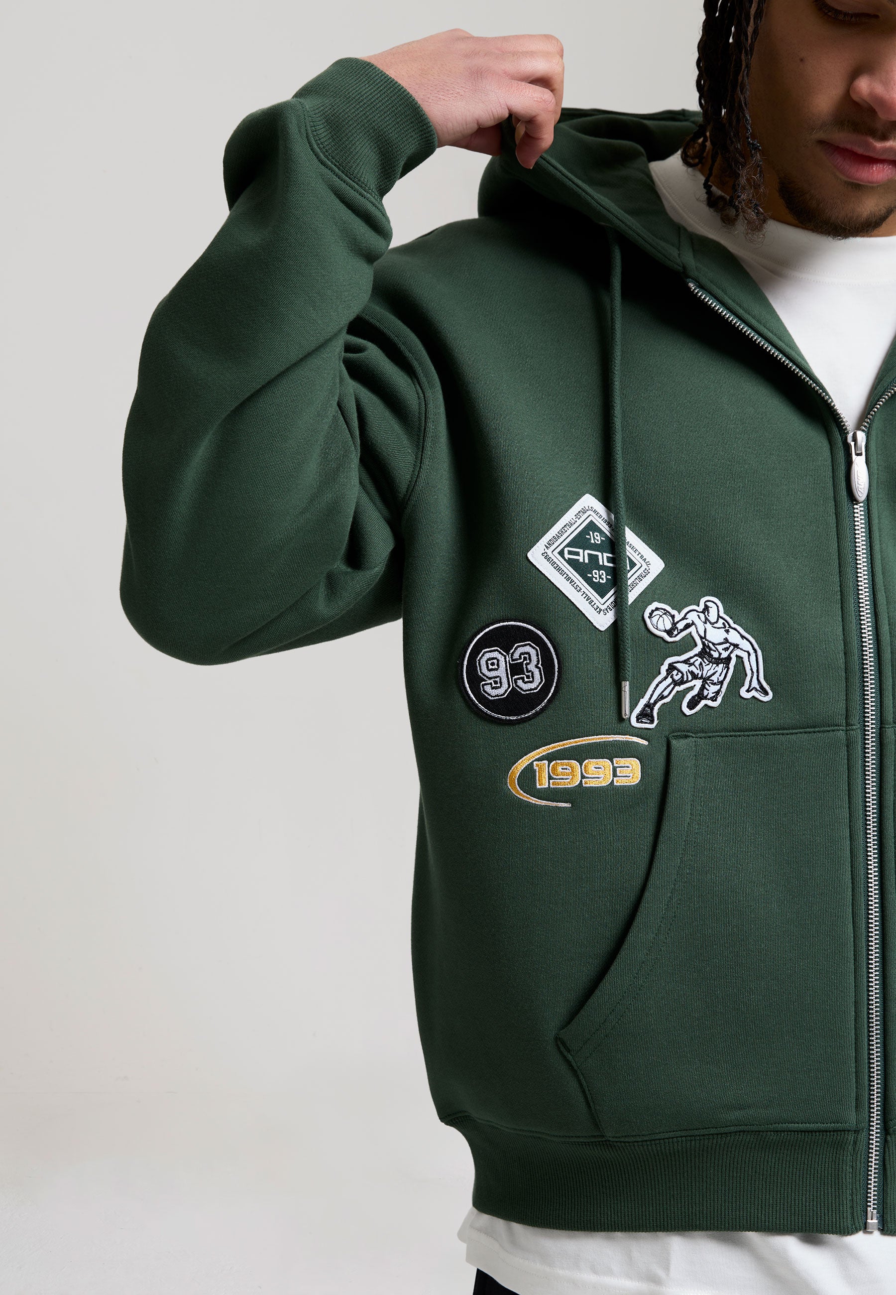 Mens Respect The Game Multi Badge Zip Through Hoodie - Forest Green