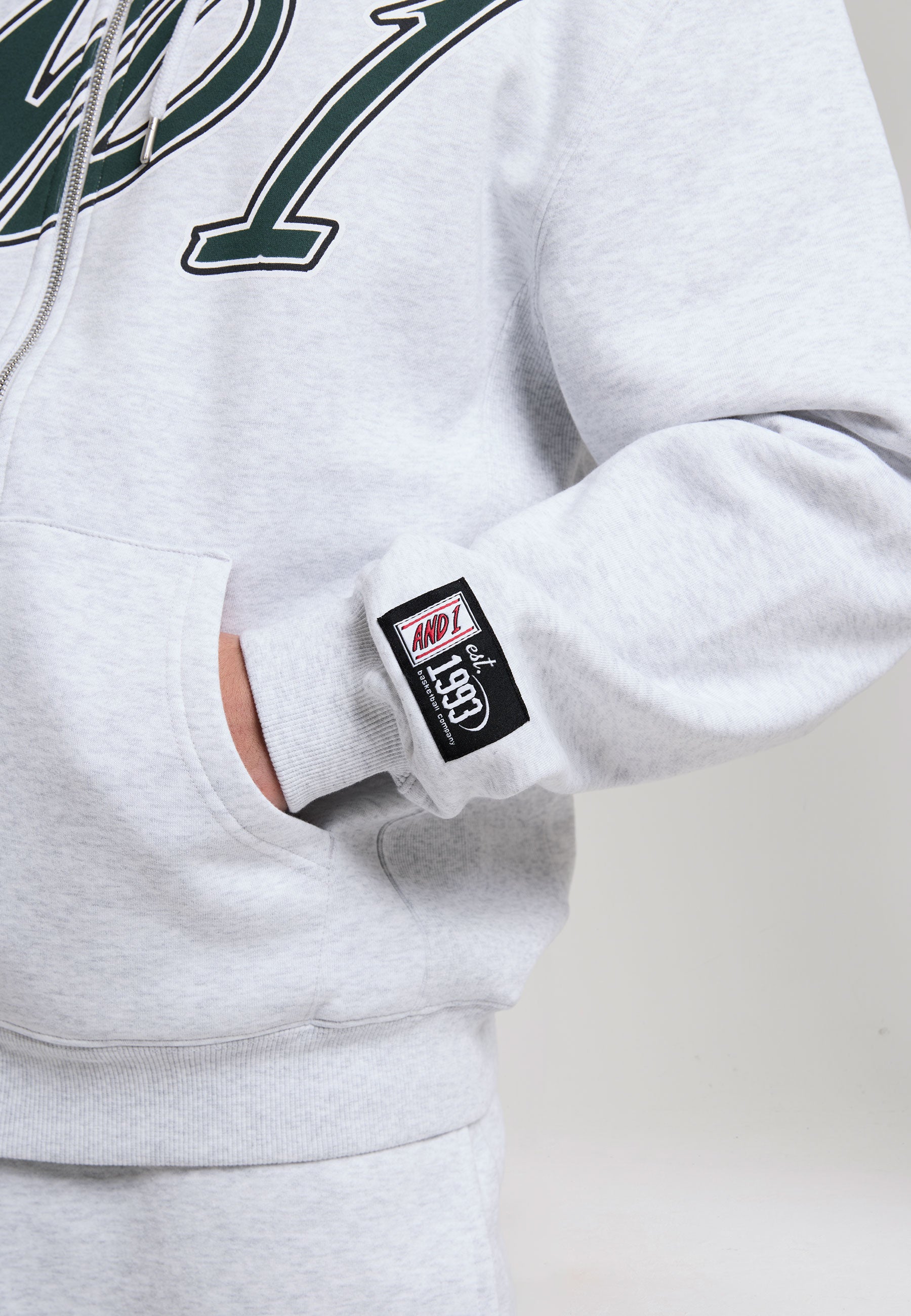 Mens Staple Graphic Zip Thru Hoodie - Grey Marl
