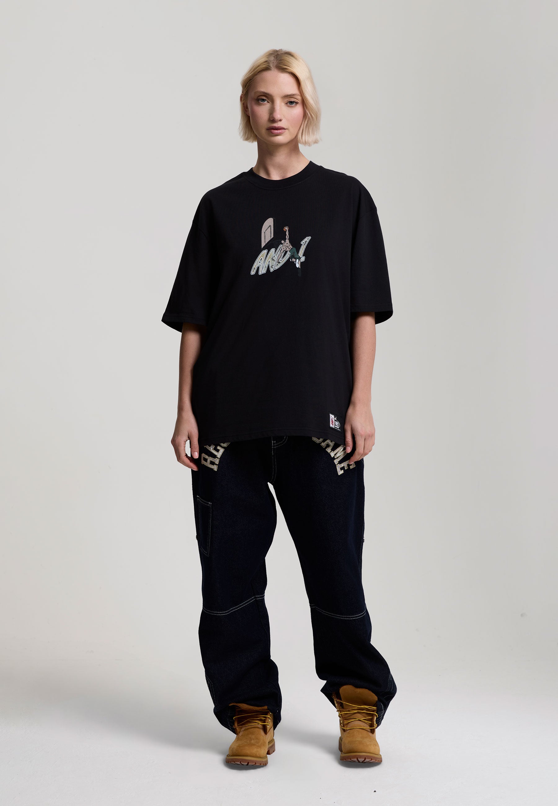 Womens Camo Dunk Oversized Graphic T-Shirt - Black