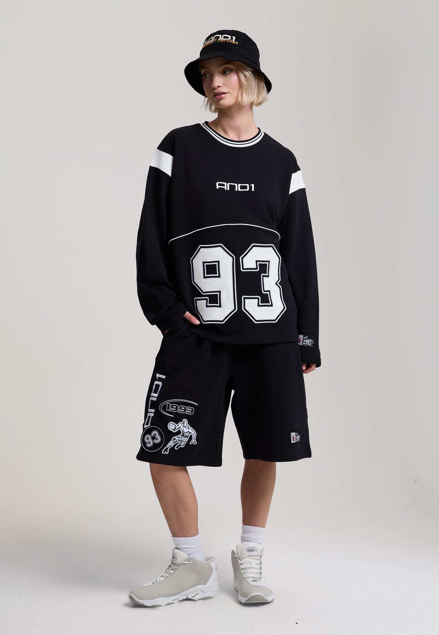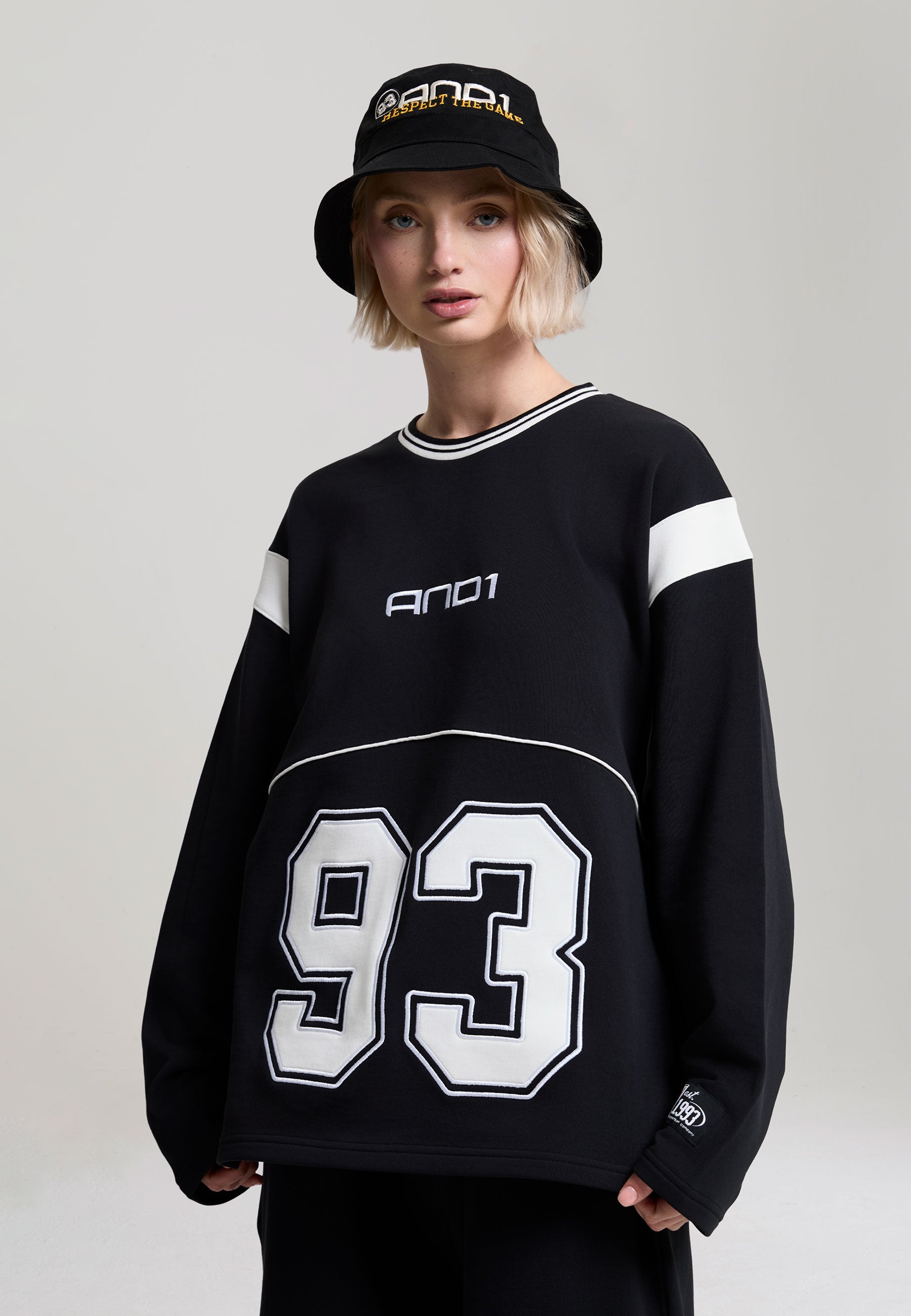 Womens Ls 93 Applique Panelled Sweatshirt - Black