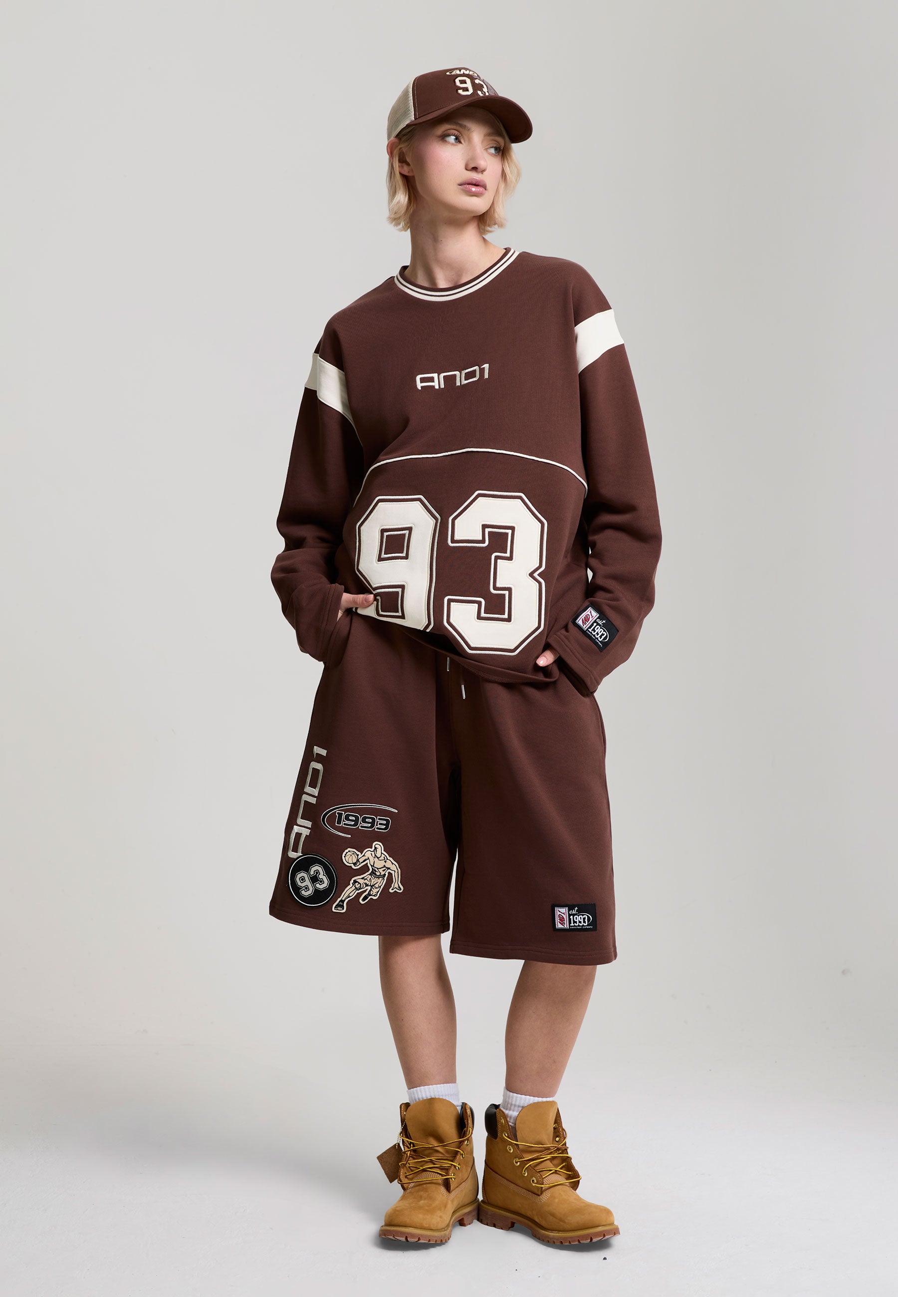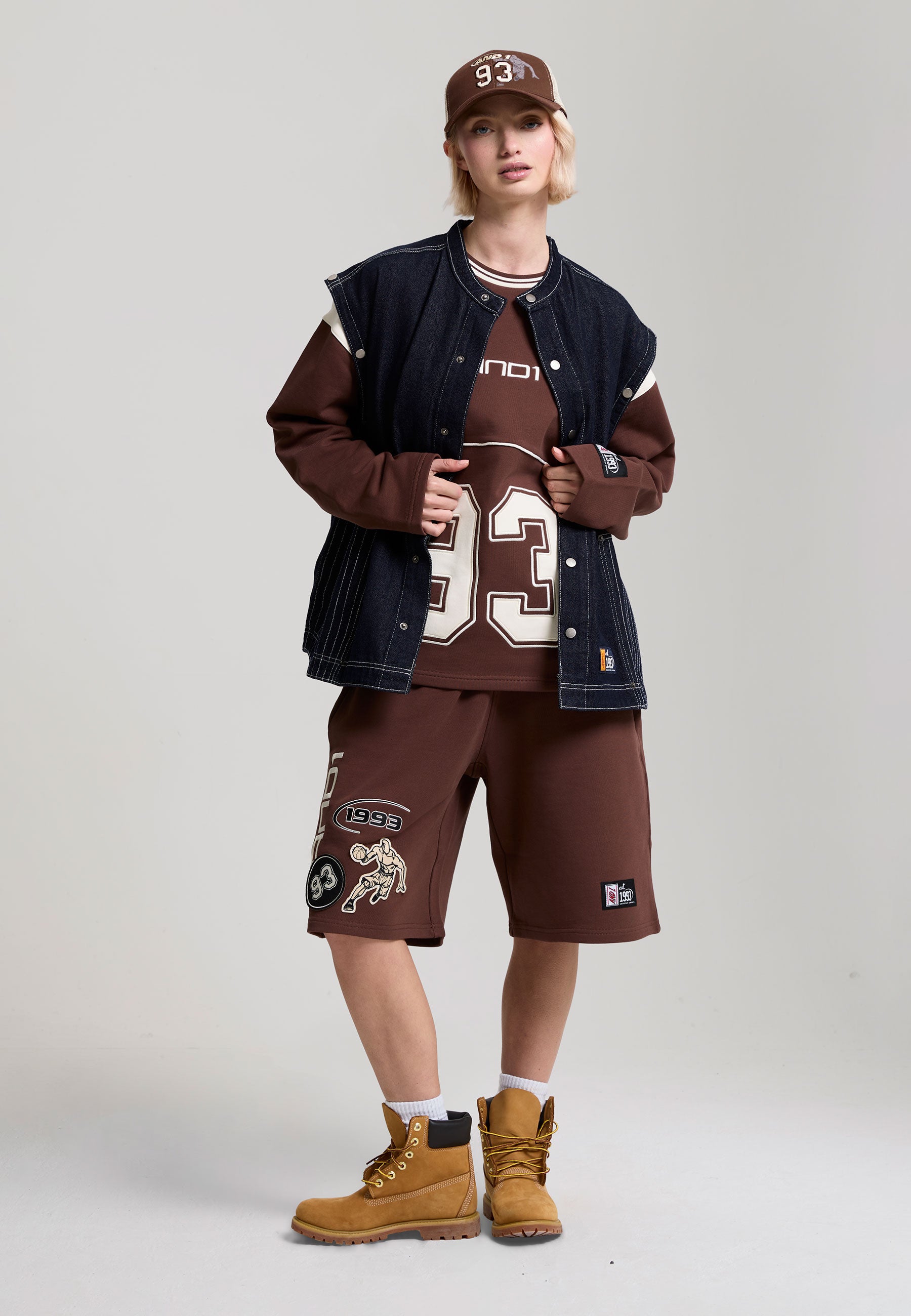 Womens On Court Applique Badge Jersey Basketball Jorts - Brown