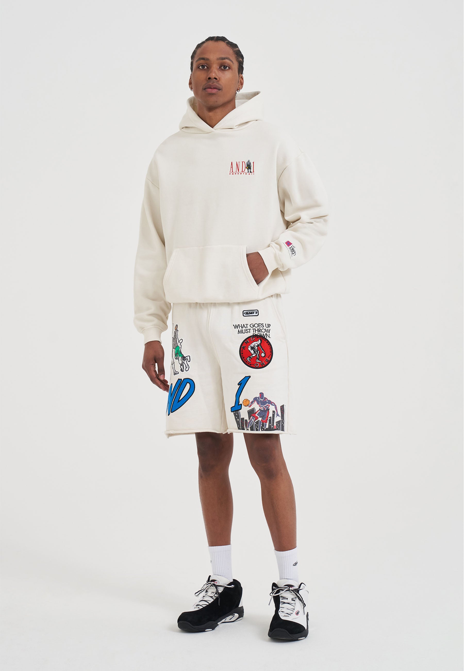 HERREN CORE RETRO LOGO GRAPHIC HOODIE in Ecru