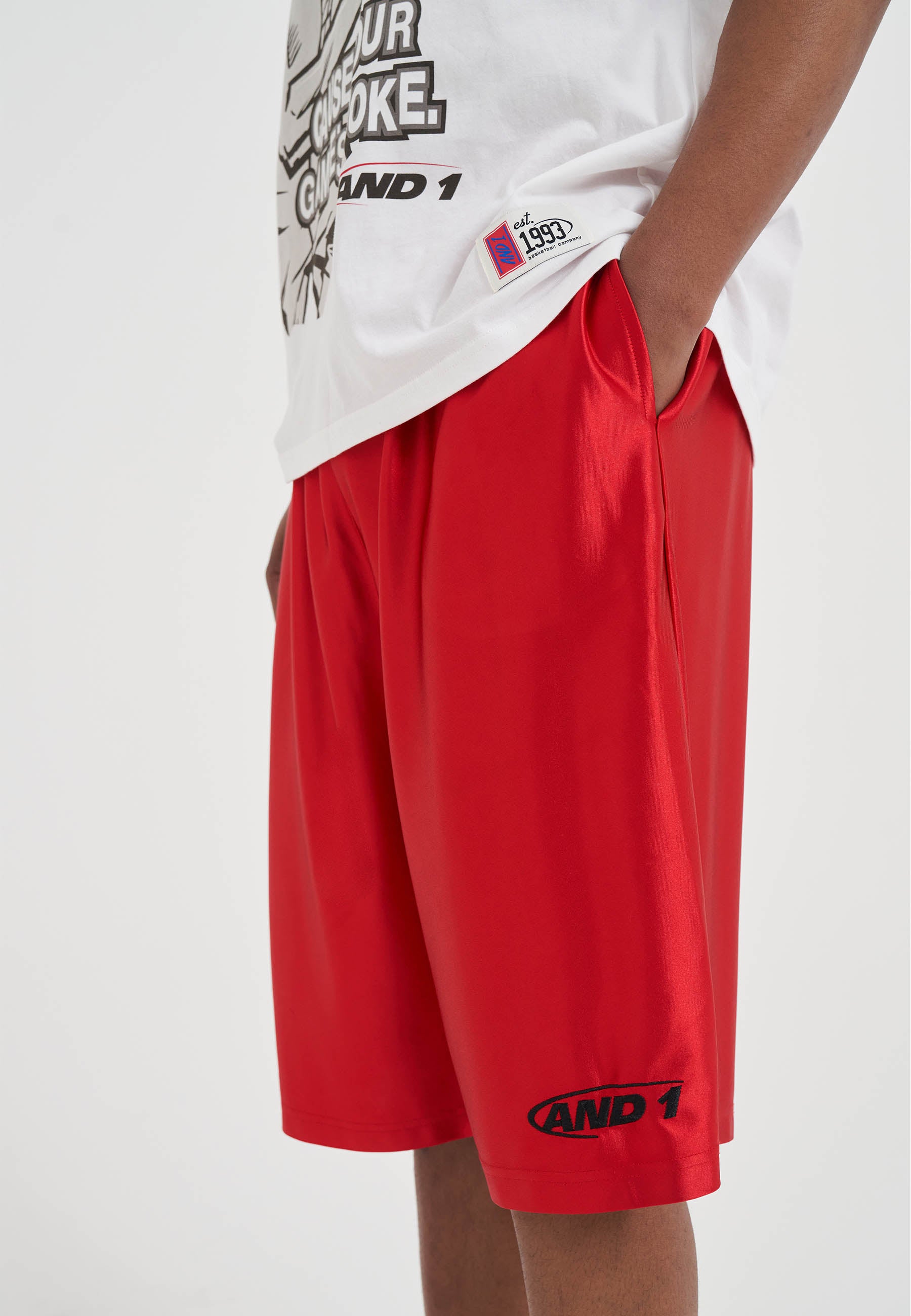 HERREN CORE SATIN BADGE BASKETBALLSHORTS in Rot