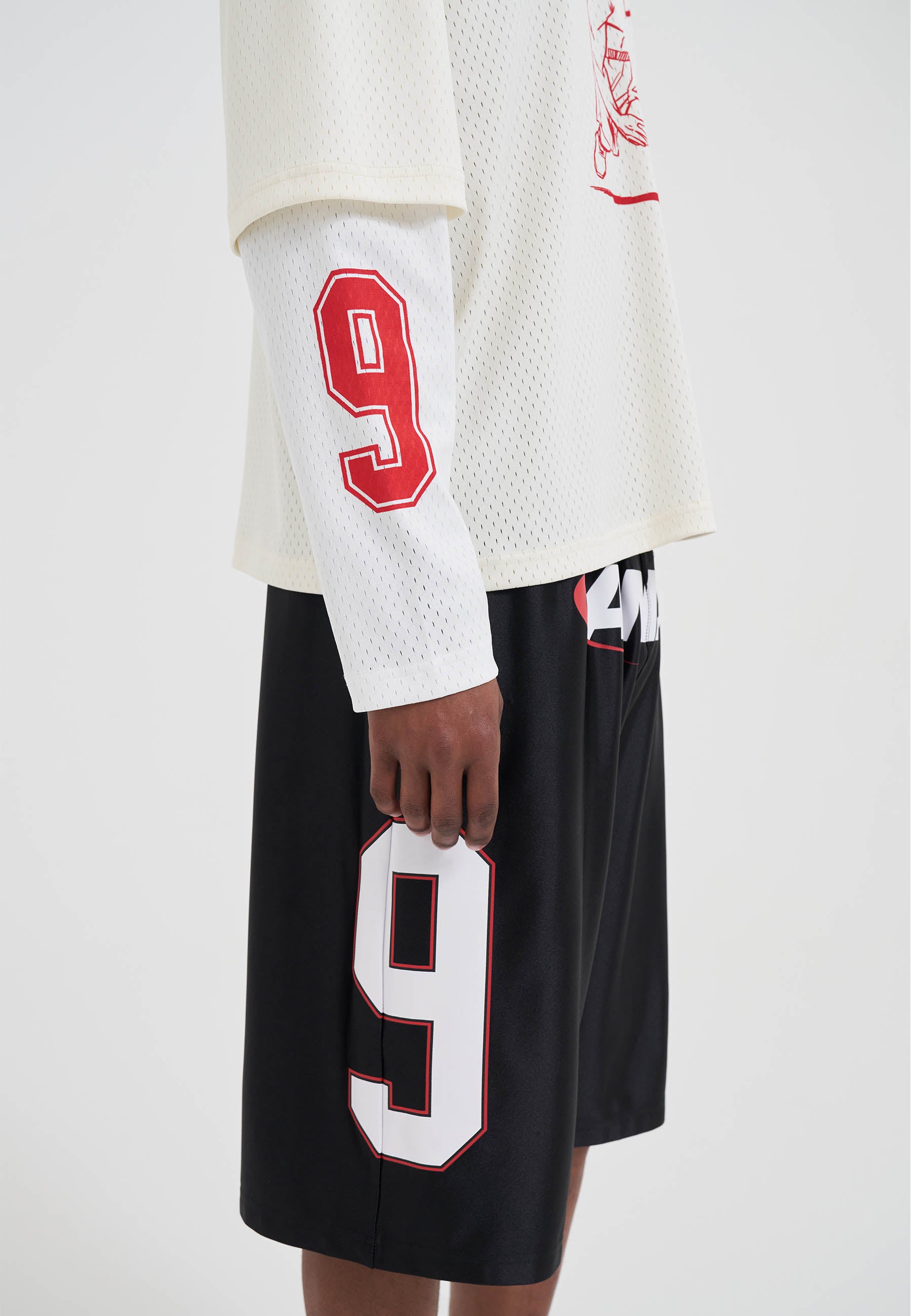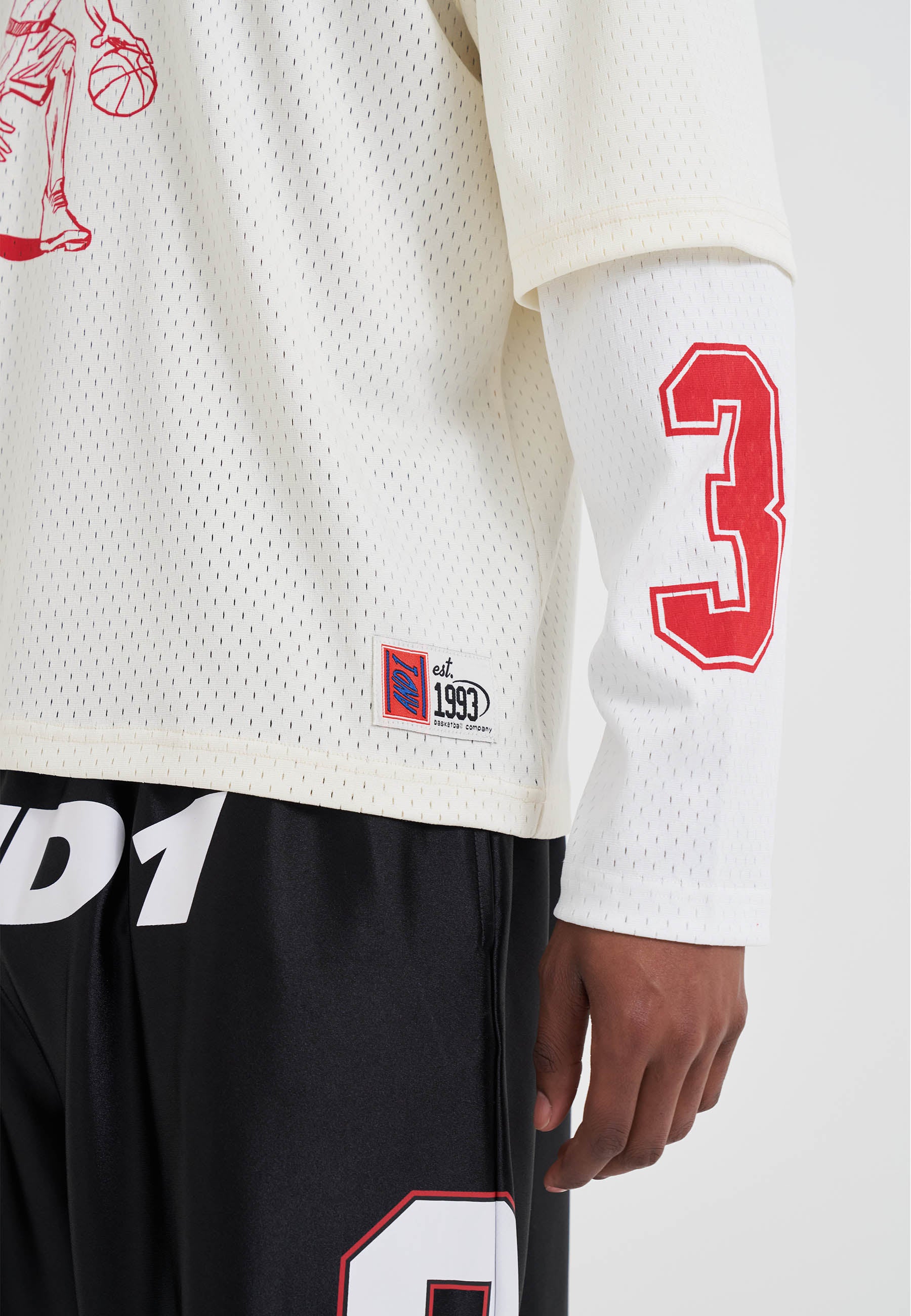 Herren-T-Shirt mit doppellagigem Netzstoff und langen Ärmeln – Ecru