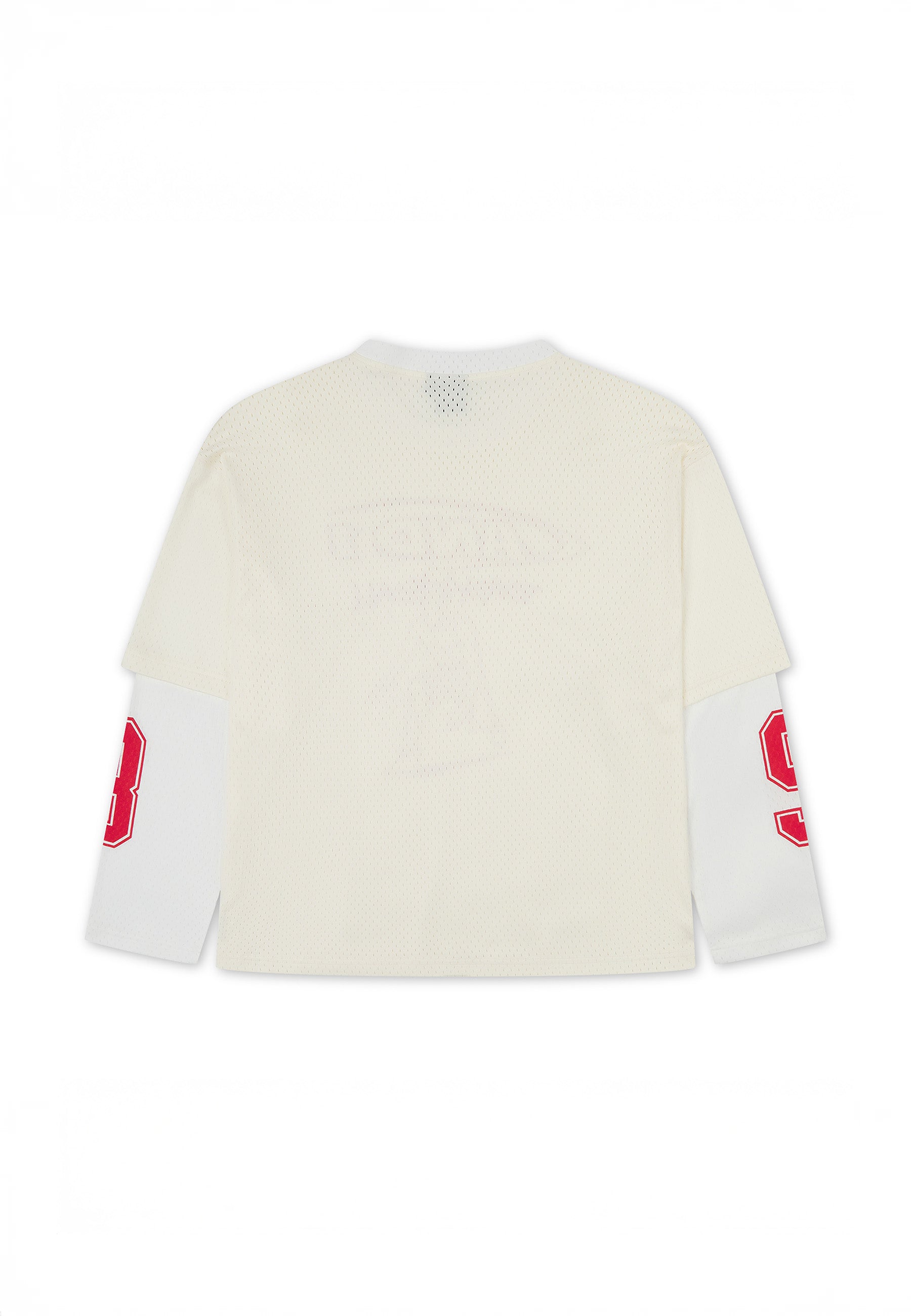 HERREN DOPPELLAGIGES MESH LANGARM-T-SHIRT in Ecru