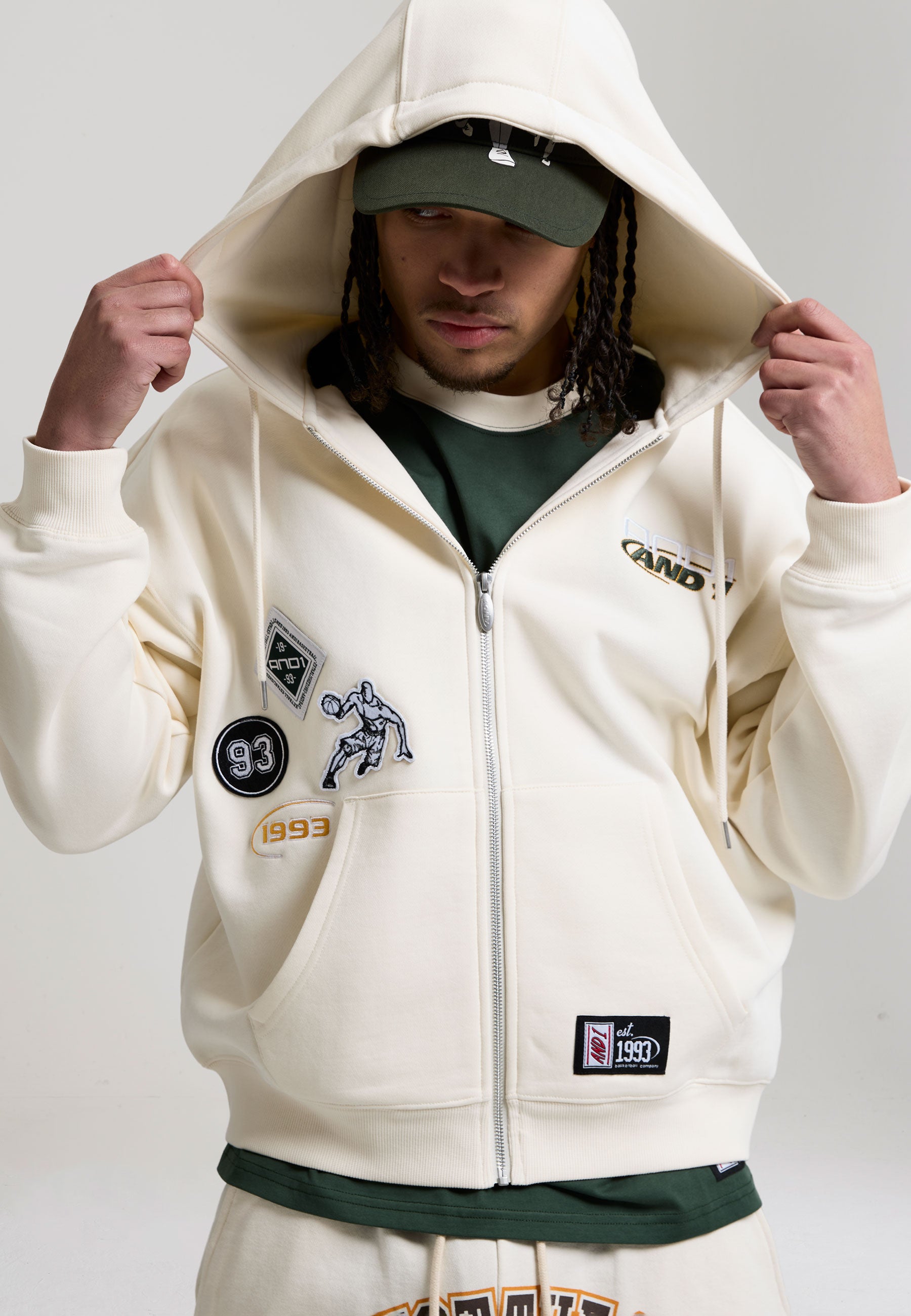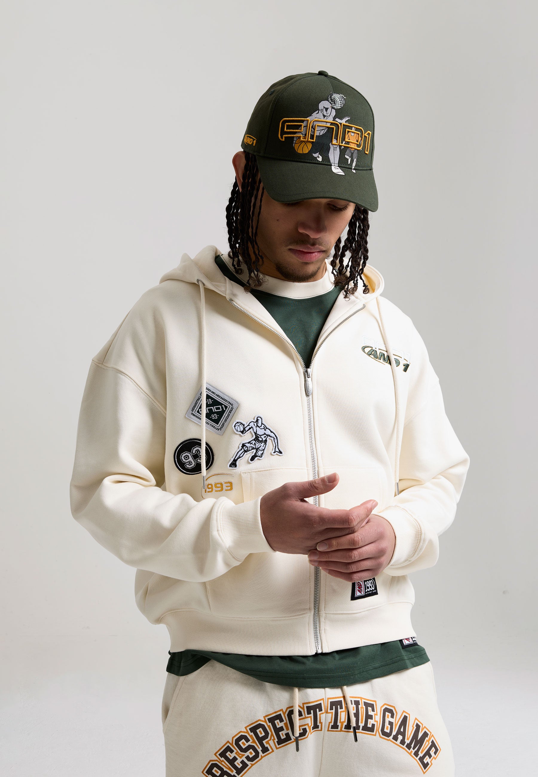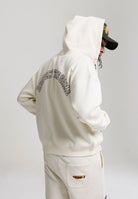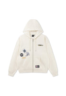 MENS RESPECT THE GAME MULTI BADGE ZIP THROUGH HOODIE in Ecru