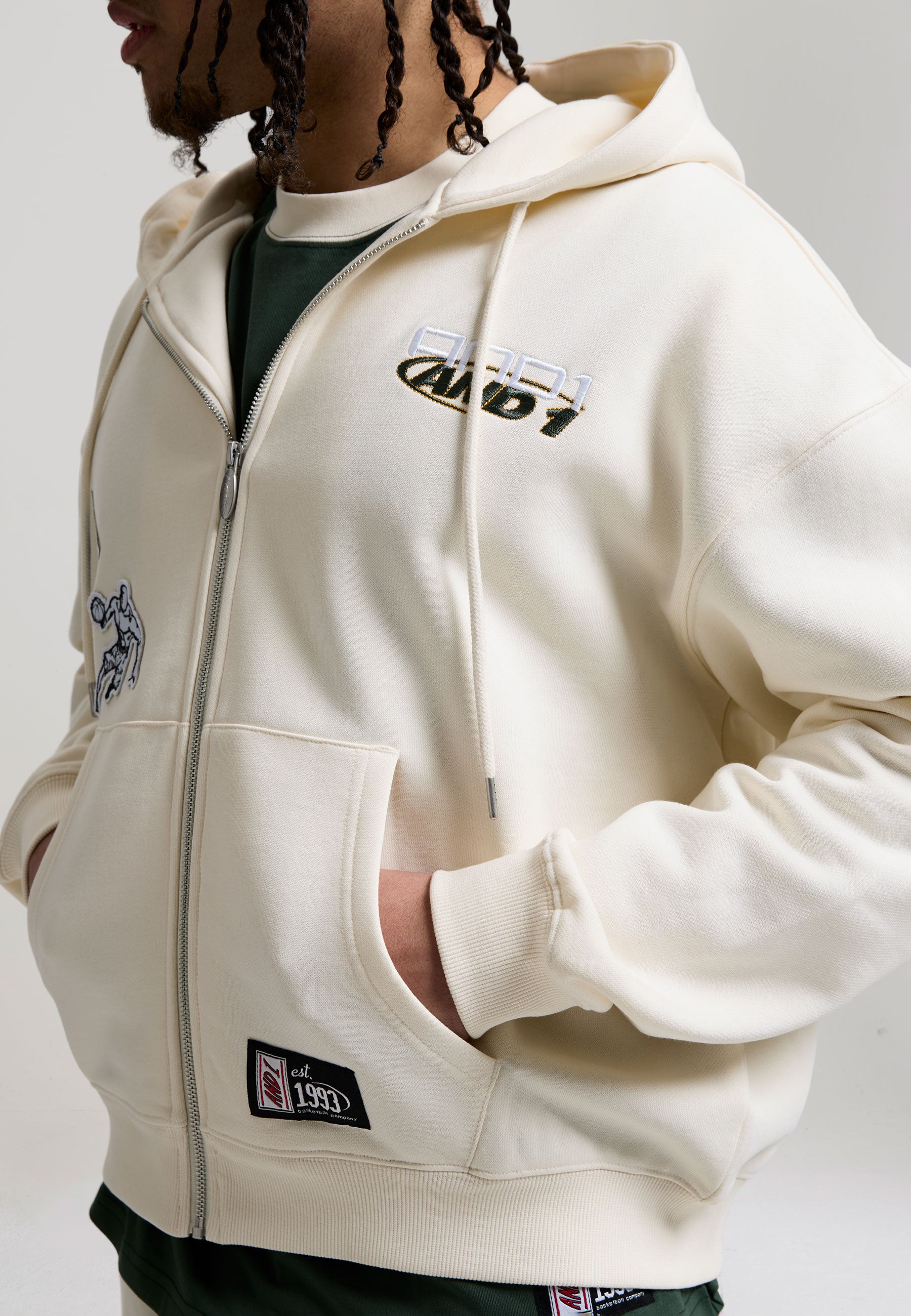 - AND1 WOVEN BRANDED TAB AT KANGAROO POCKET
