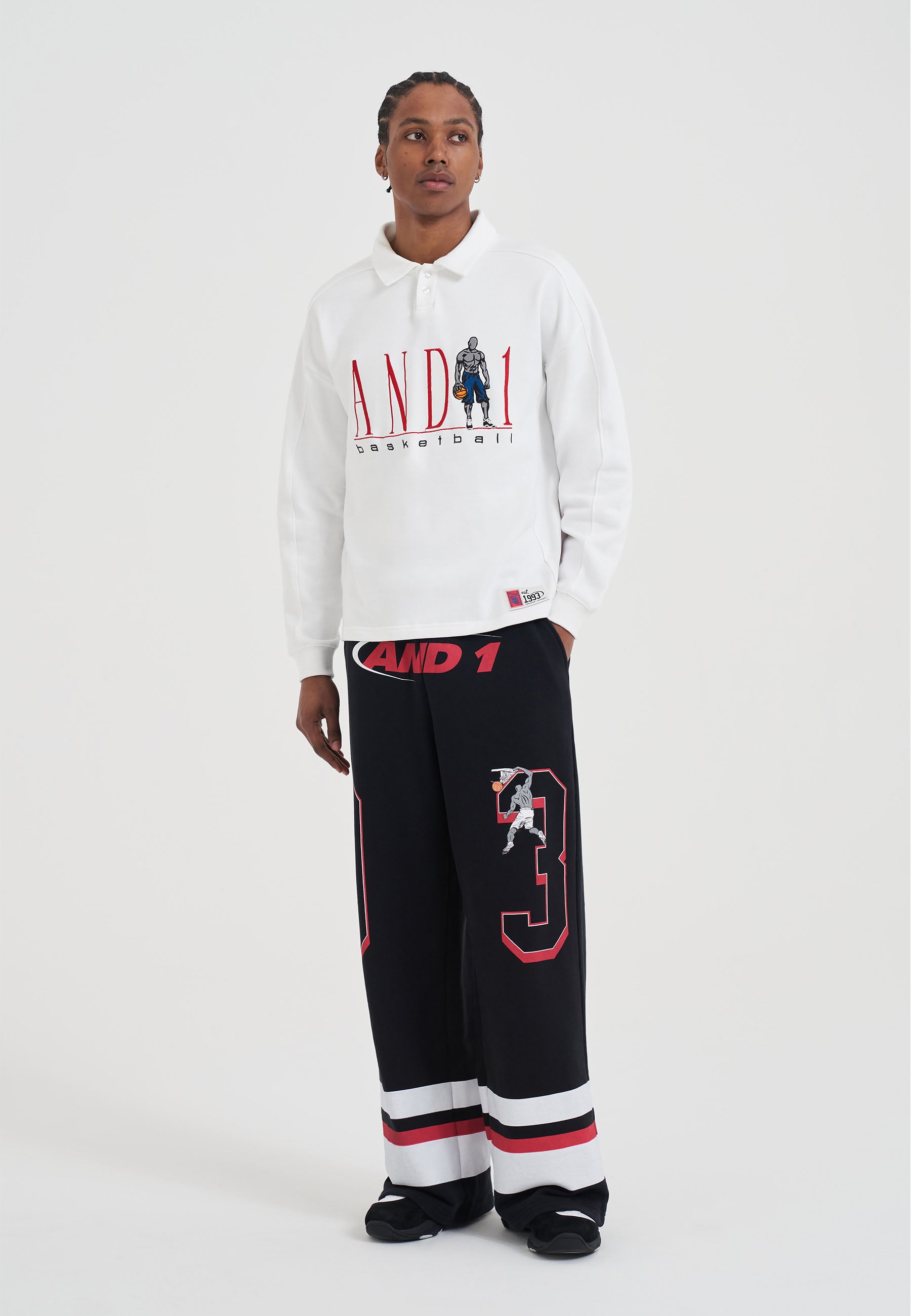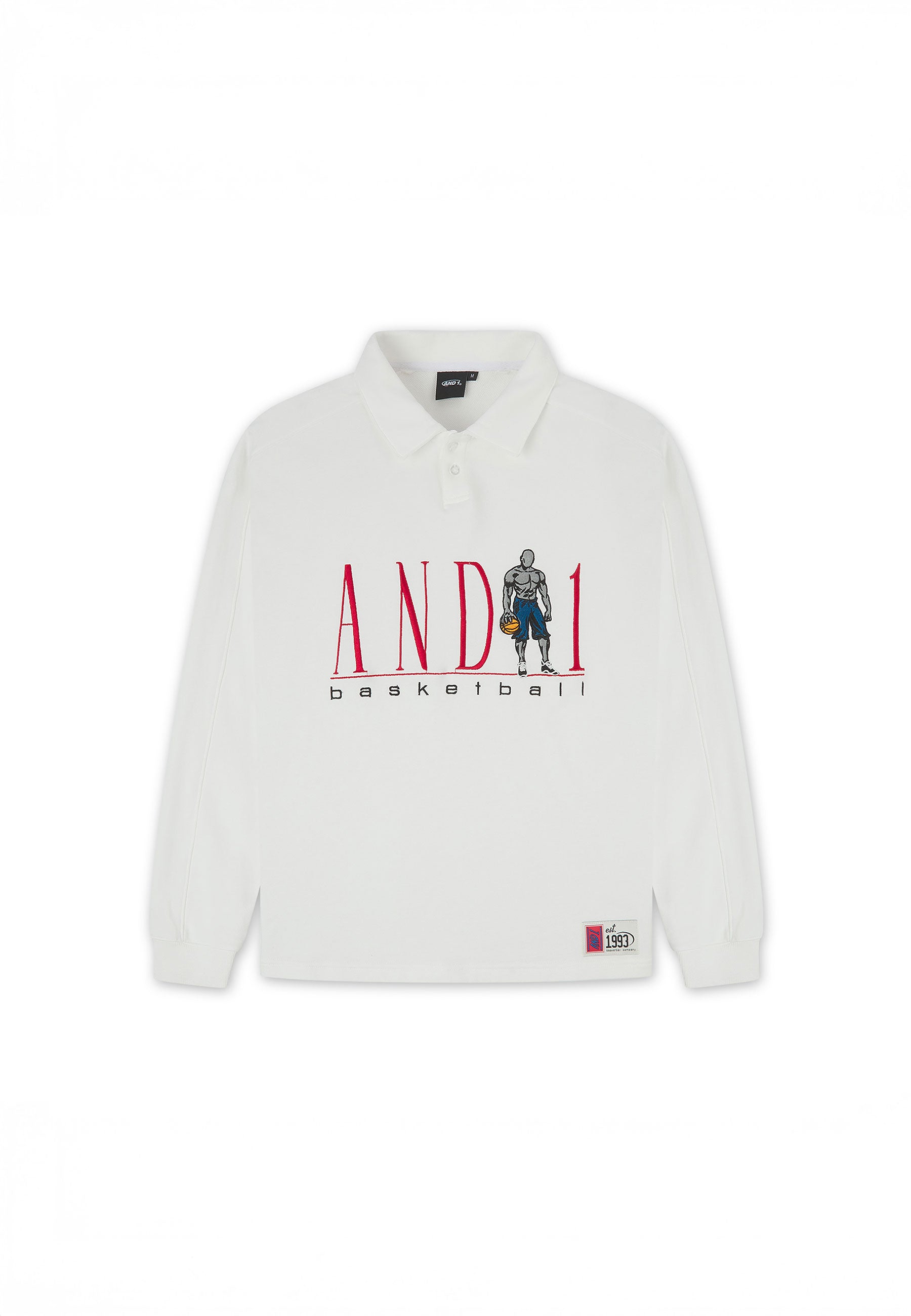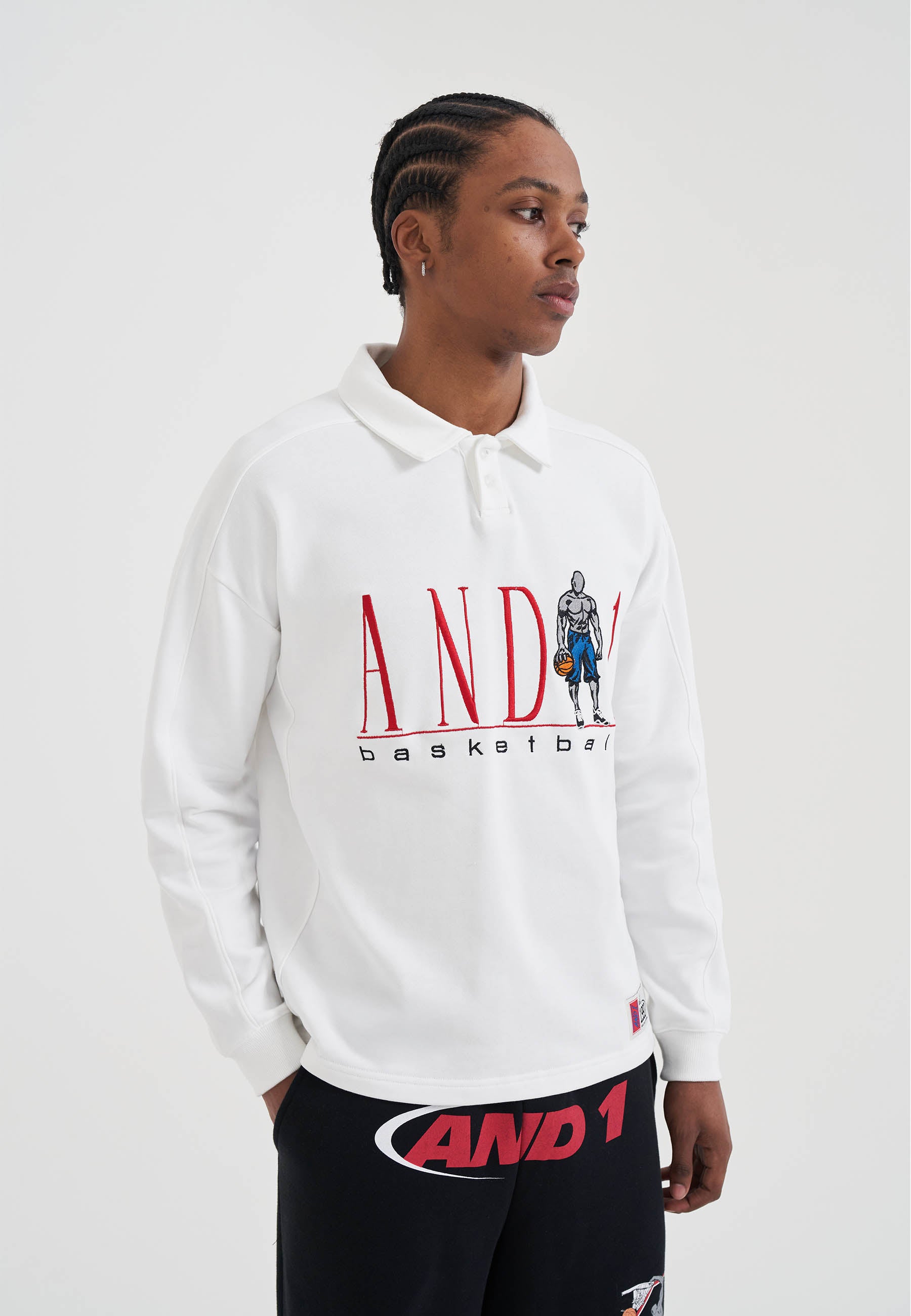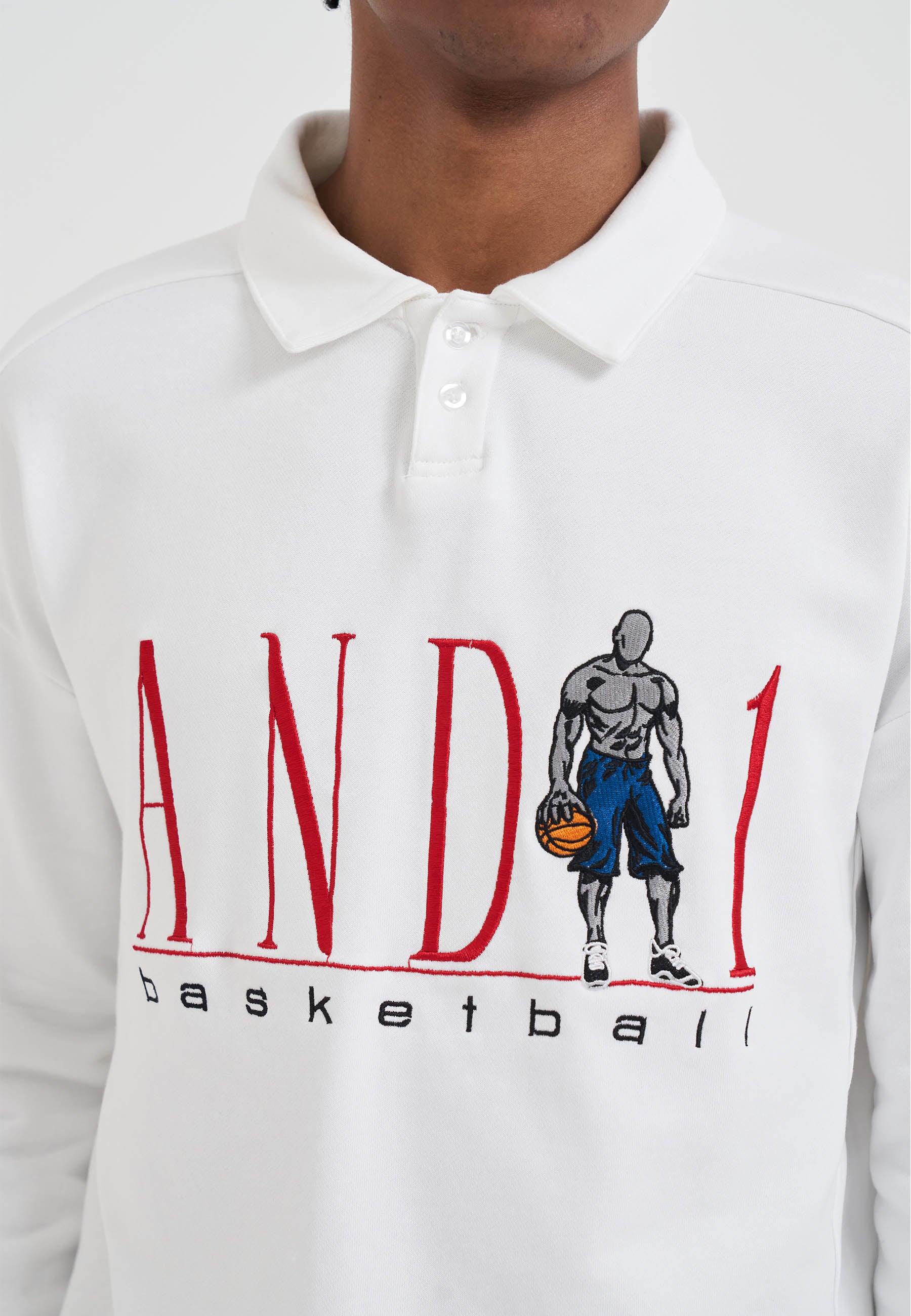 Herren Retro Logo Langarmshirt mit Kragen - Weiß