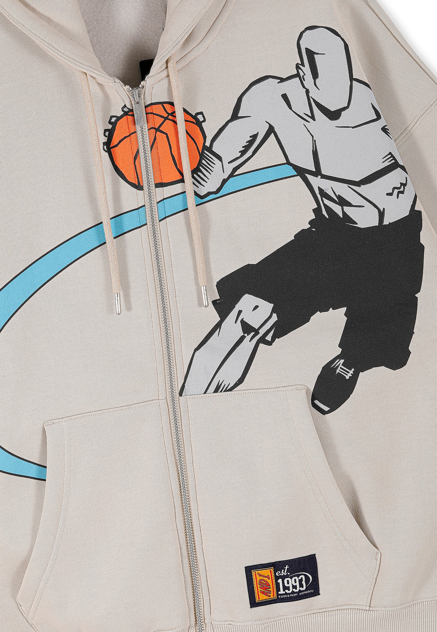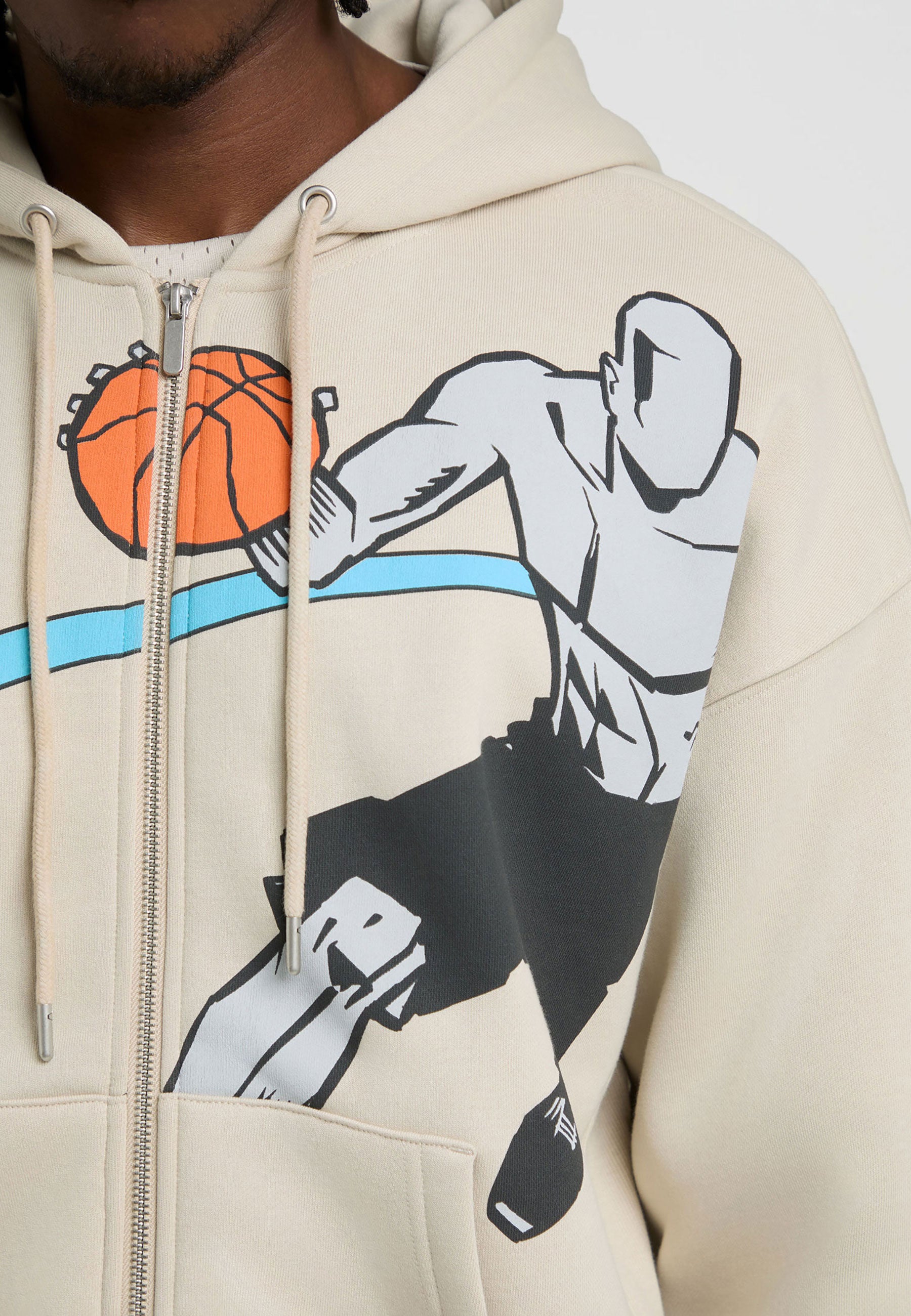 Herren-Hoodie mit geripptem Panel auf dem Court und durchgehendem Reißverschluss in Grau