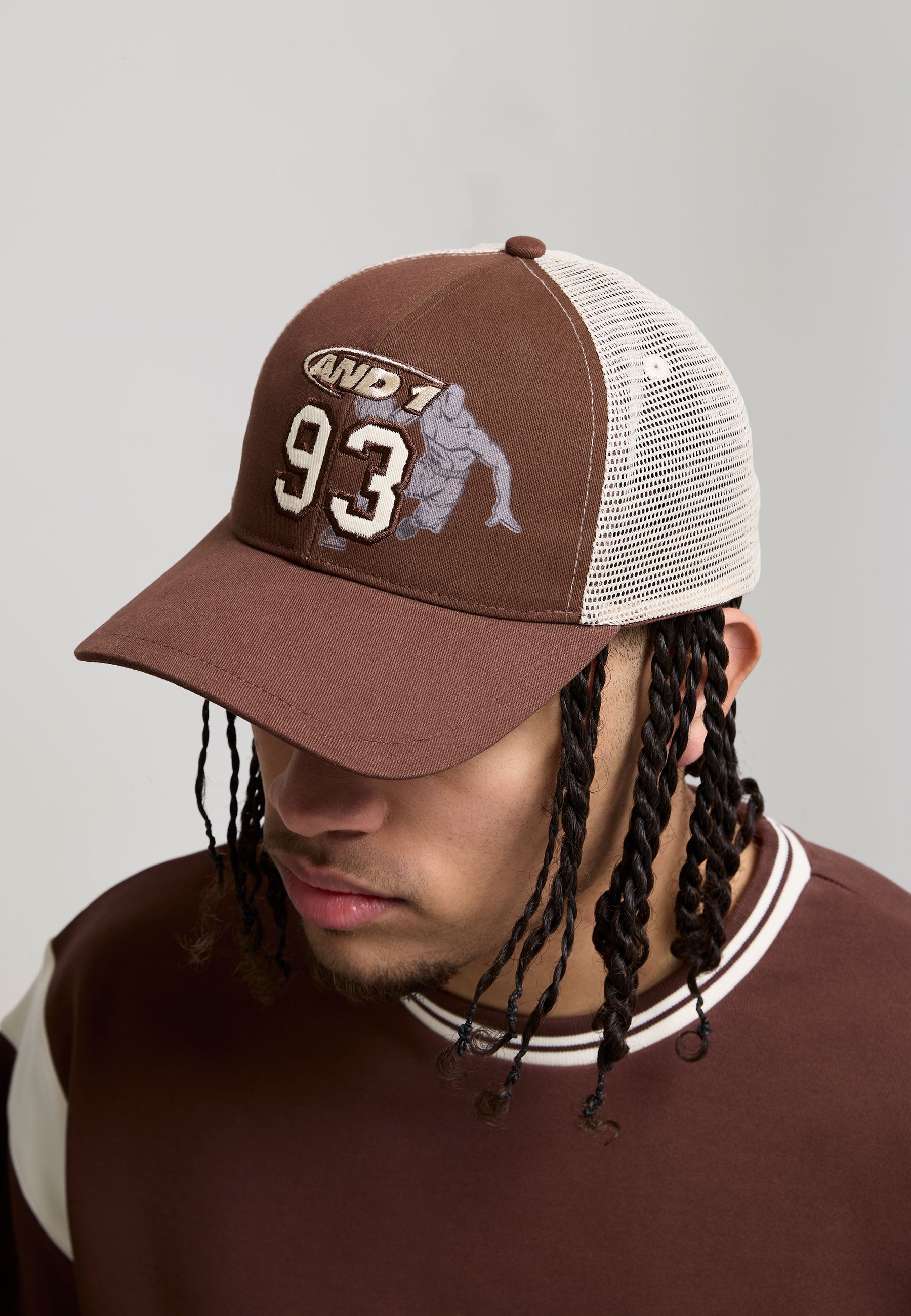 Unisex And1 Player Handles Applique 6 Panel Golf Trucker - Ecru / Brown
