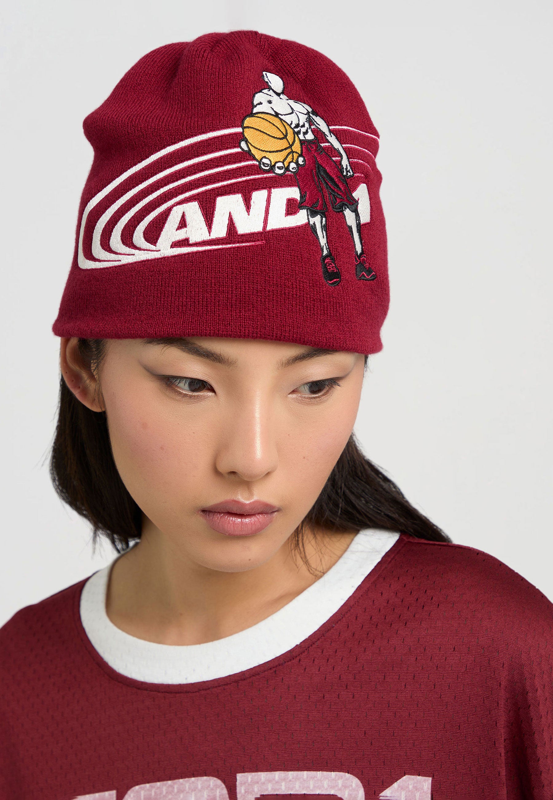 Beanie-Mütze mit Spielerlogo in Burgunderrot