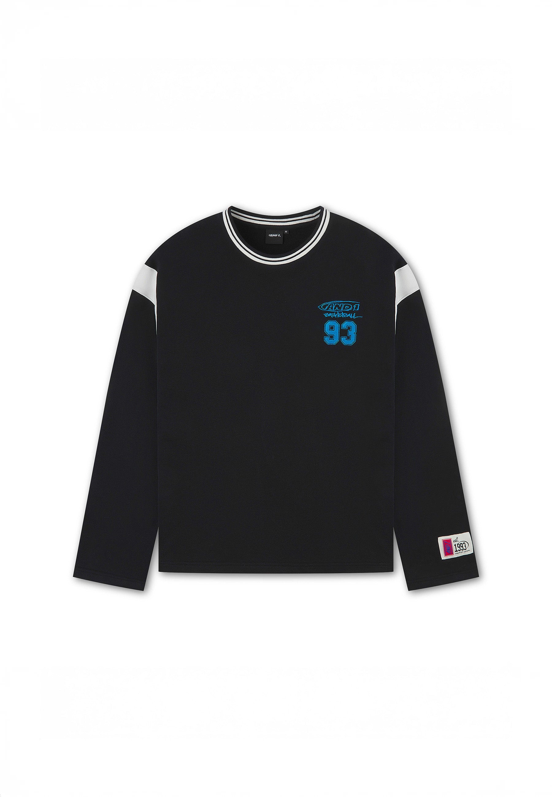 DAMEN-T-SHIRT MIT LANGEN ÄRMELN UND PANELMUSTER CORE 93 in Schwarz.