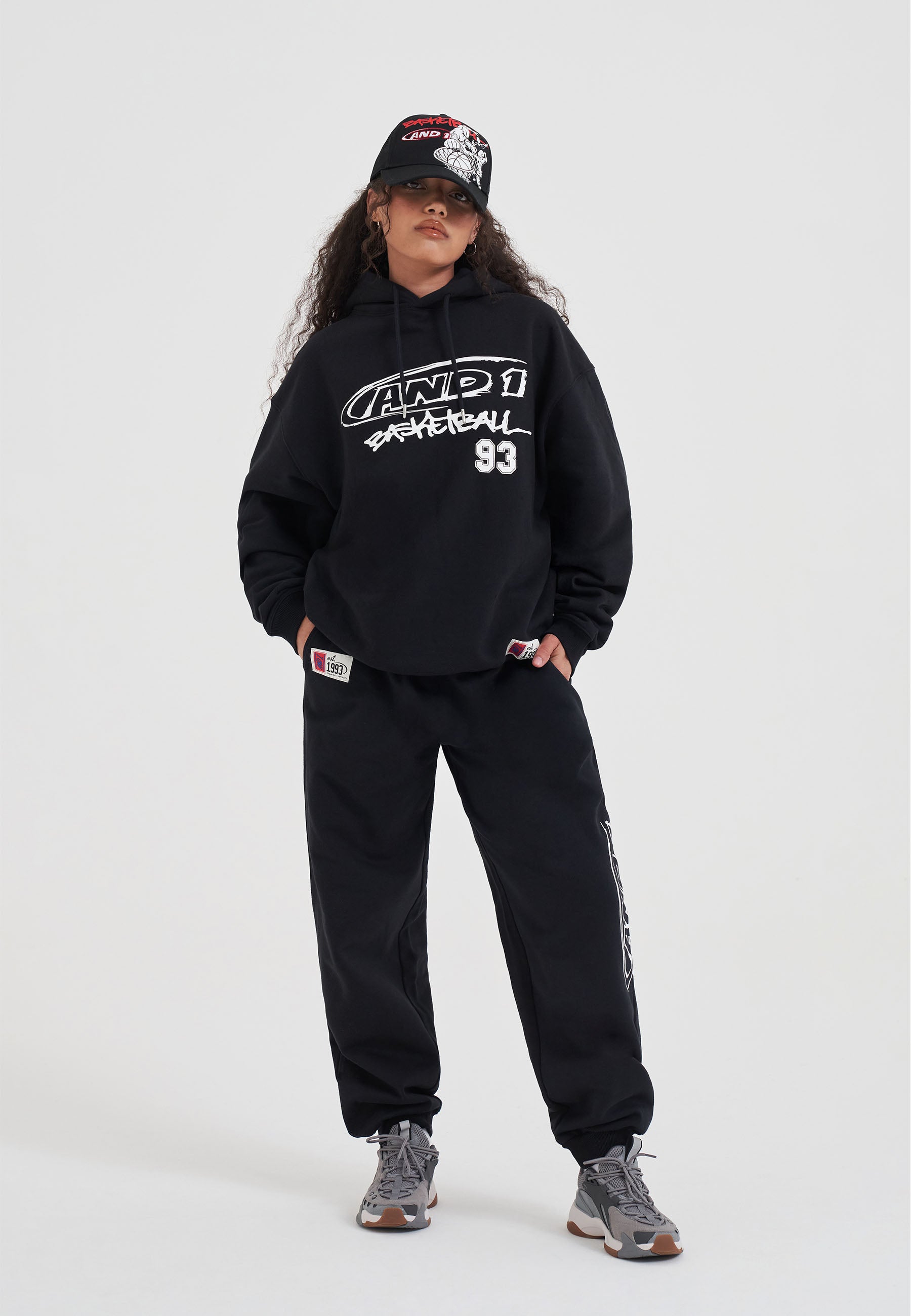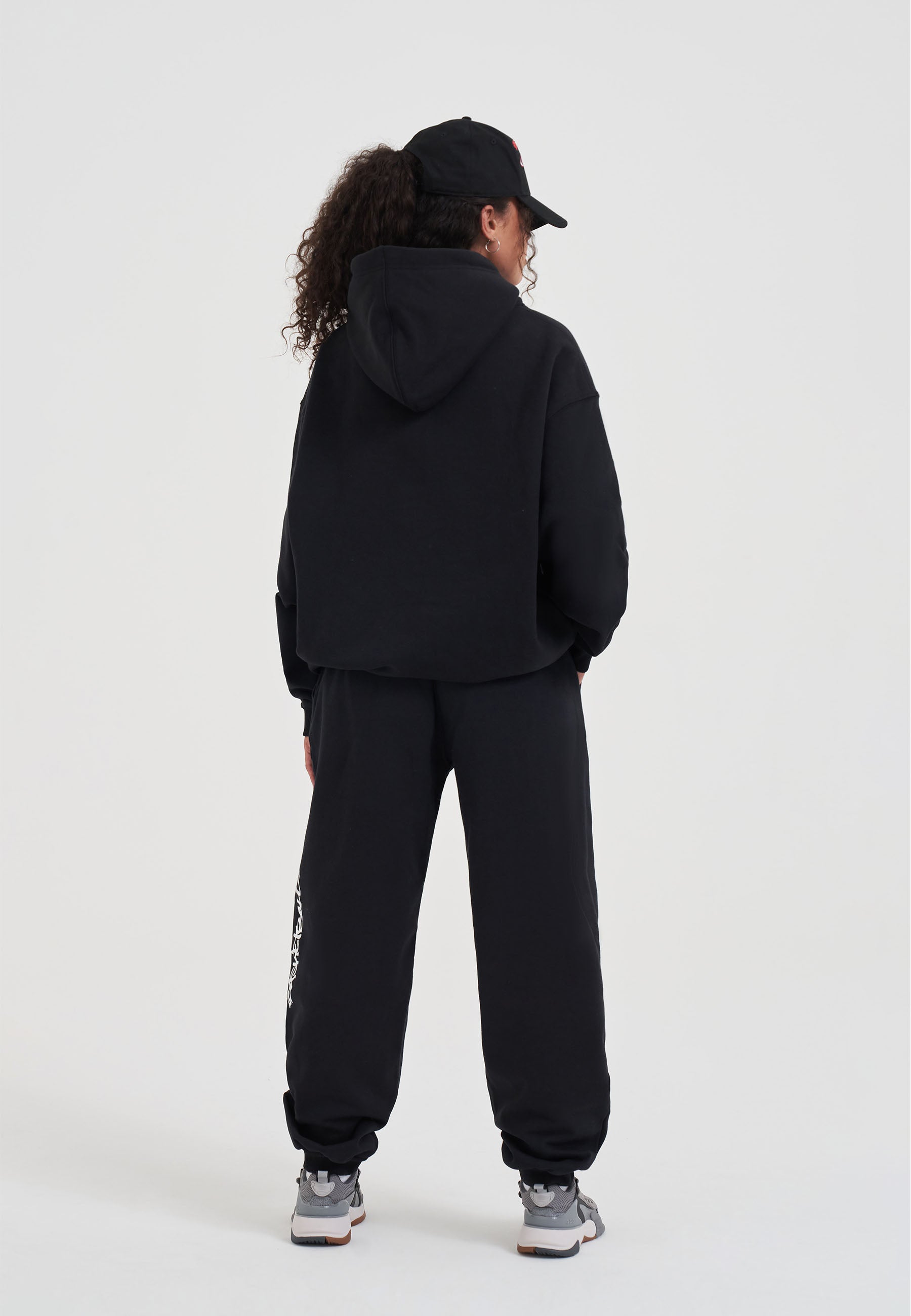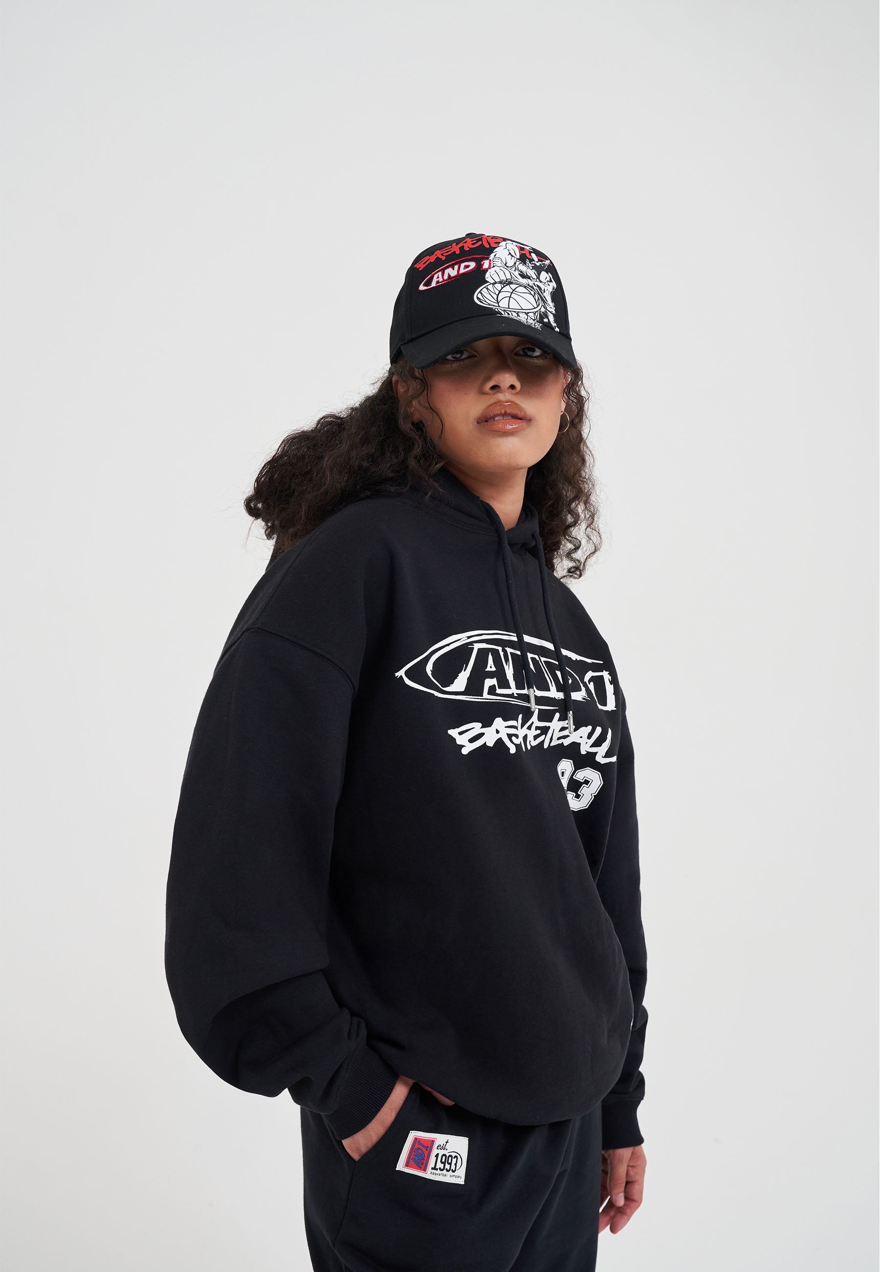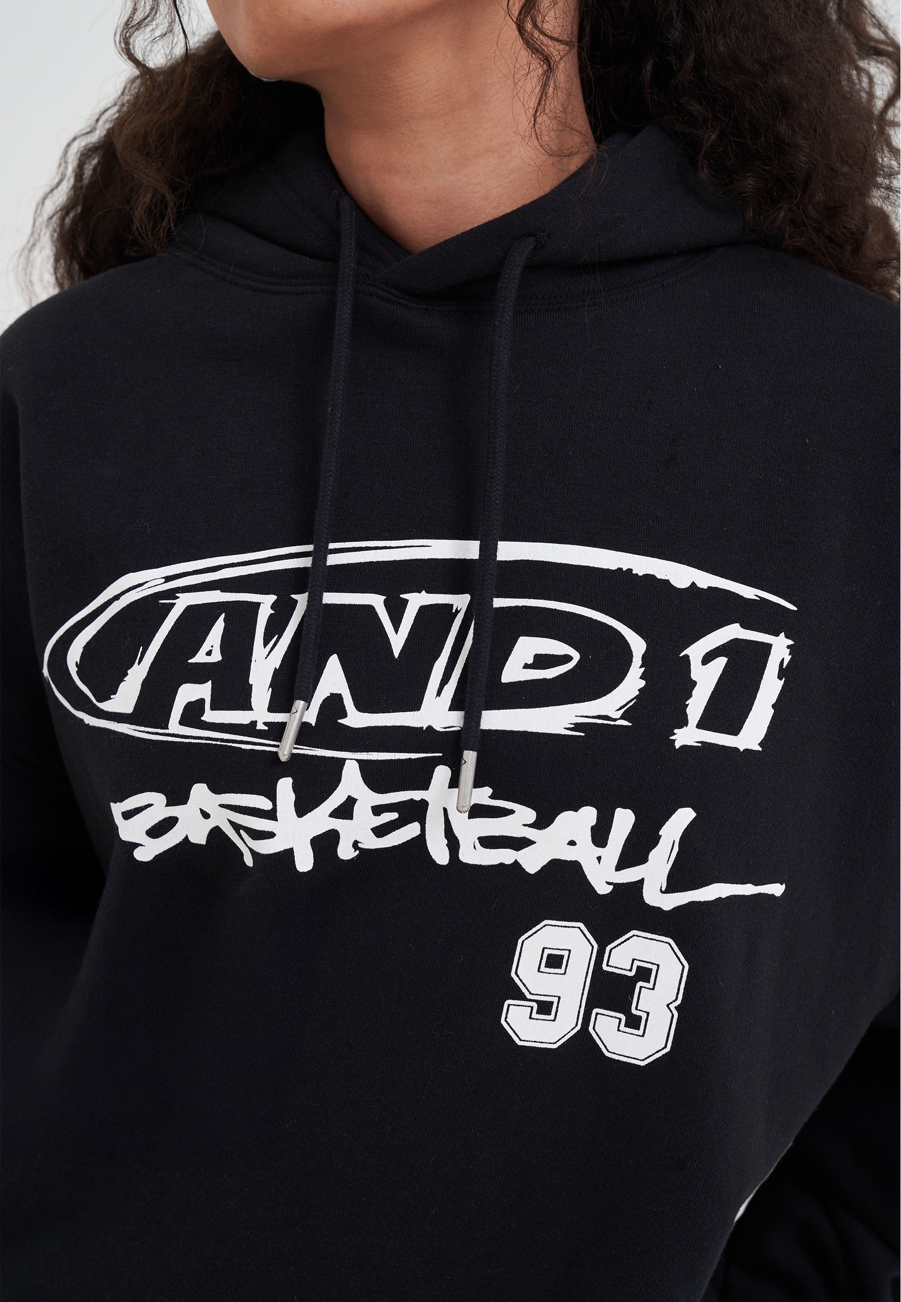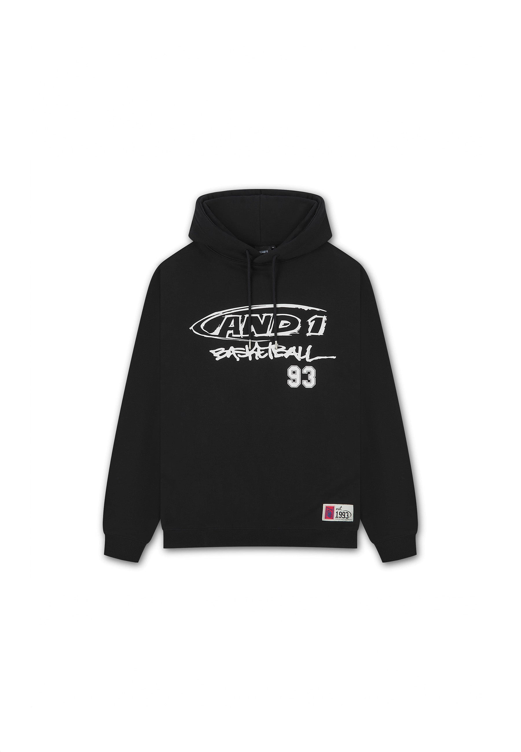 DAMEN-KAPUZENPULLOVER MIT CORE-GRAFFITI-LOGO in Schwarz/Weiß.