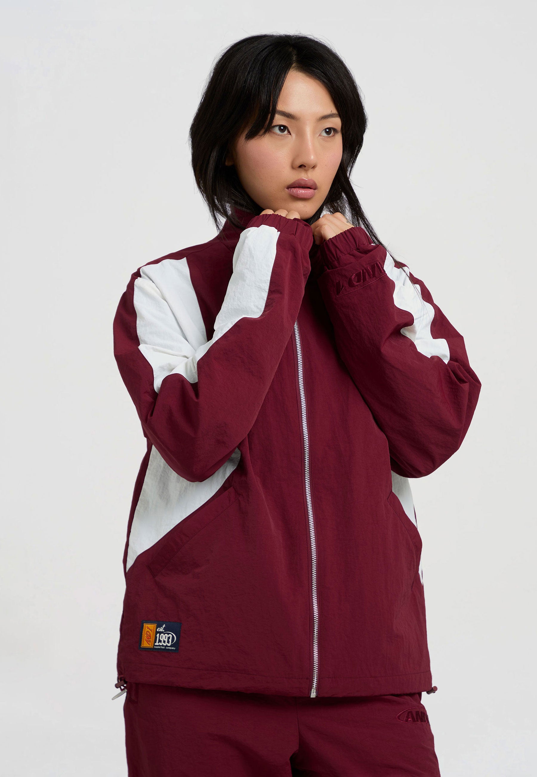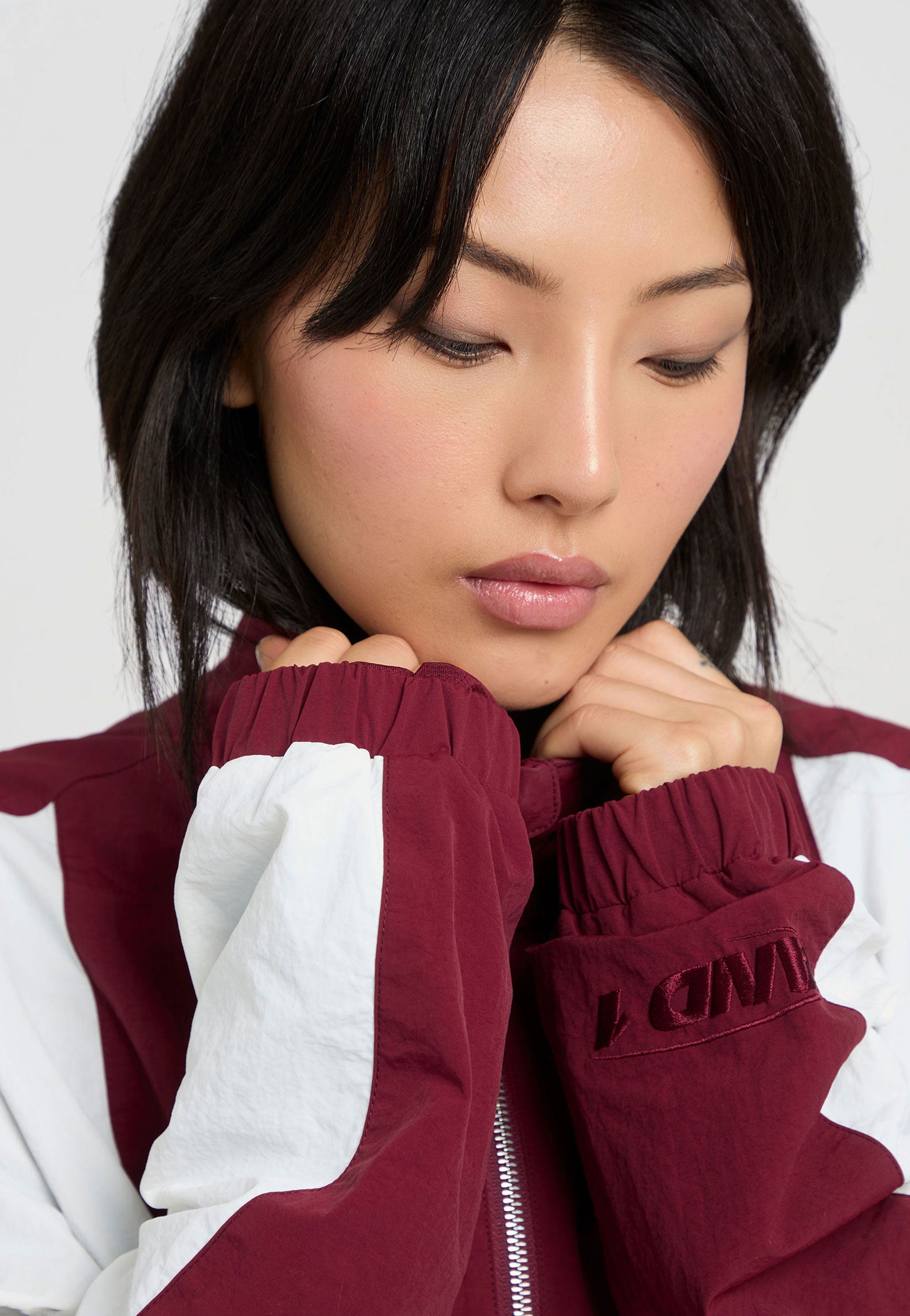 DAMEN-TRAININGSJACKE MIT CORE-PANEELEN in Burgunderrot