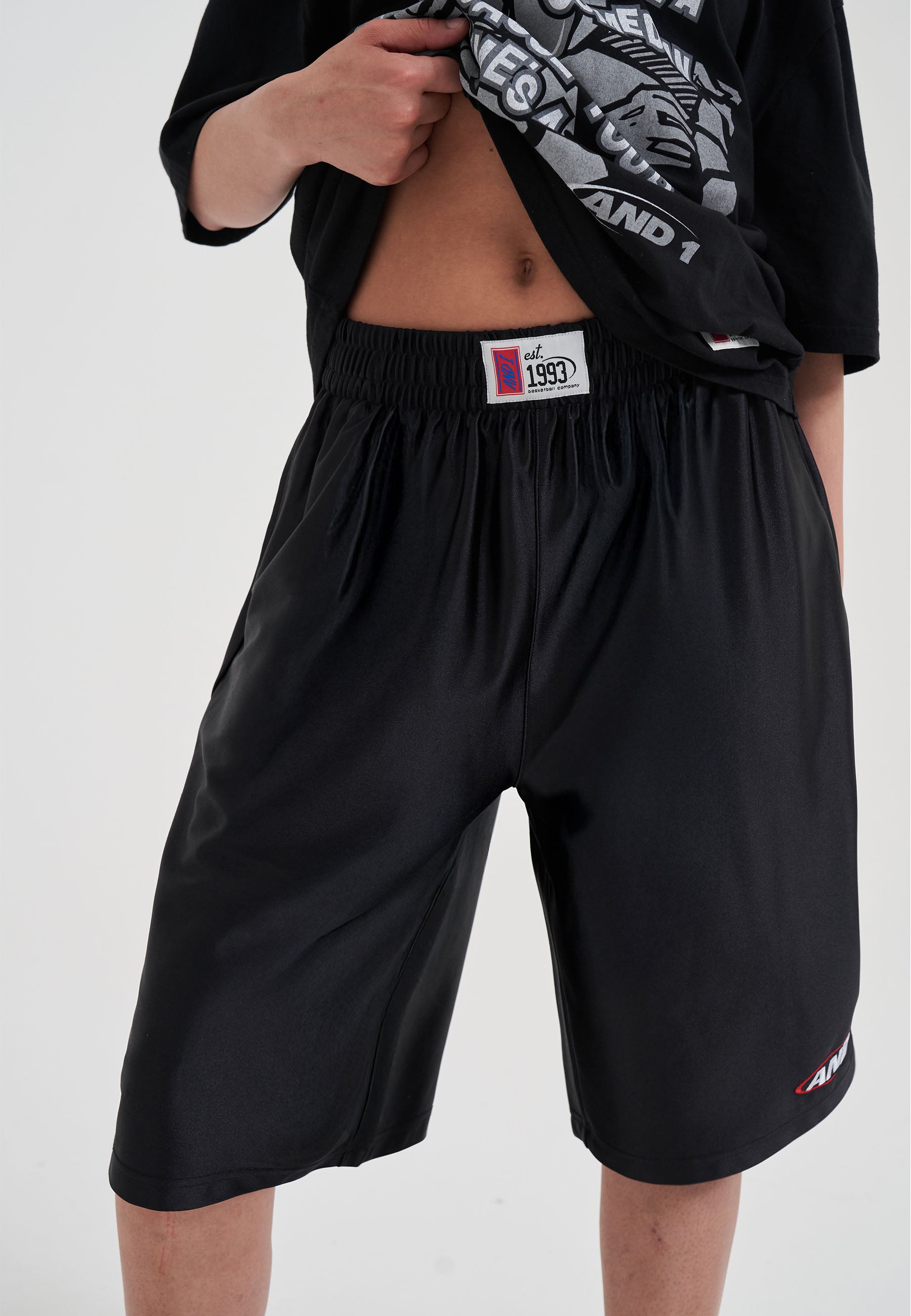 DAMEN CORE SATIN BADGE BASKETBALLSHORTS in Schwarz