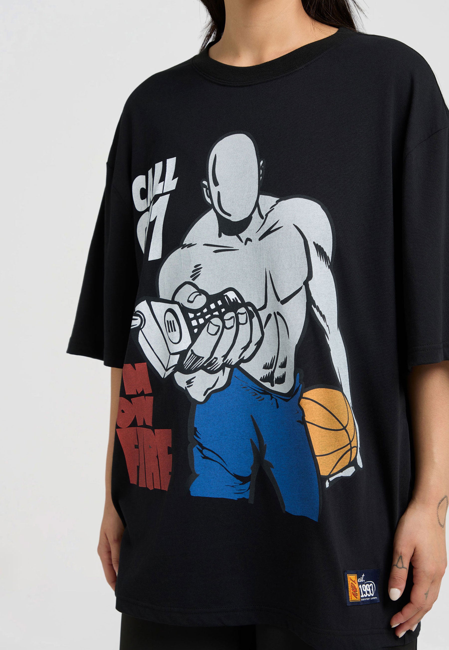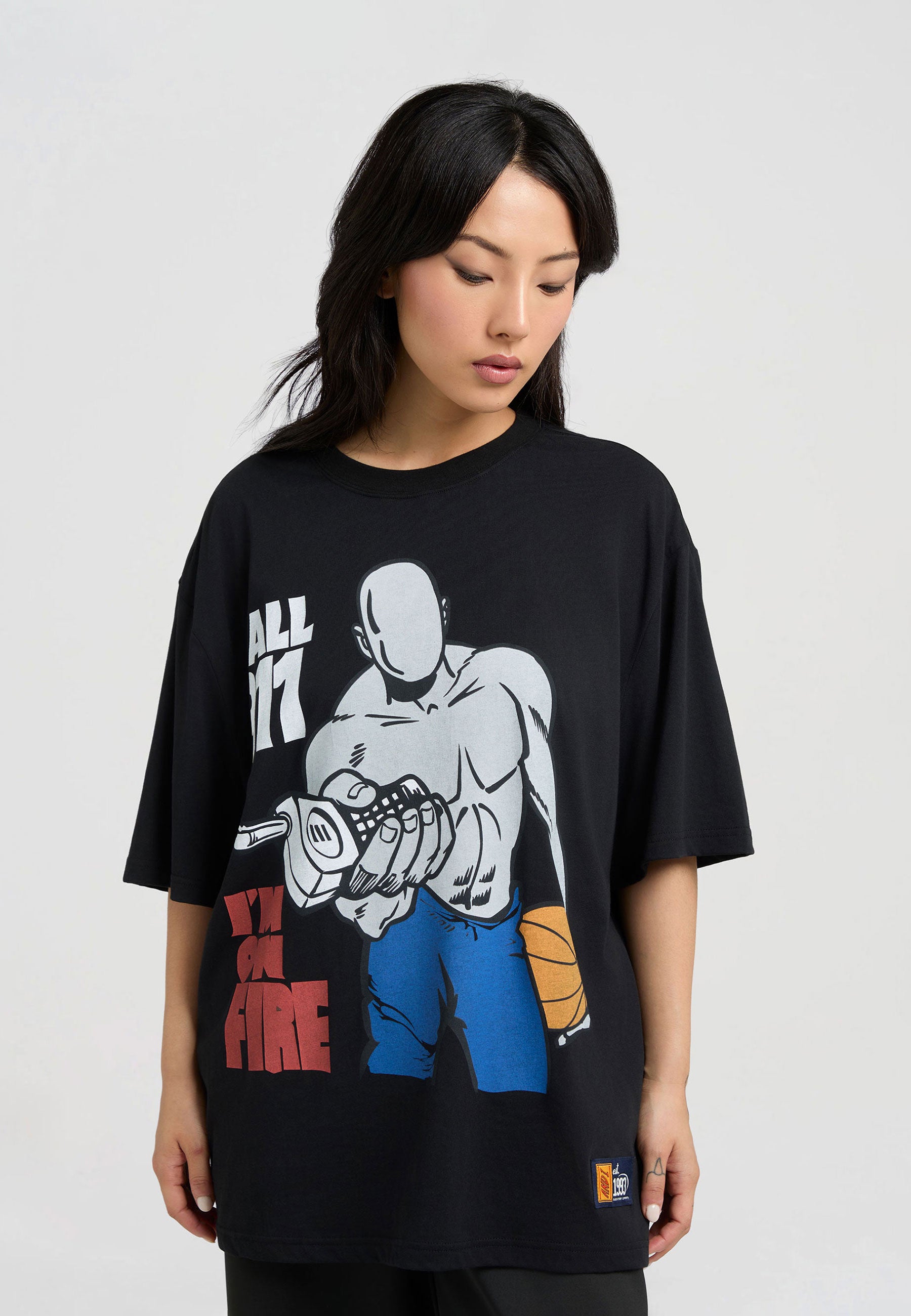 DAMEN ON FIRE TRASH TALK T-SHIRT in Schwarz