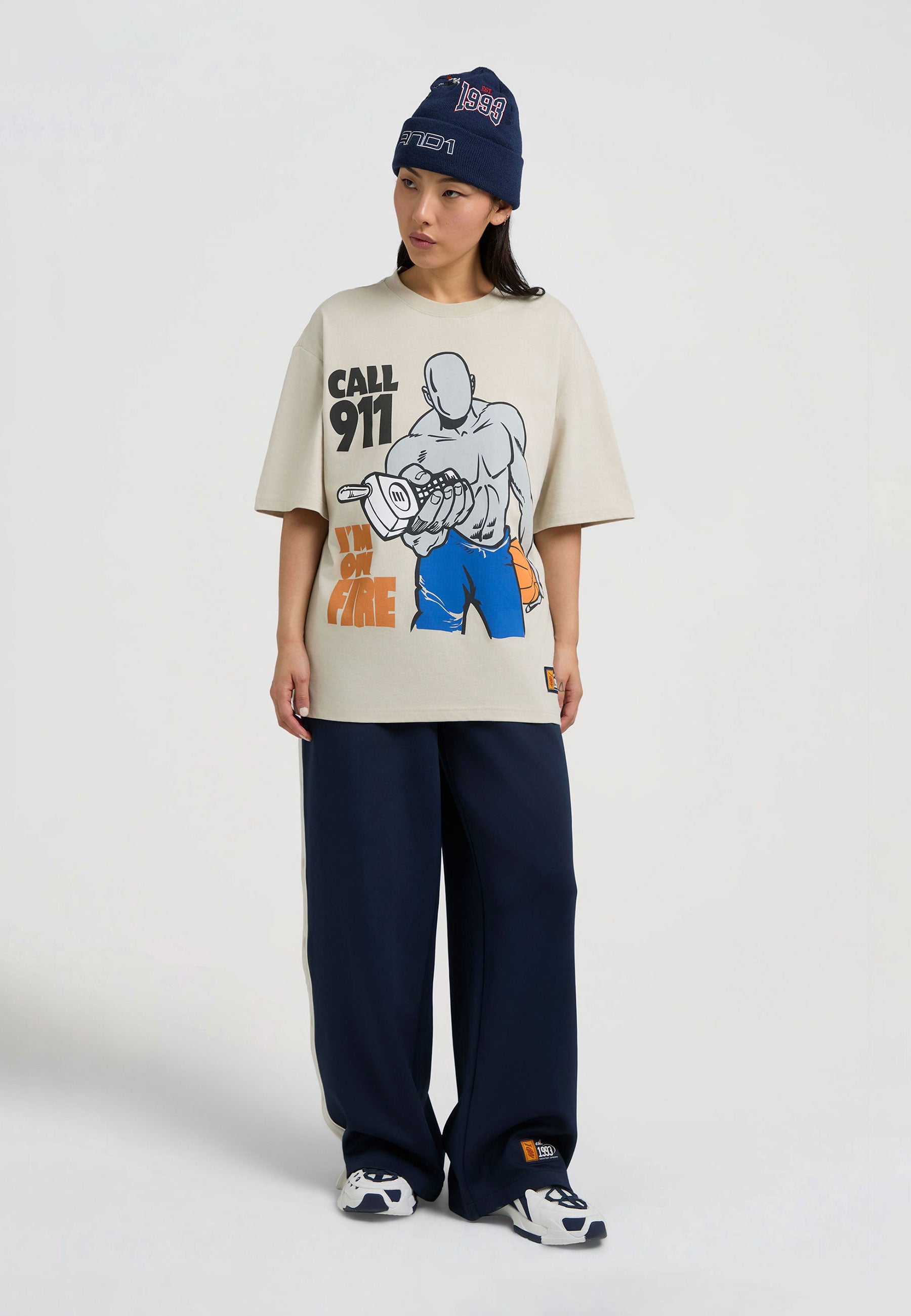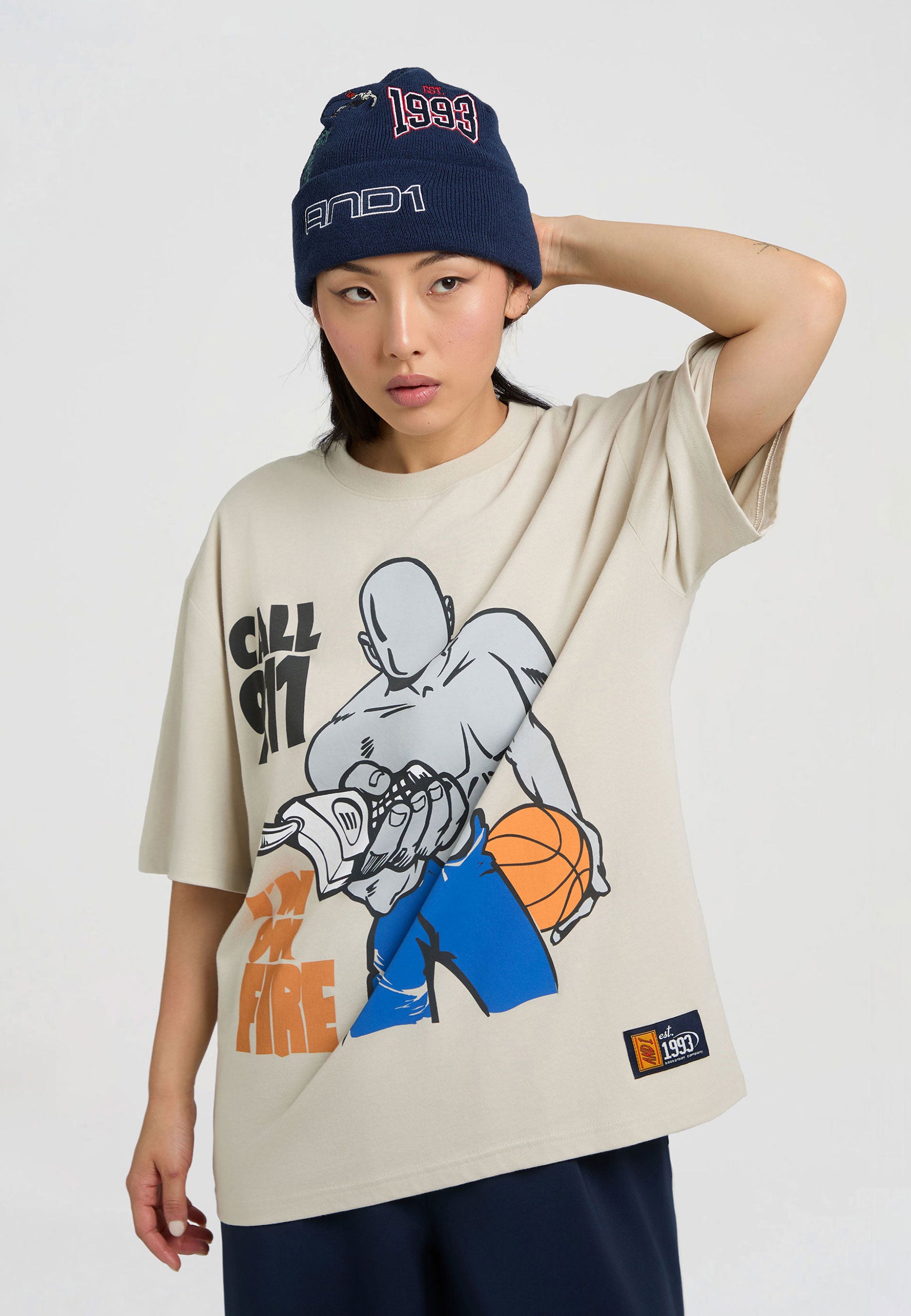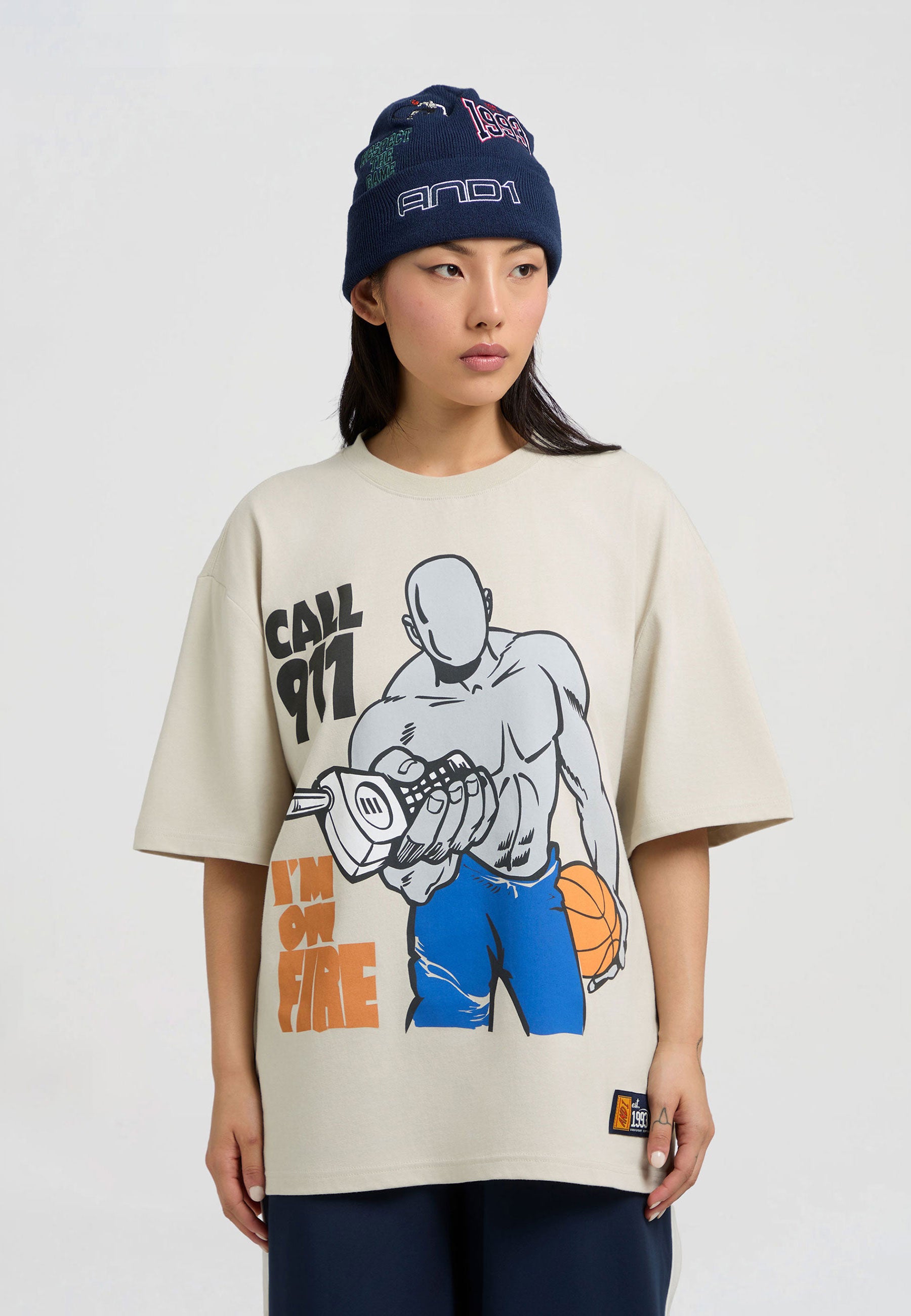 DAMEN ON FIRE TRASH TALK T-SHIRT in Grau
