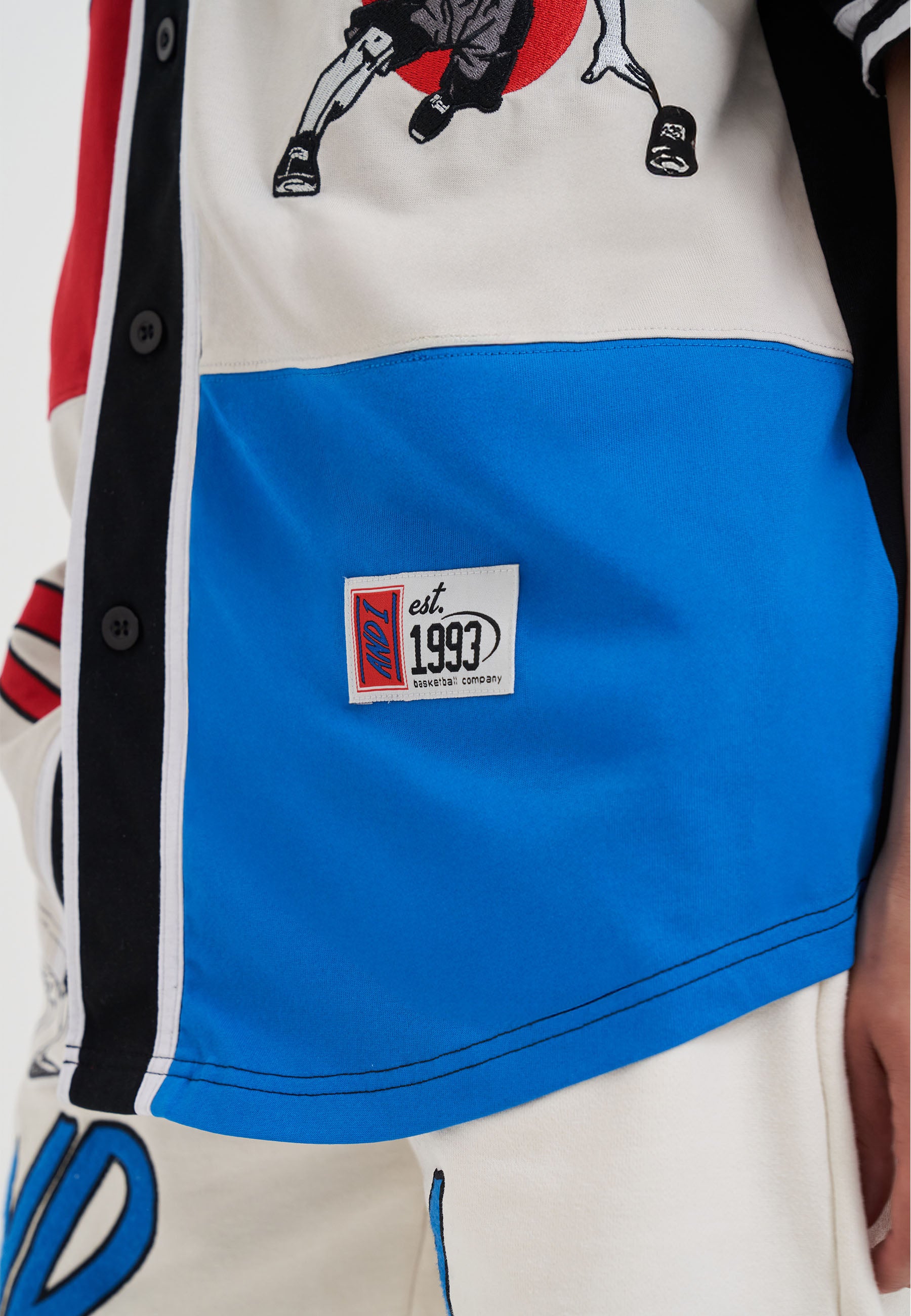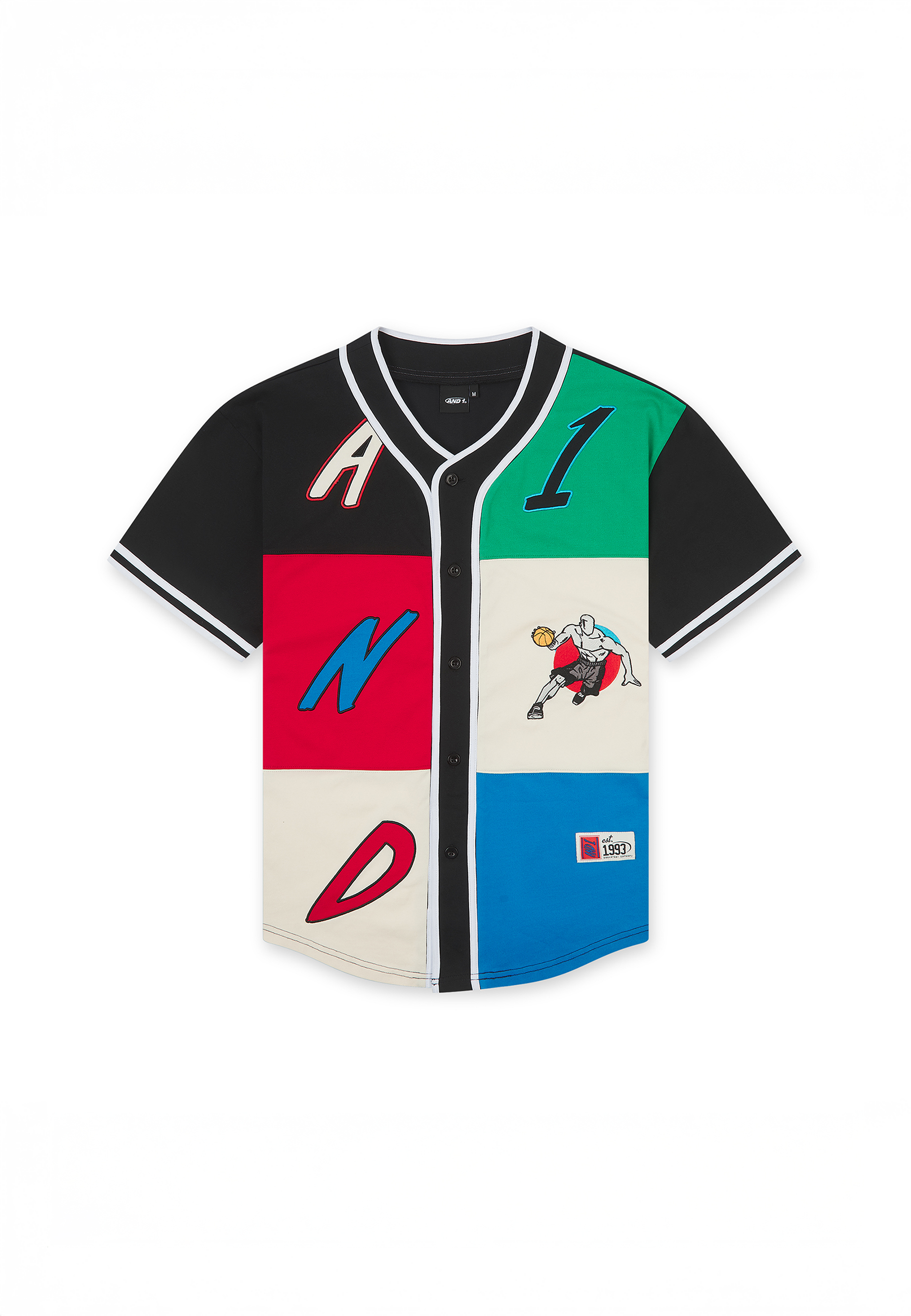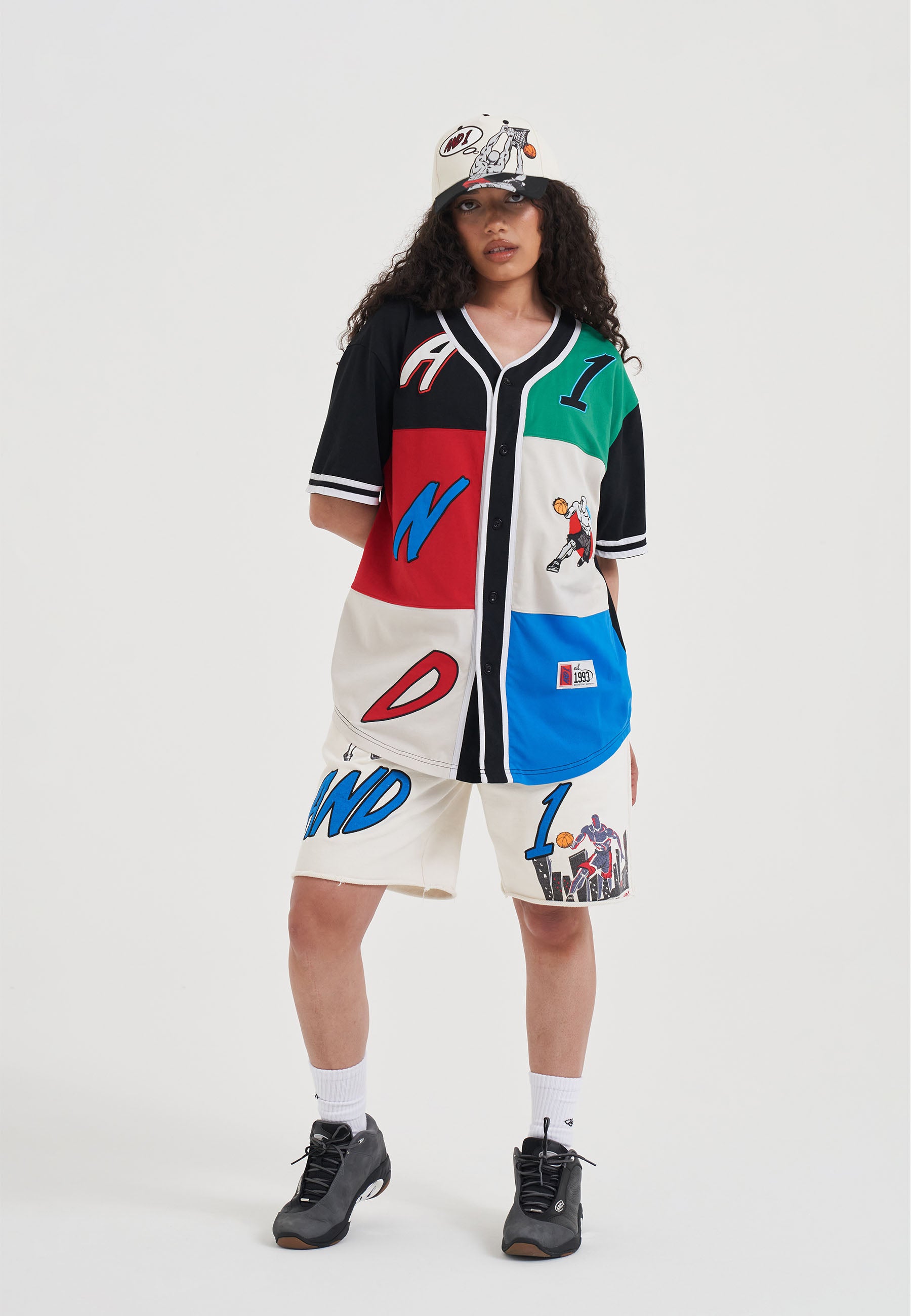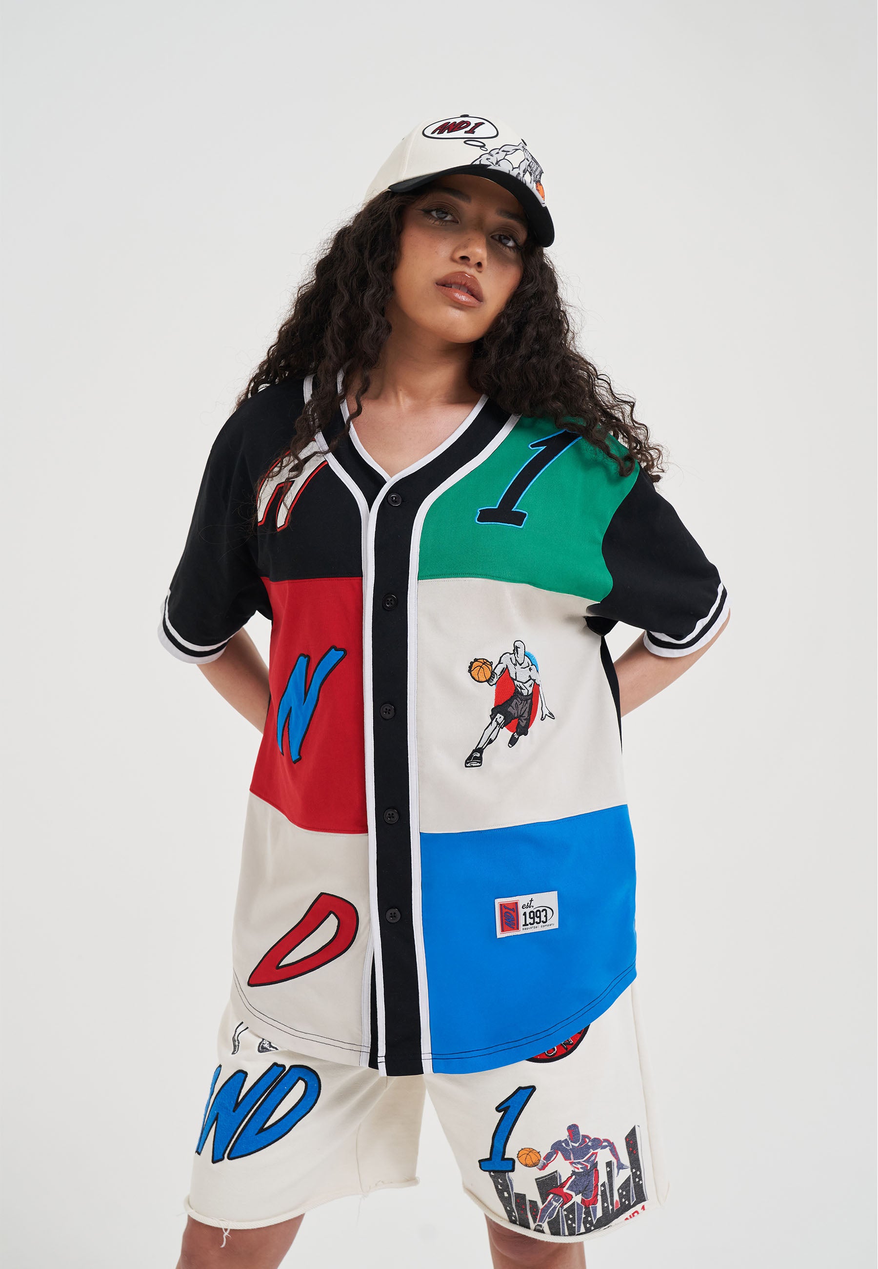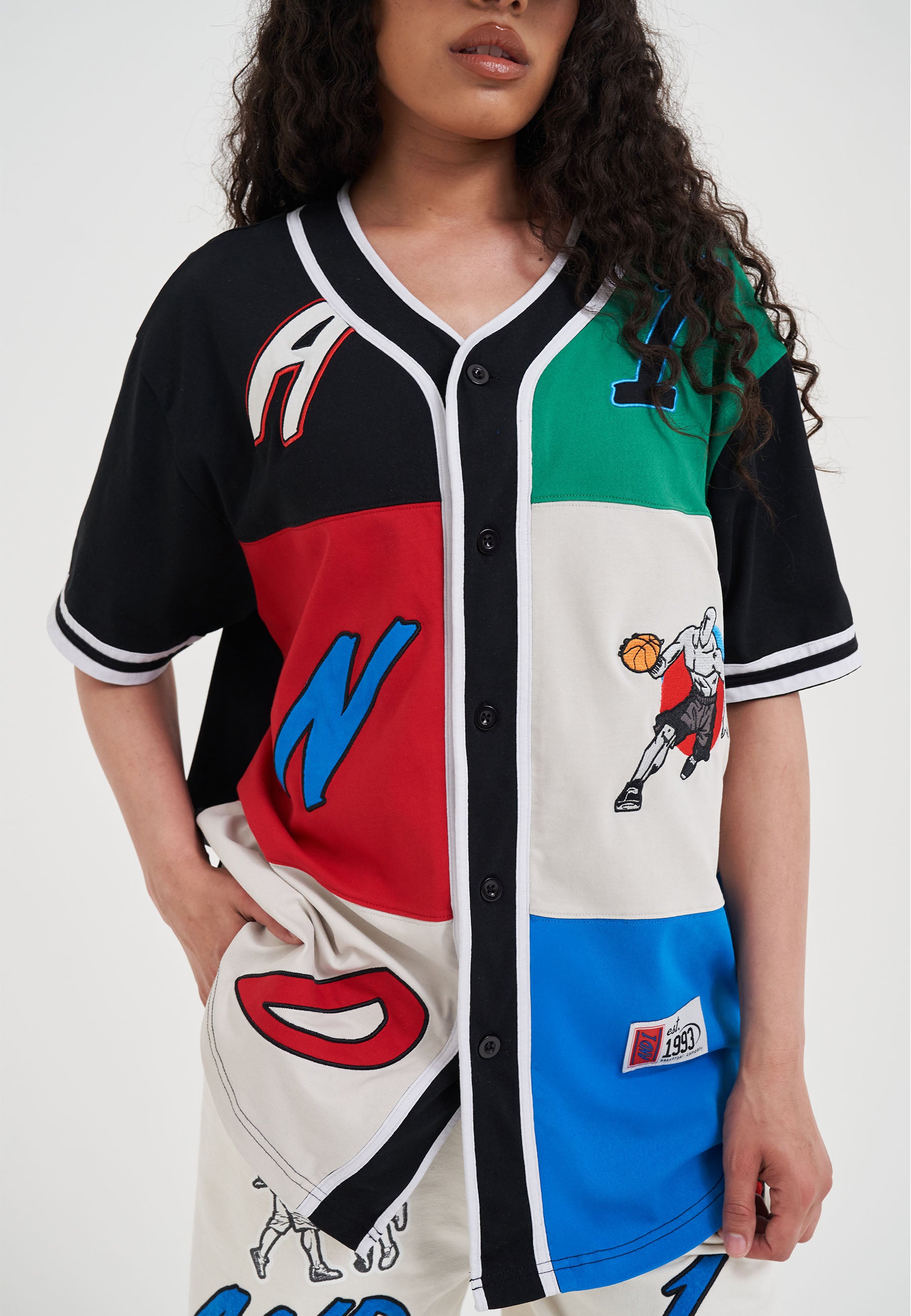 DAMEN-PATCHWORK-BASEBALL-JERSEY-TOP in Mehrfarbig