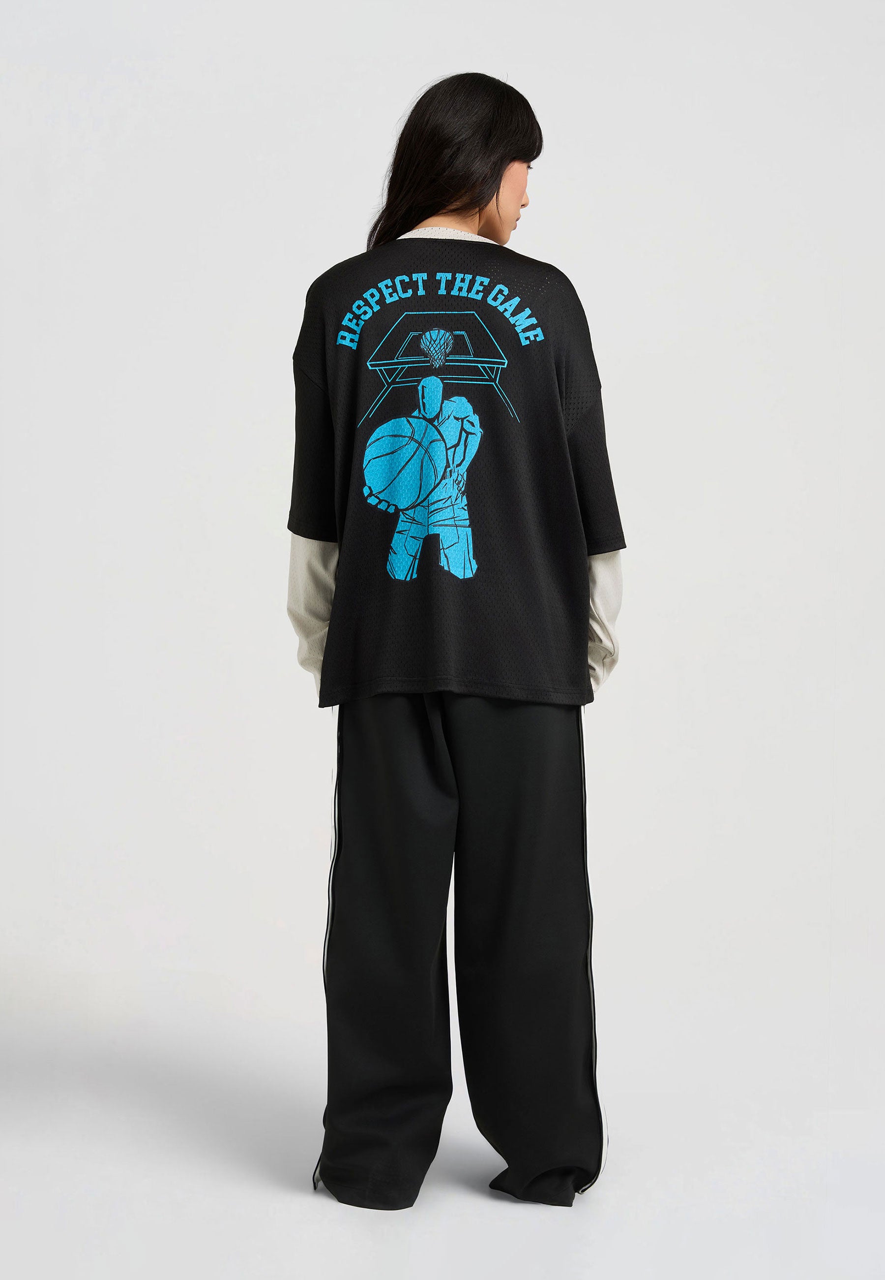 DAMEN RESPECT THE GAME DOPPELLAGIGES MESH-TRIKOT in Schwarz
