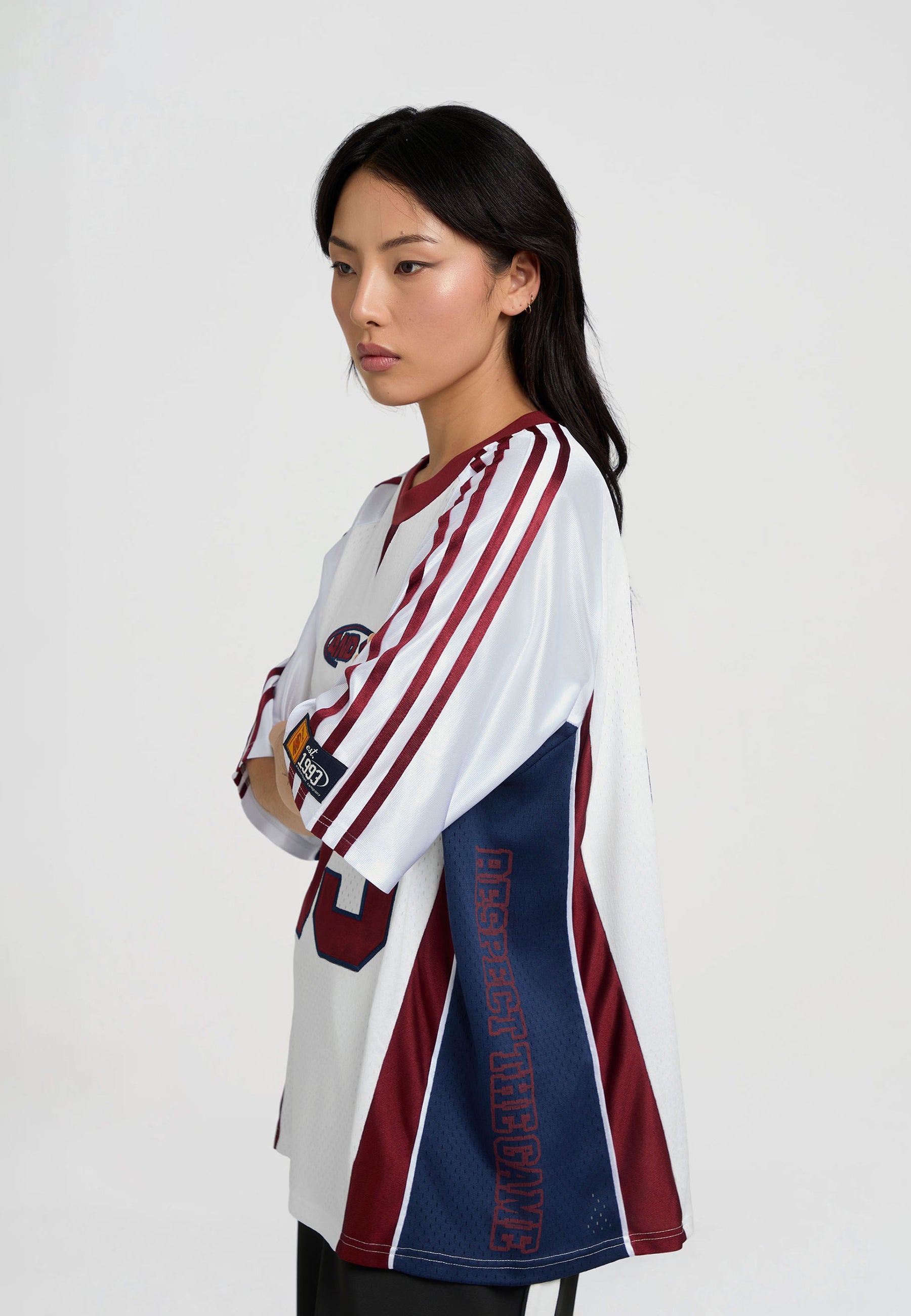 Respect The Game Super Airtex Sporttrikot für Damen – Weiß/Burgund