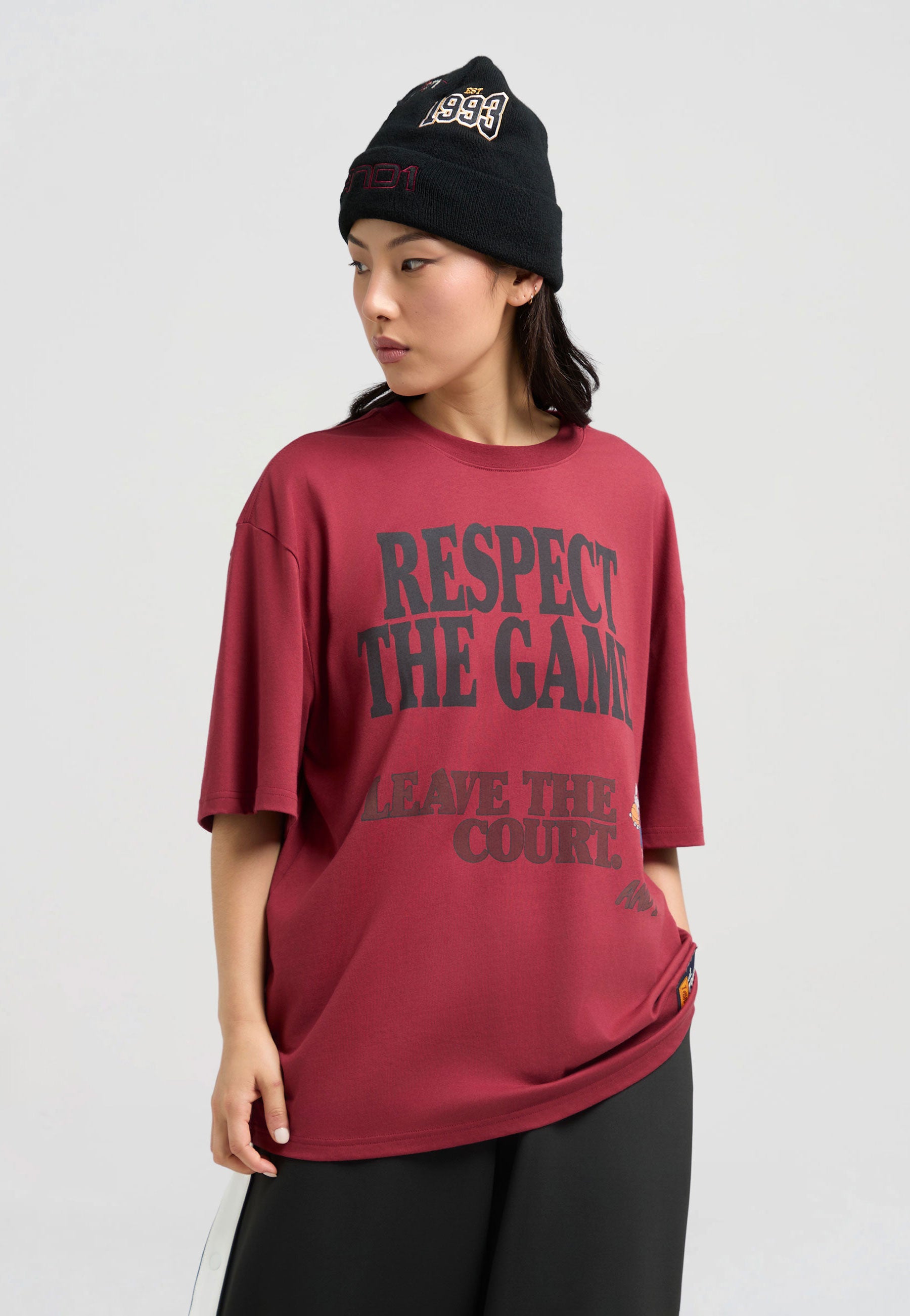 DAMEN RESPECT THE GAME TRASH TALK T-SHIRT in Burgunderrot