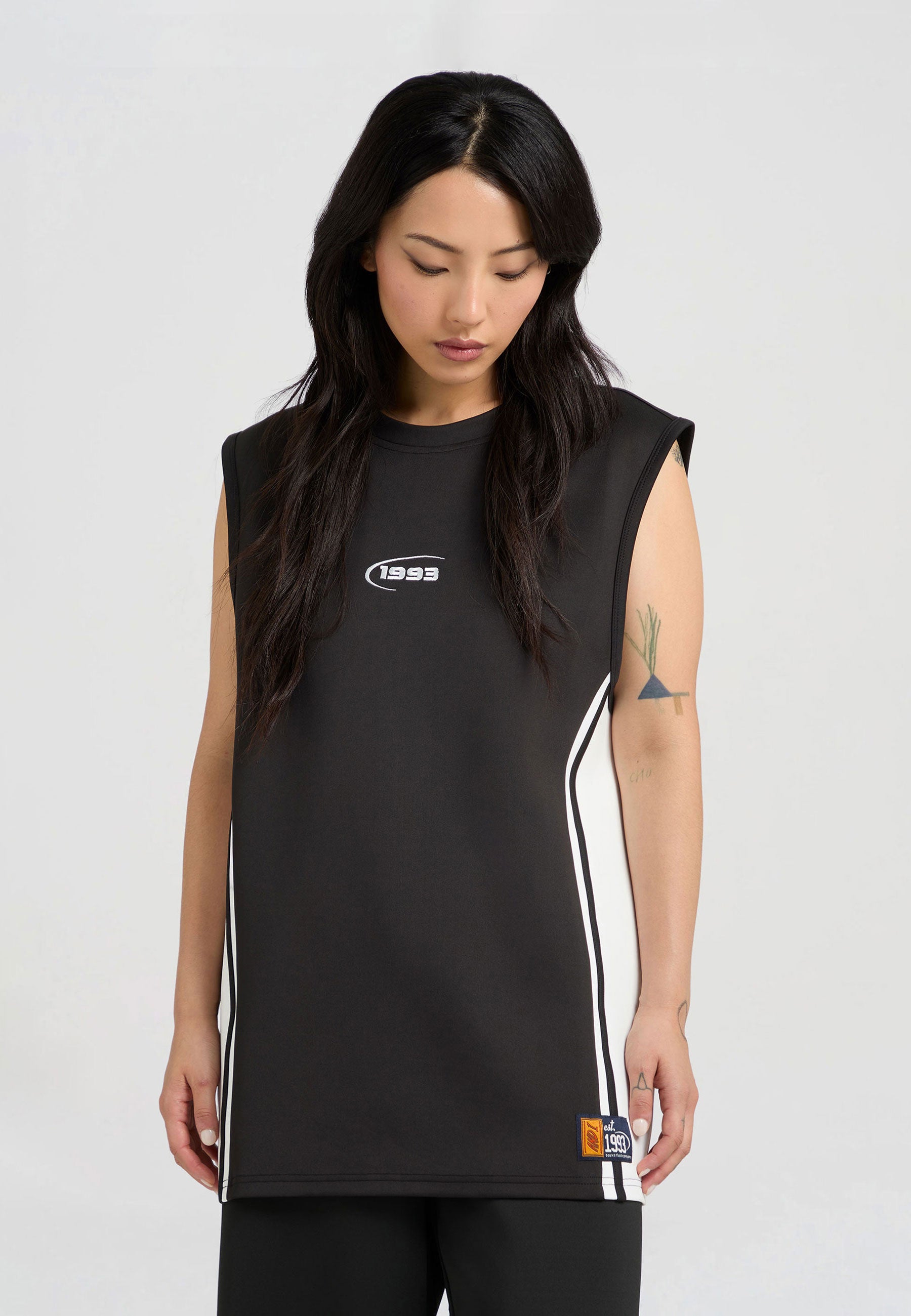 DAMEN-TANK MIT RETRO-PANEELEN in Schwarz