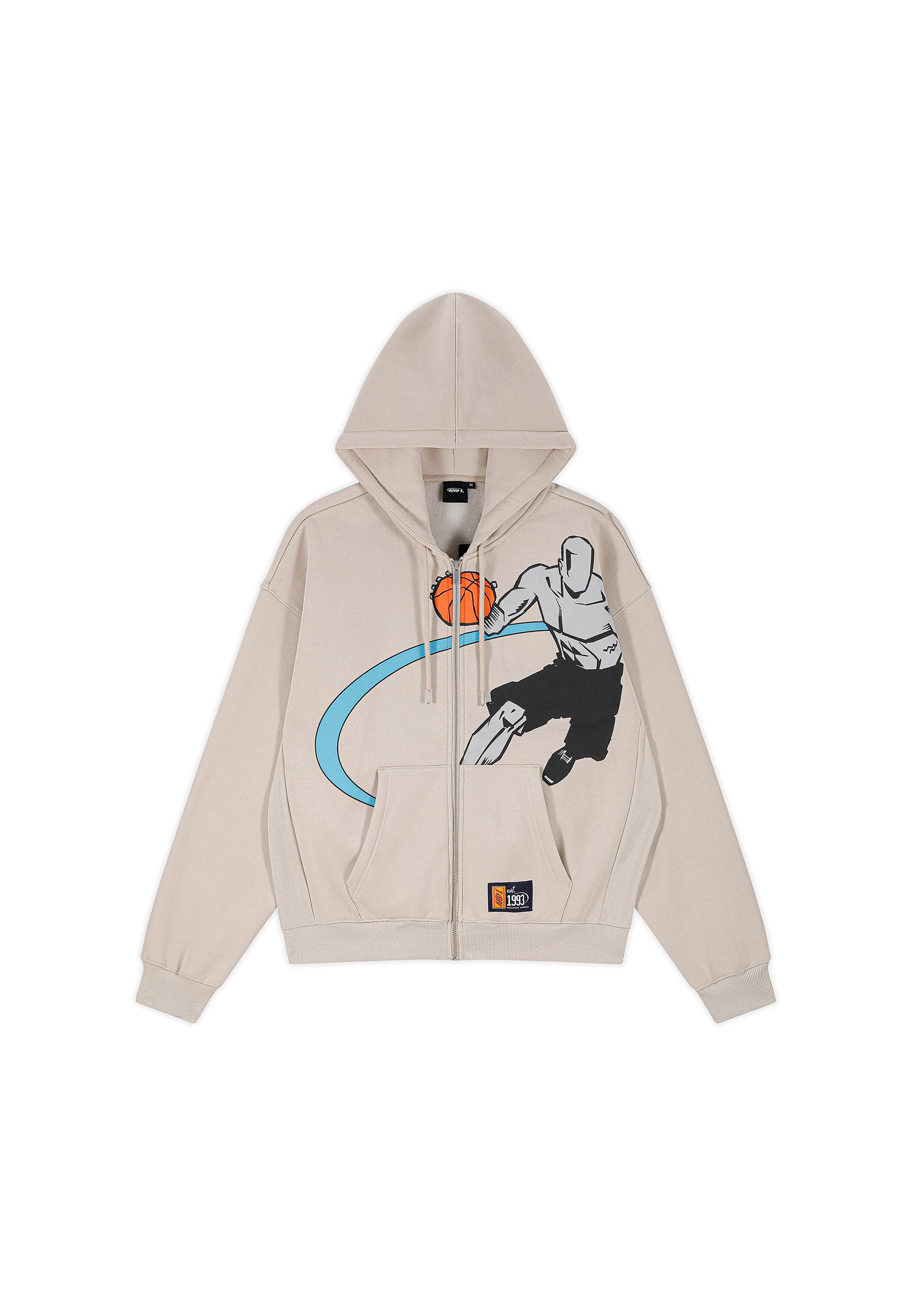 DAMEN-HOODIE MIT GERIPPTEM PANEL AUF DEM COURT-PLATZ UND DURCHGEHENDEM REISSVERSCHLUSS in Grau
