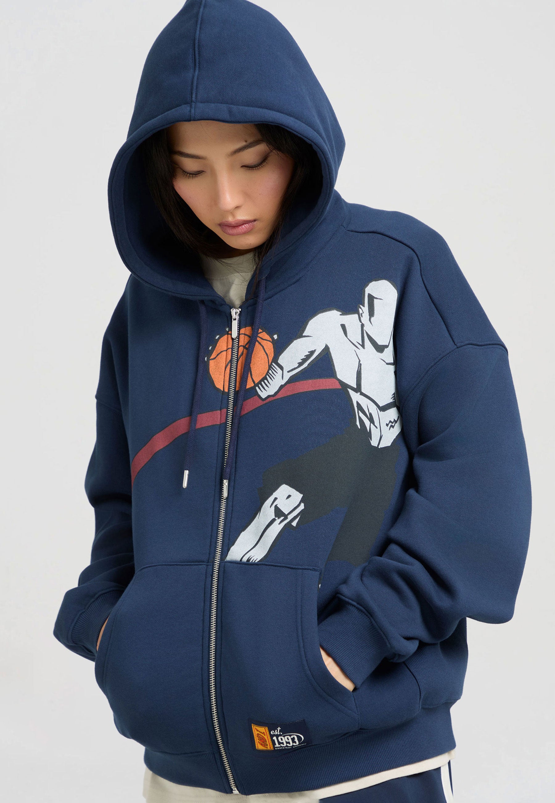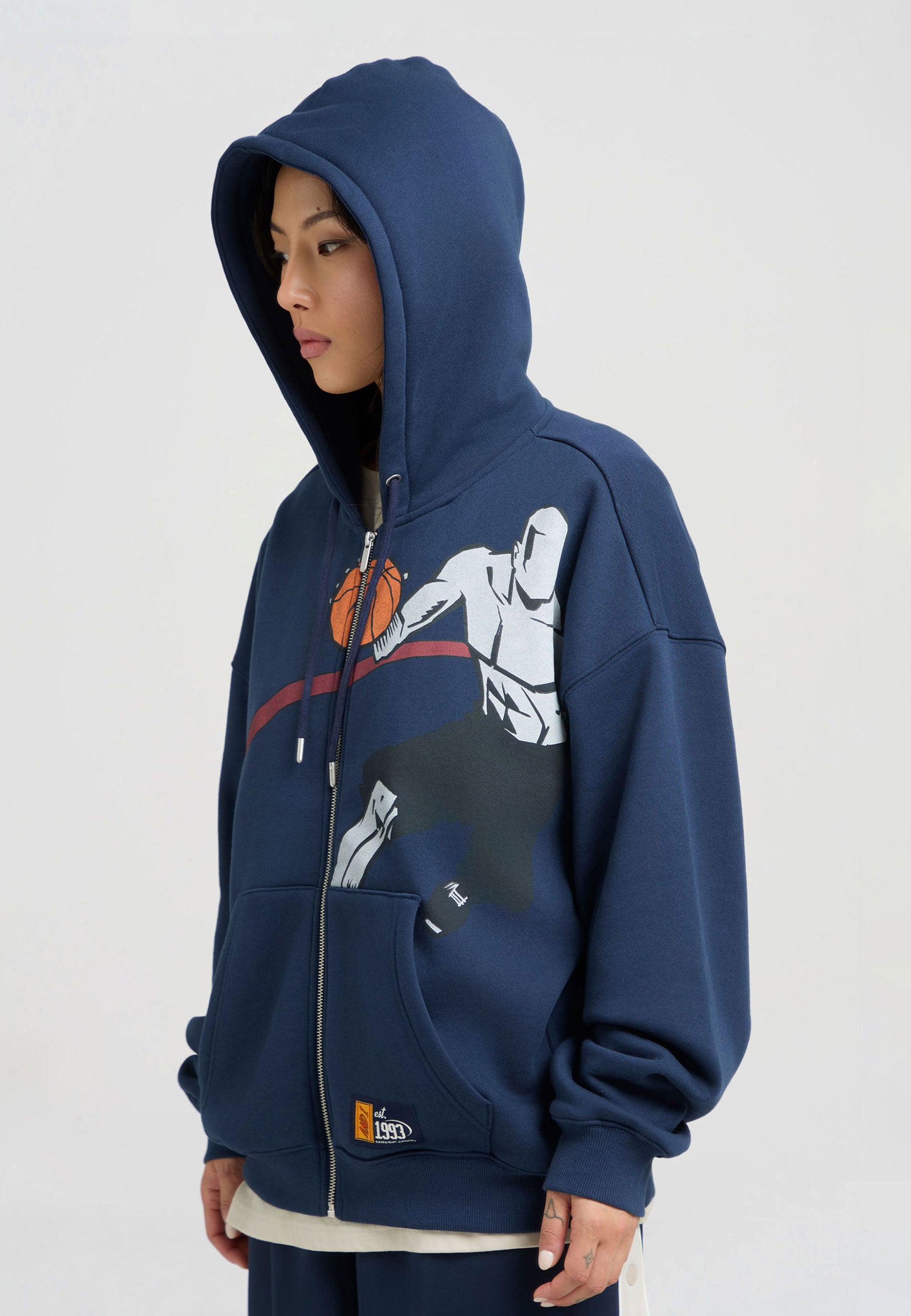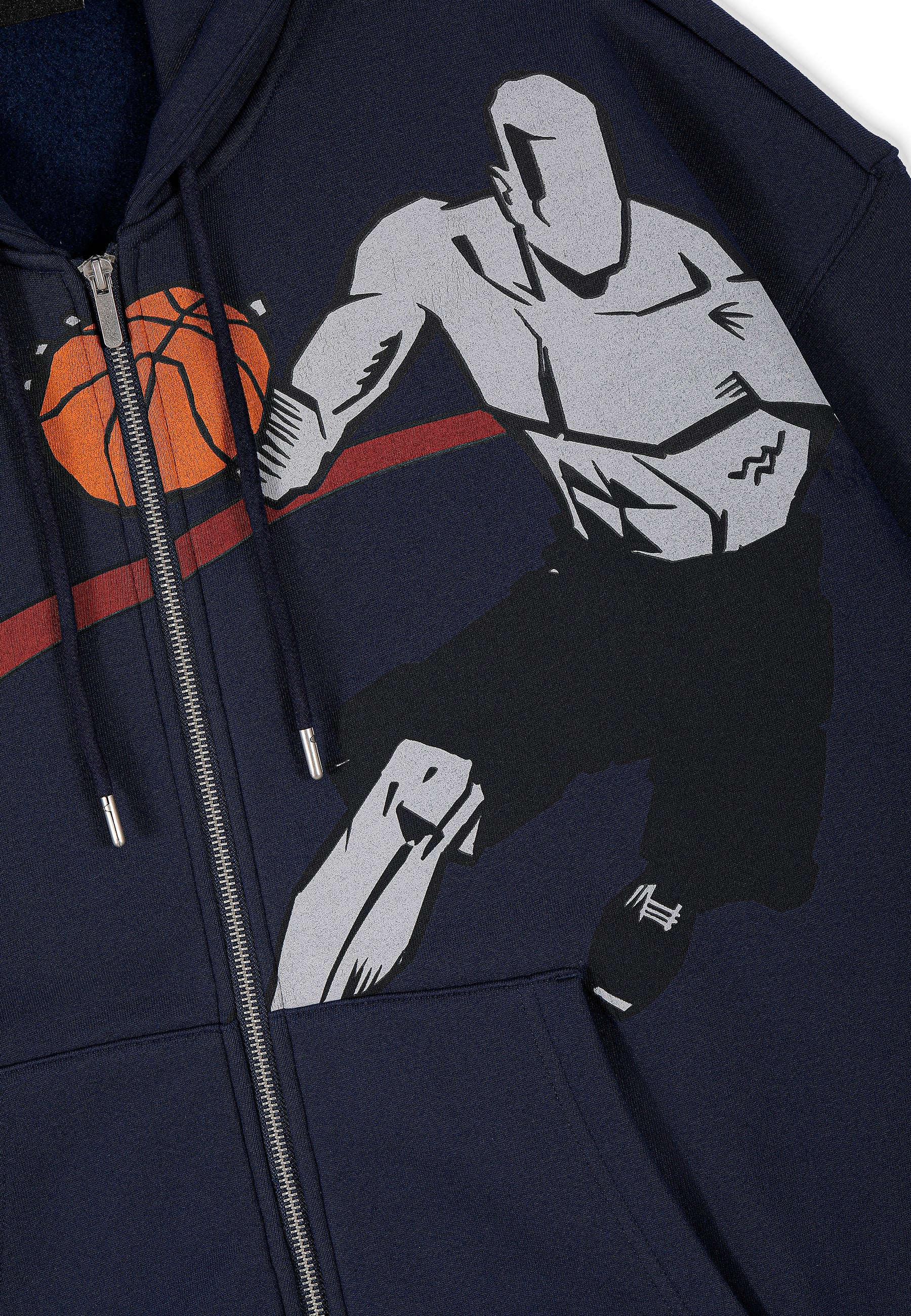 DAMEN-HOODIE MIT GERIPPTEM EINSATZ AUF DEM COURT-PLATZ UND DURCHGEHENDEM REISSVERSCHLUSS in Marineblau