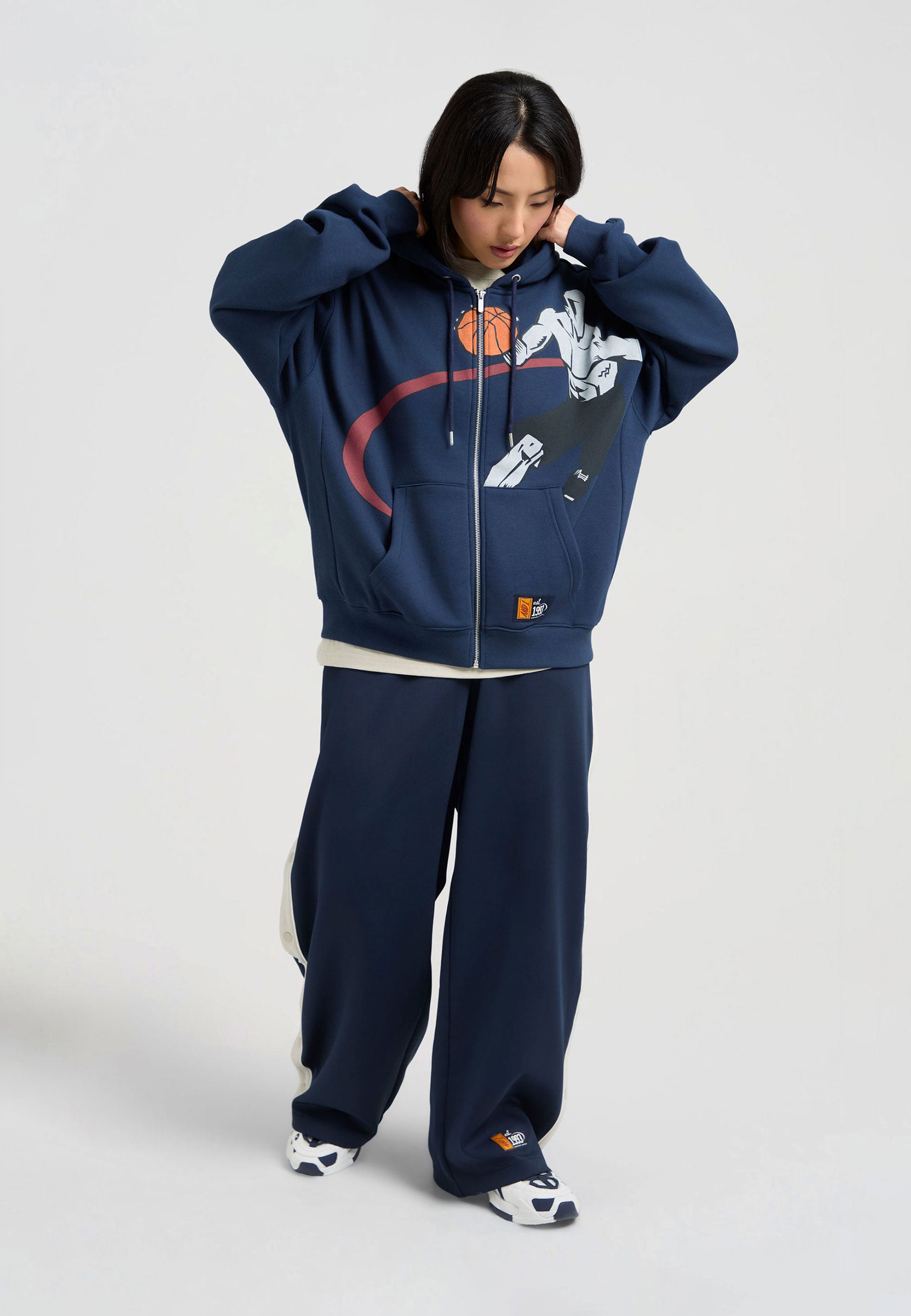 Damen-Kapuzenpullover mit geripptem Panel auf dem Court mit durchgehendem Reißverschluss - Marineblau