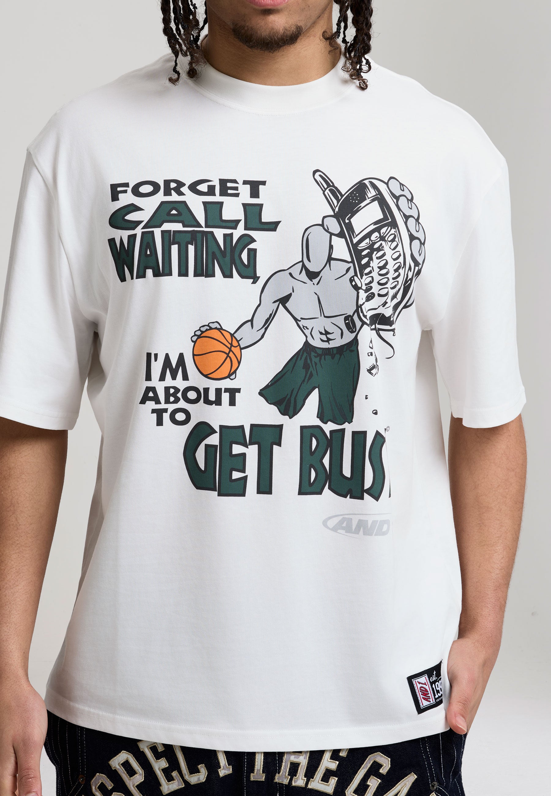 Mens Get Busy Trash Talk Oversized Graphic T-Shirt - White