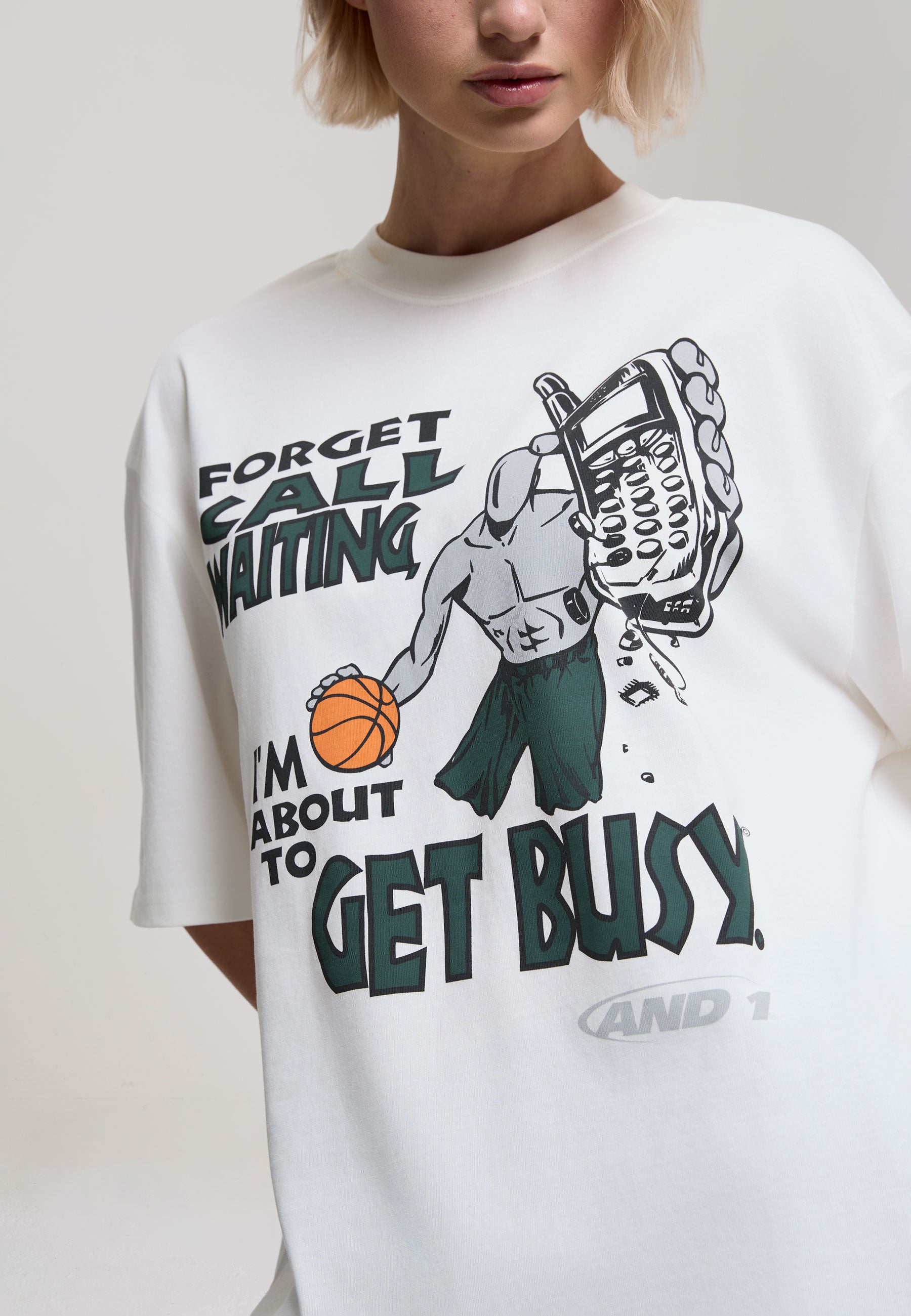 Womens Get Busy Trash Talk Oversized Graphic T-Shirt - White