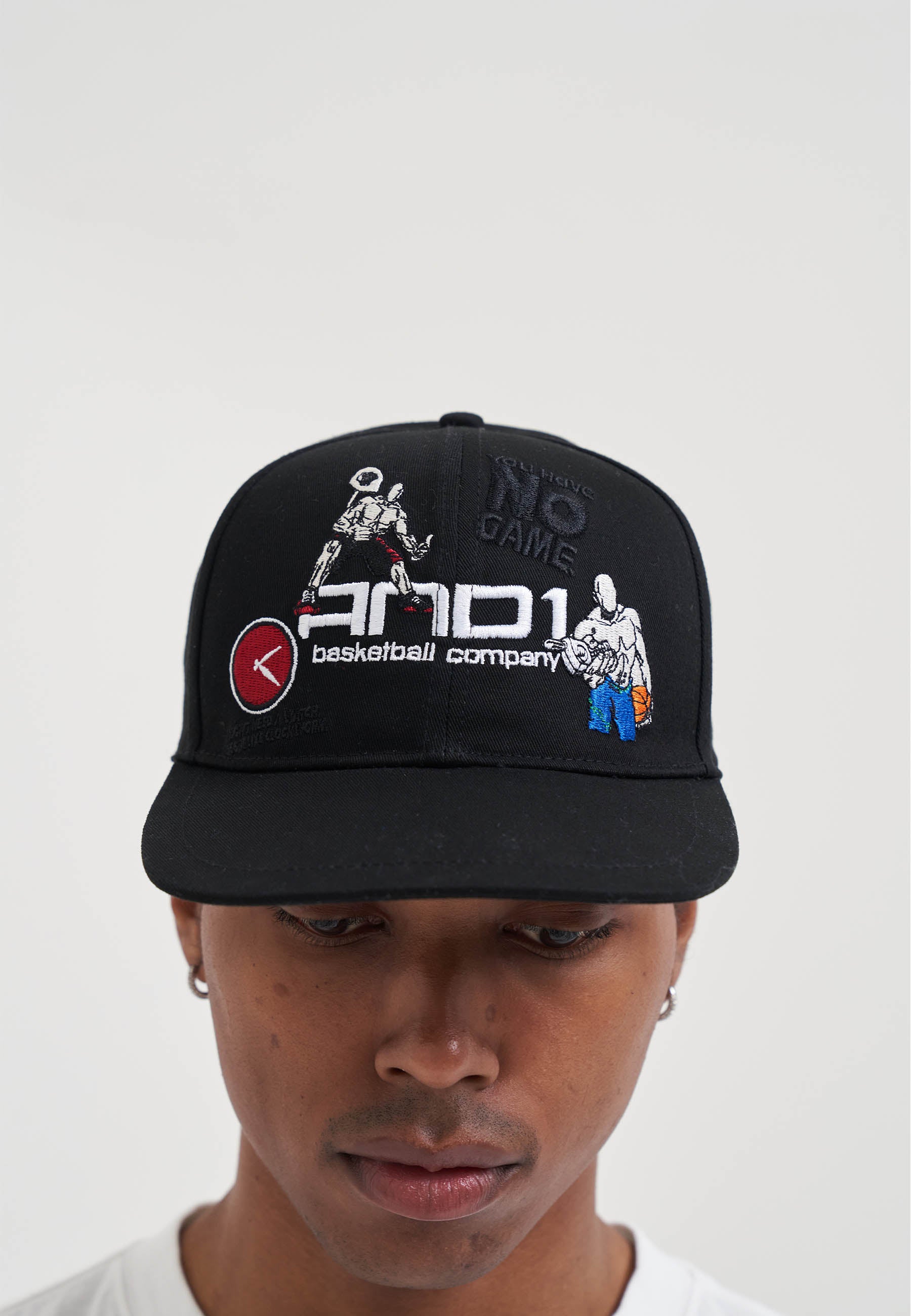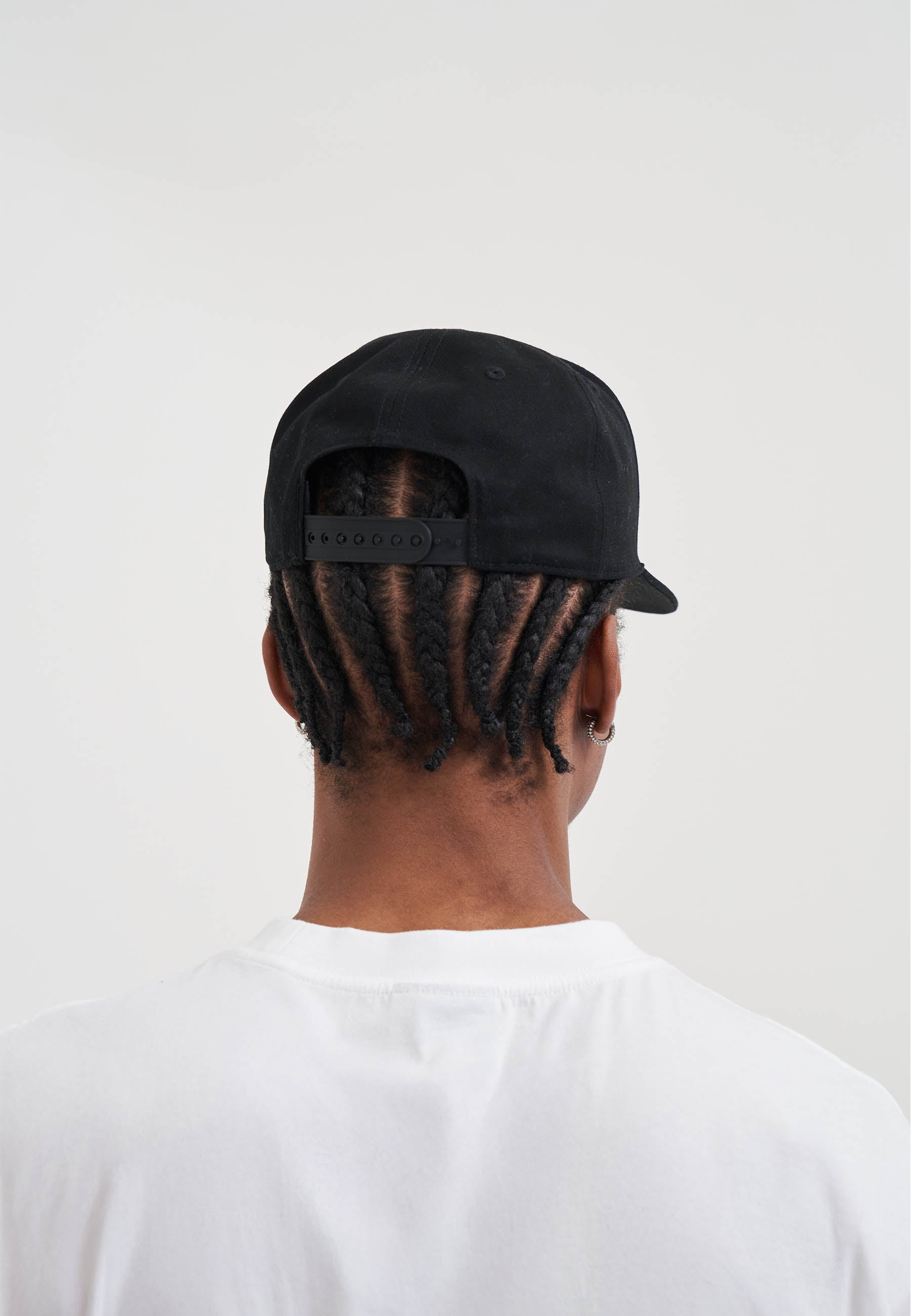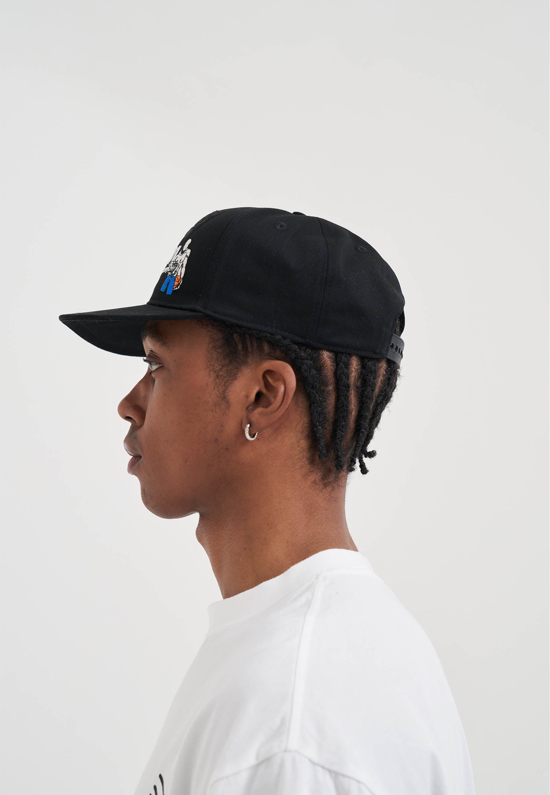 Casquette unisexe à visière plate et 6 panneaux avec badges graphiques - Noir