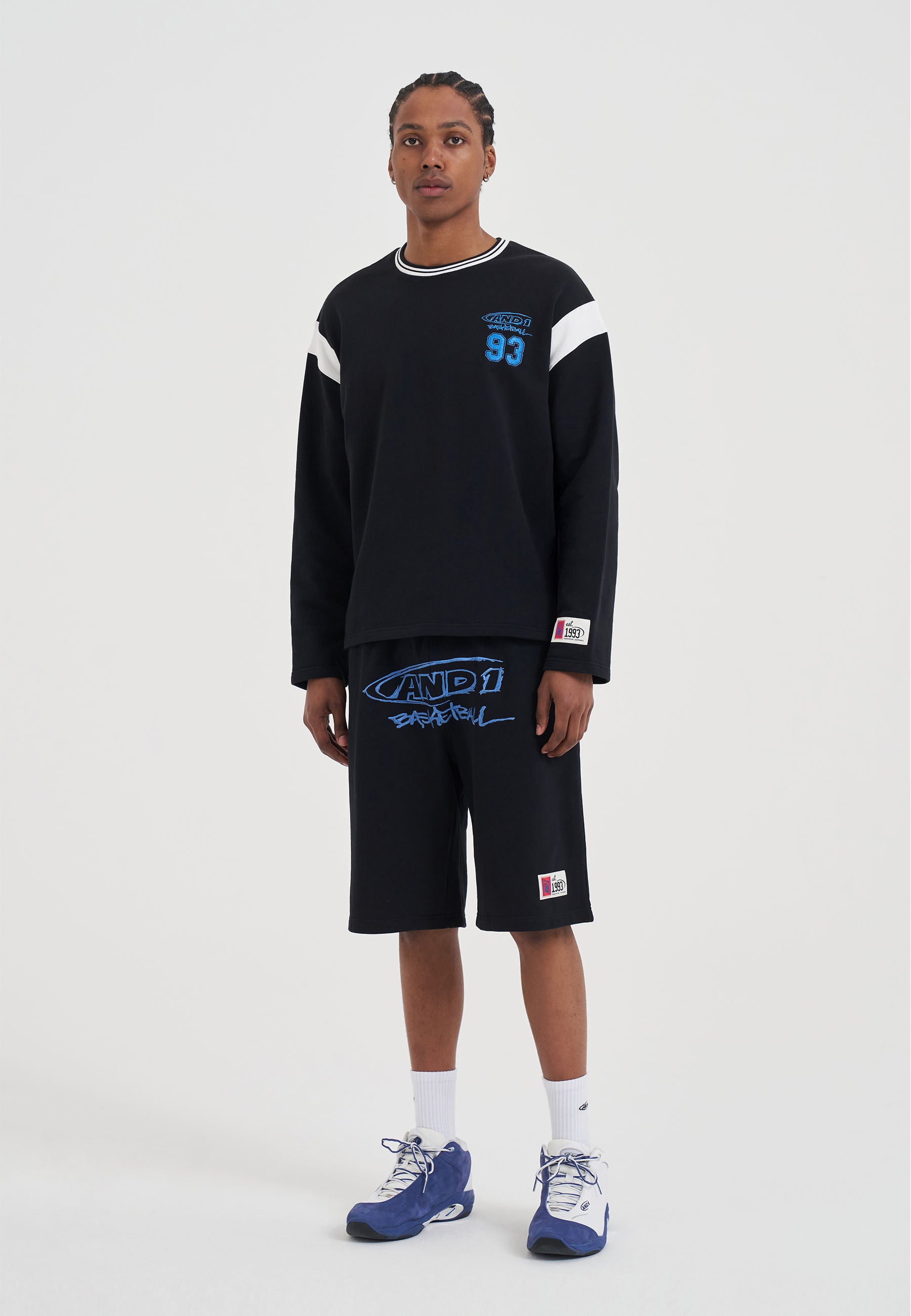 Sweat-shirt à manches longues et panneaux Core 93 pour homme - Noir