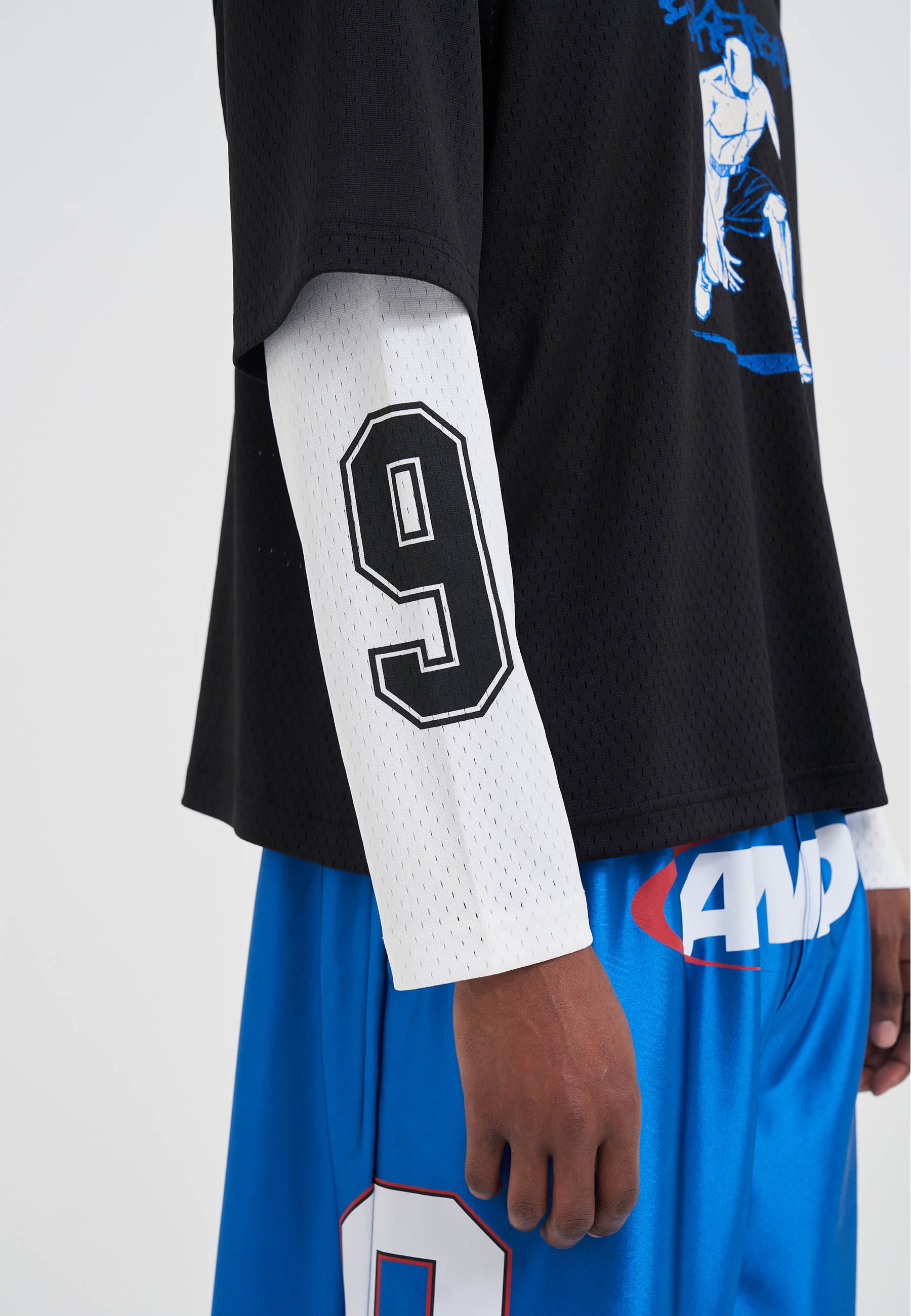 T-SHIRT À MANCHES LONGUES EN MAILLE DOUBLE COUCHE POUR HOMMES en noir/blanc