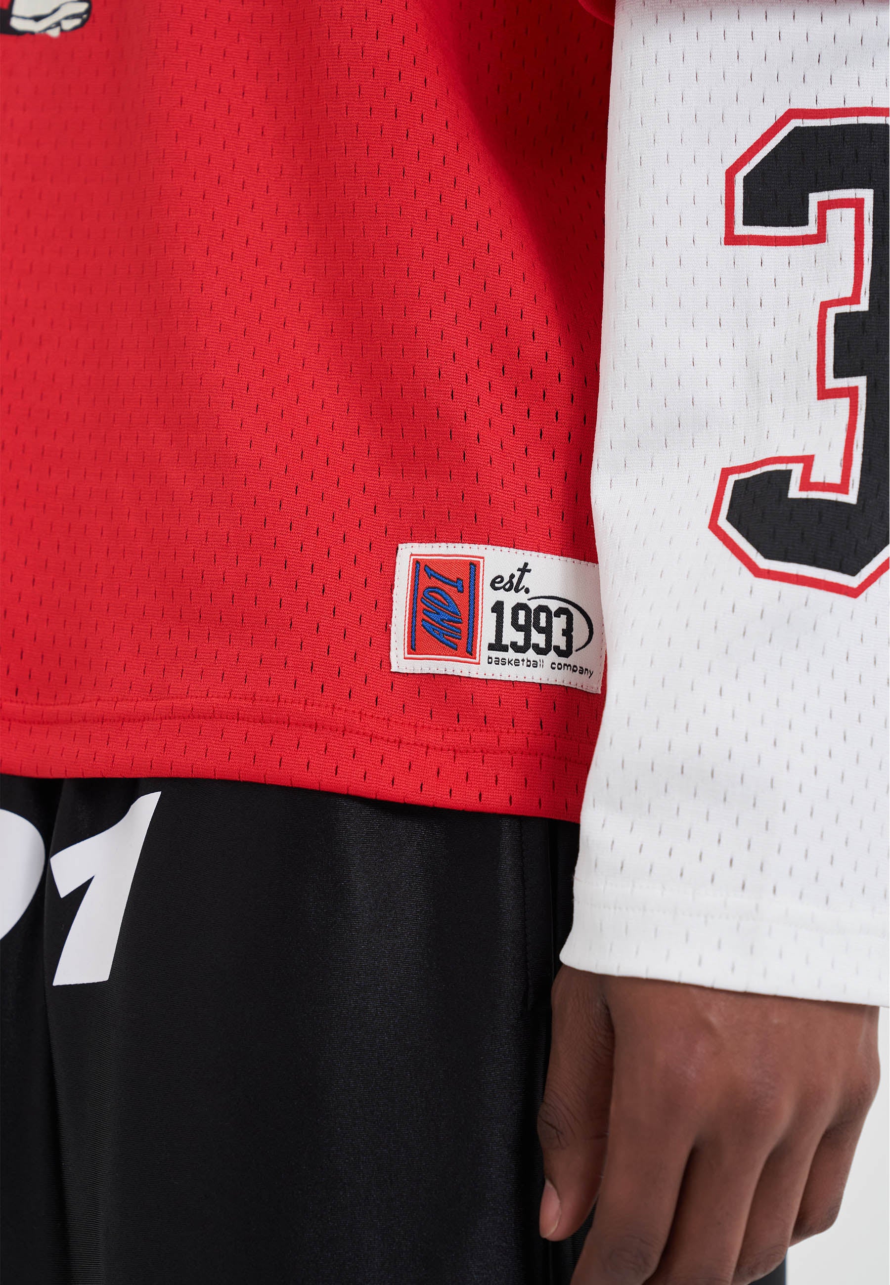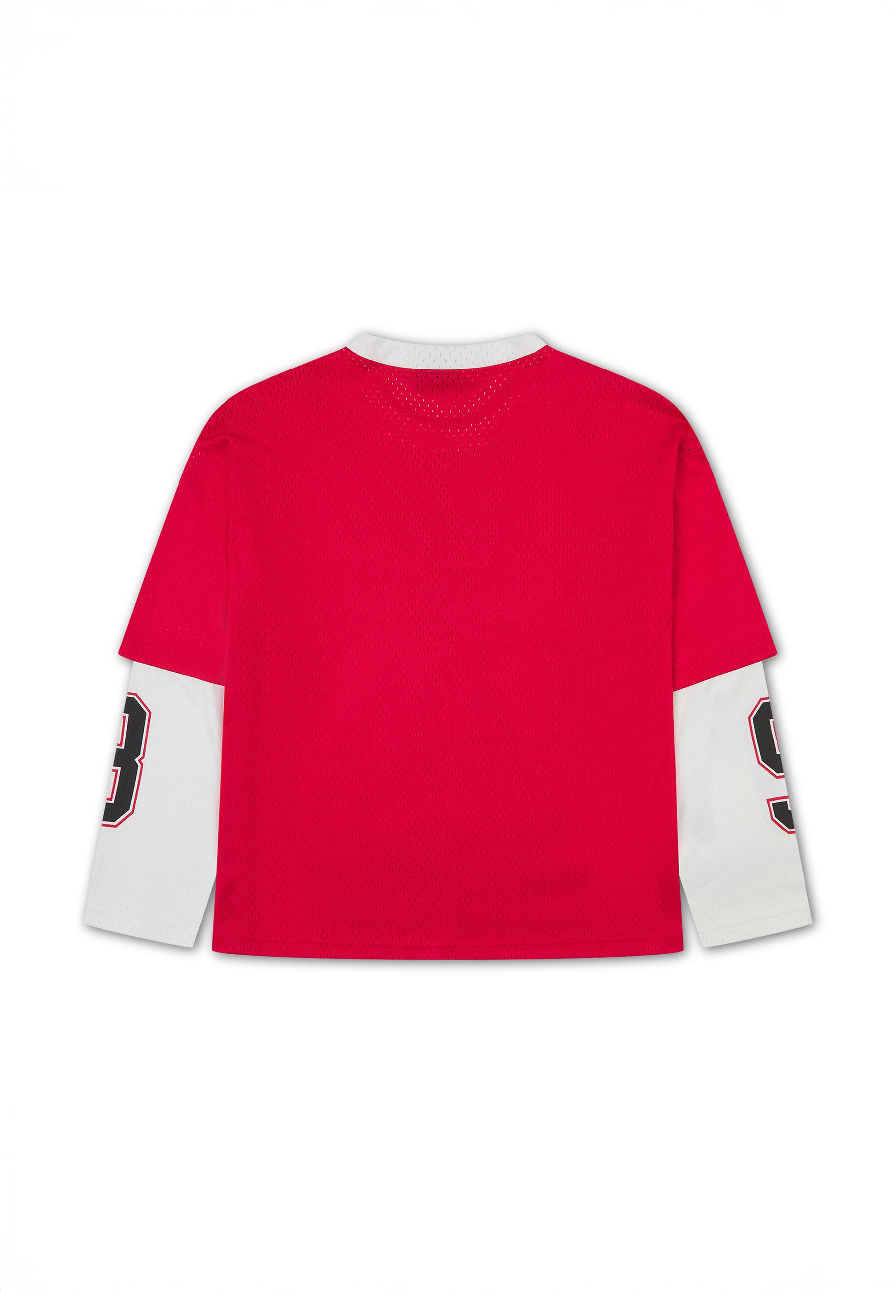 T-SHIRT À MANCHES LONGUES EN MAILLE DOUBLE COUCHE POUR HOMMES en rouge