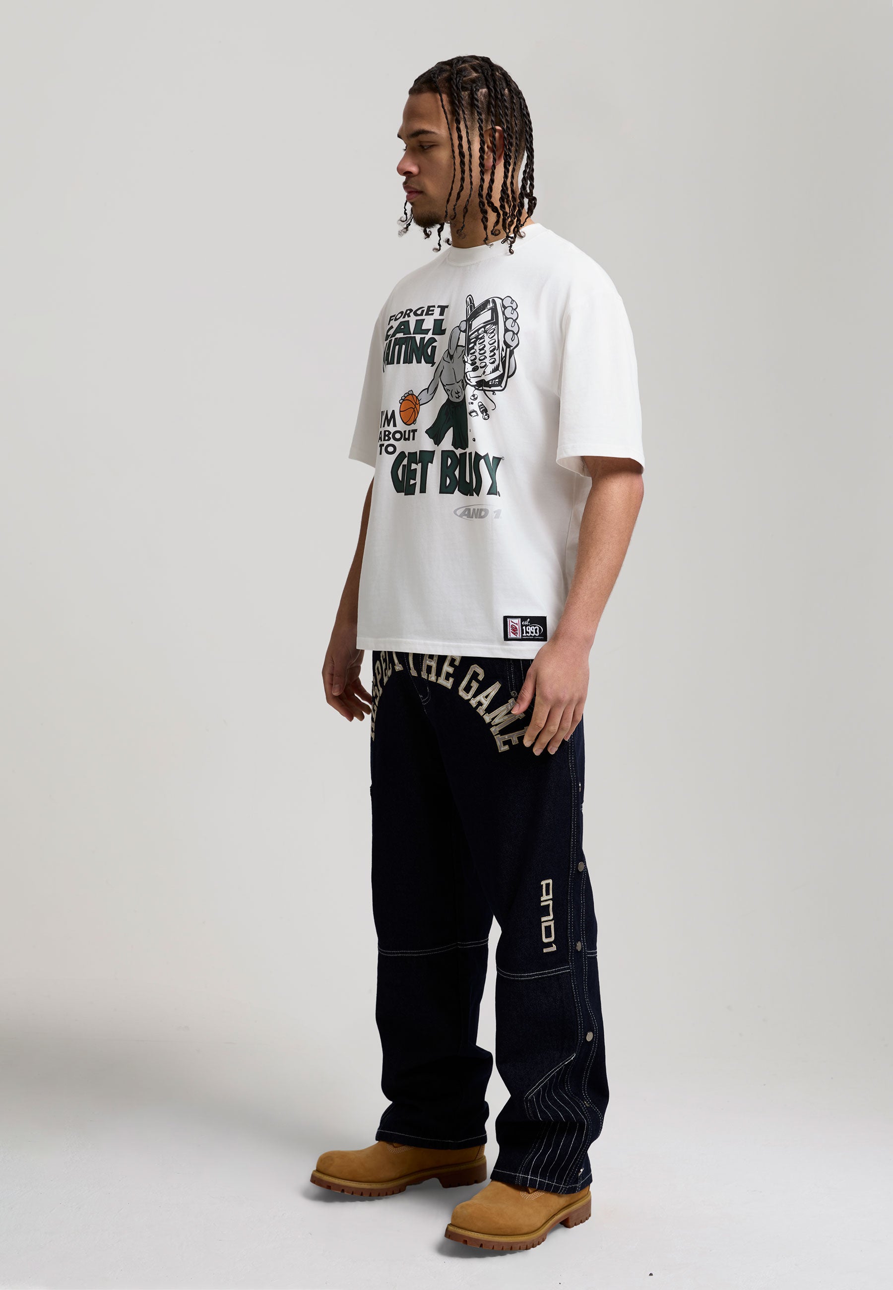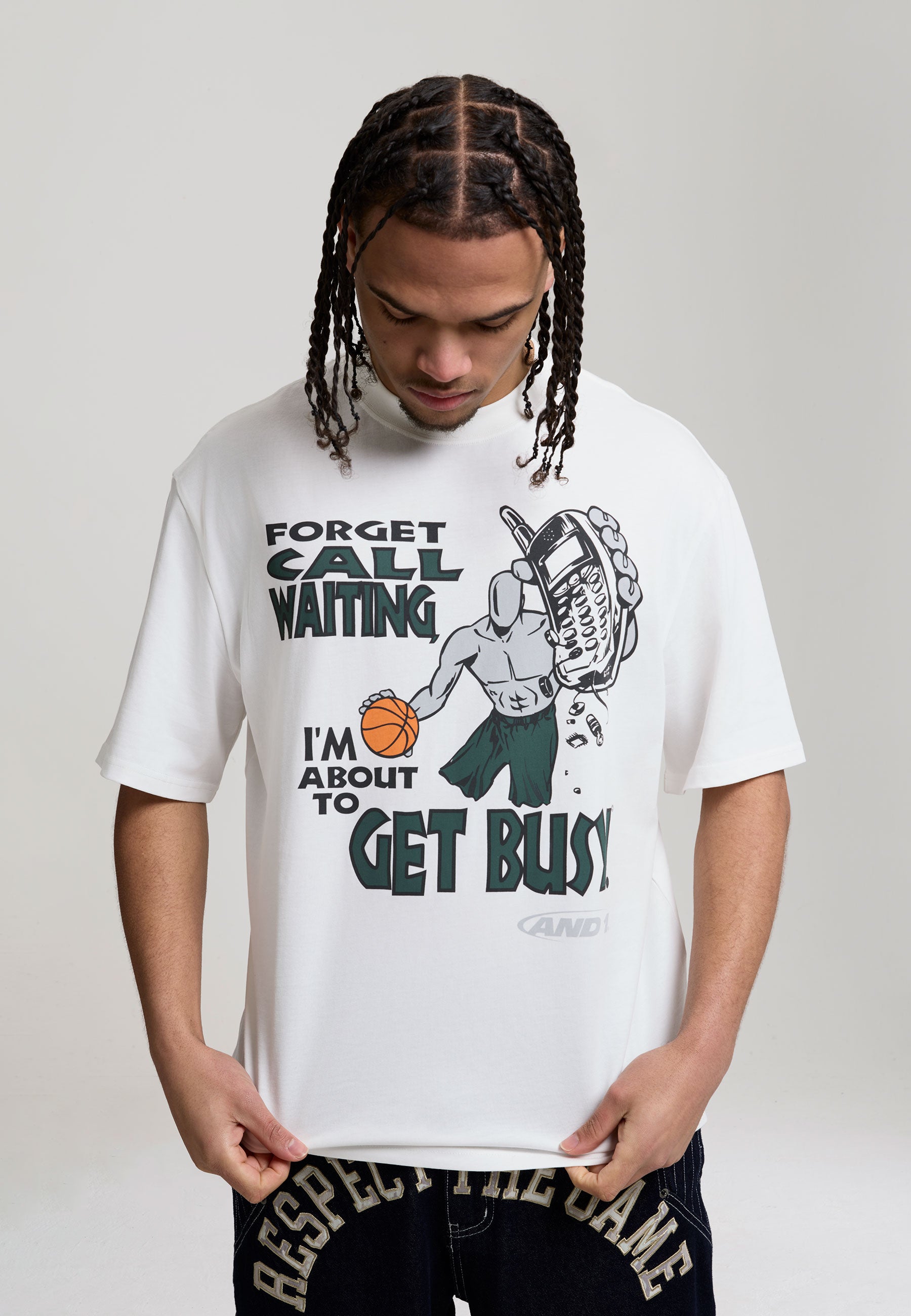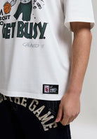 MENS GET BUSY TRASH TALK OVERSIZED GRAPHIC T-SHIRT in White