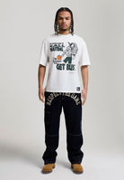 Mens Get Busy Trash Talk Oversized Graphic T-Shirt - White