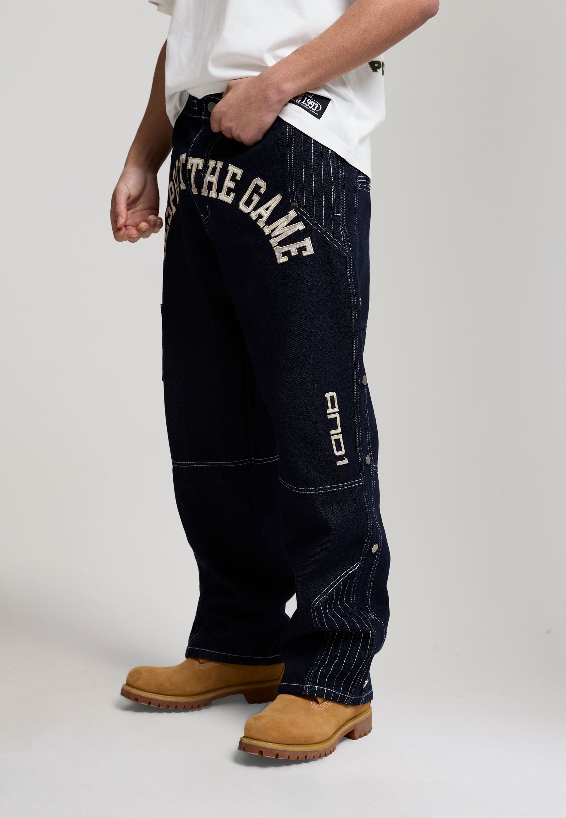 Mens Respect The Game Contrast Stitch Jeans - Indigo