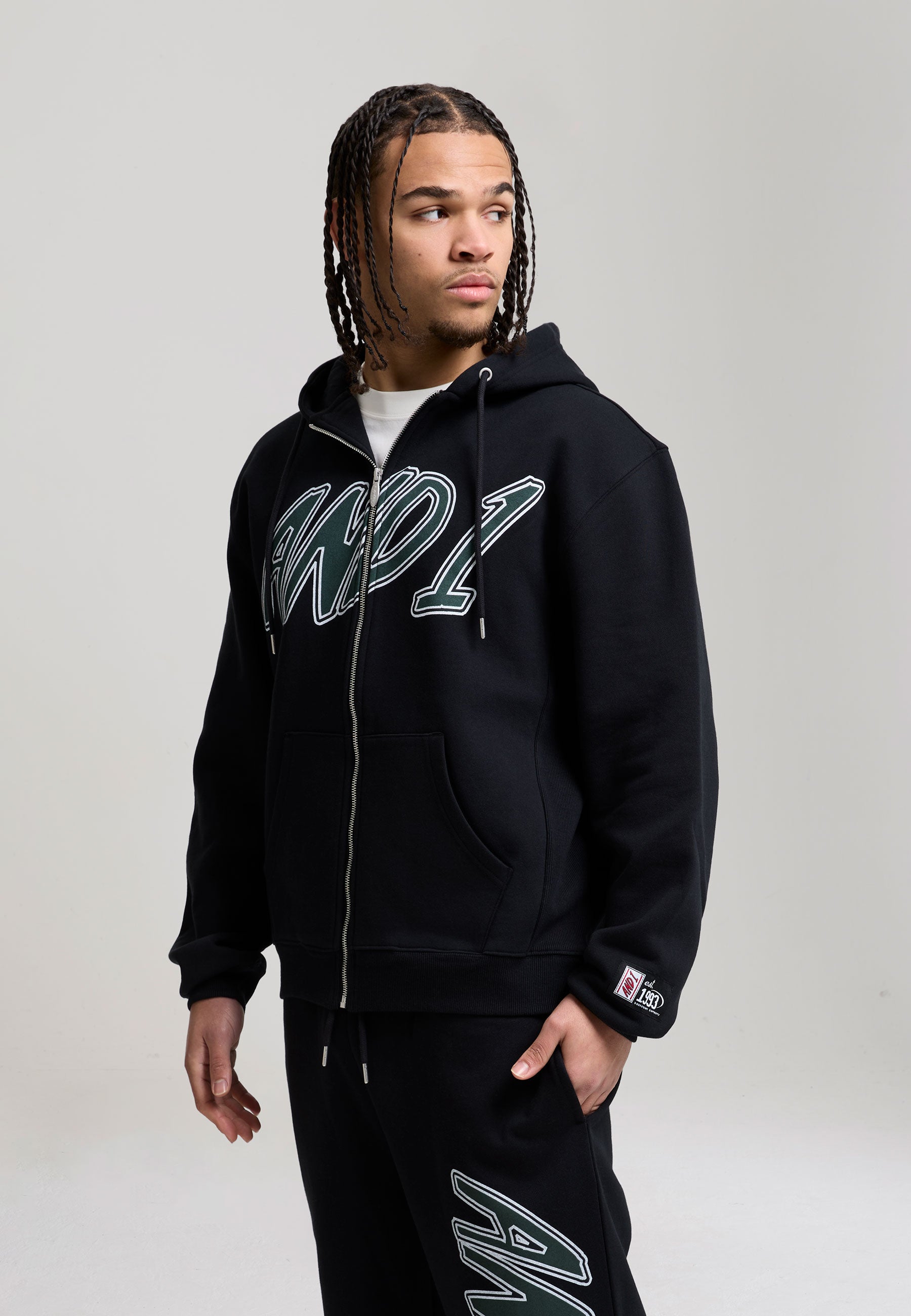 MENS STAPLE GRAPHIC ZIP THRU HOODIE in Black