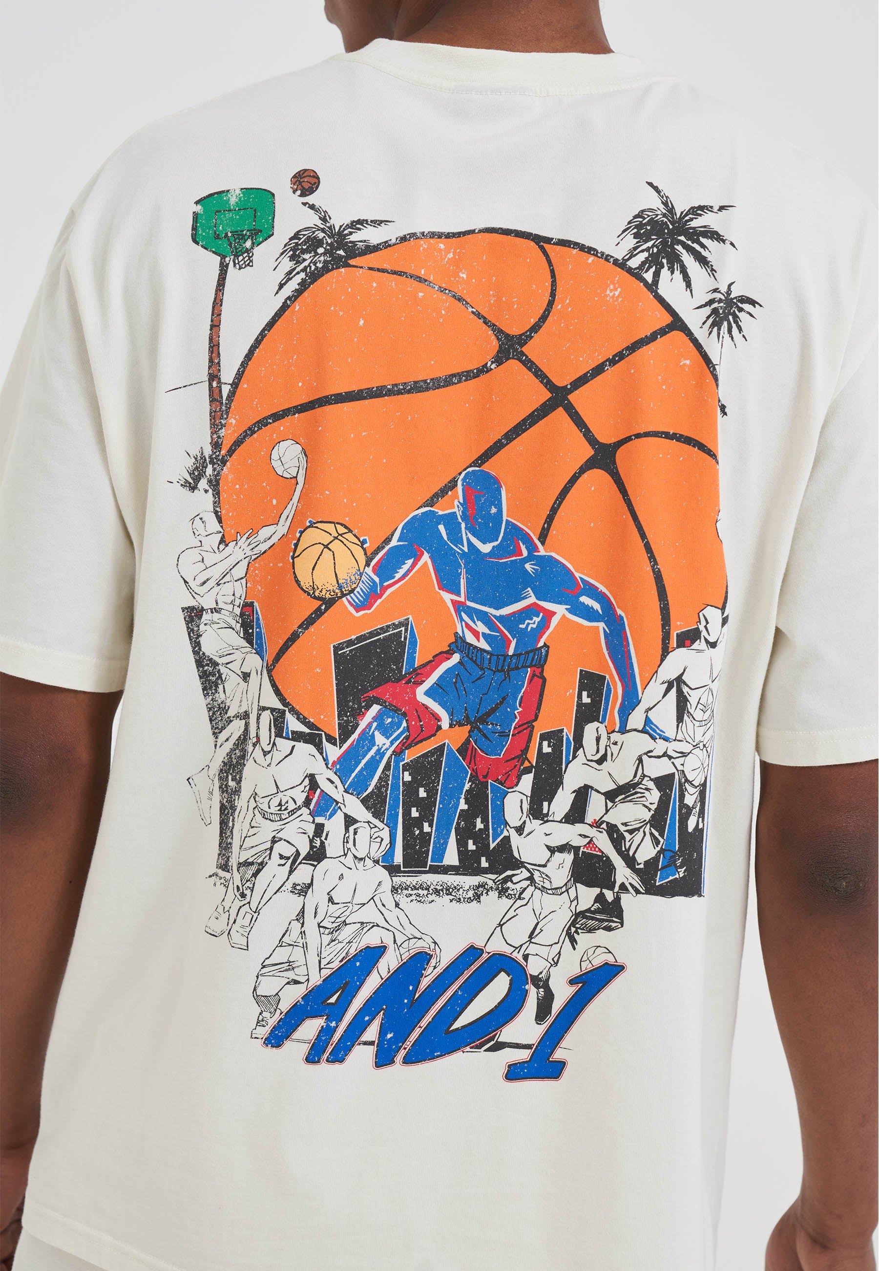 T-SHIRT GRAPHIQUE STREETBALL POUR HOMMES en écru