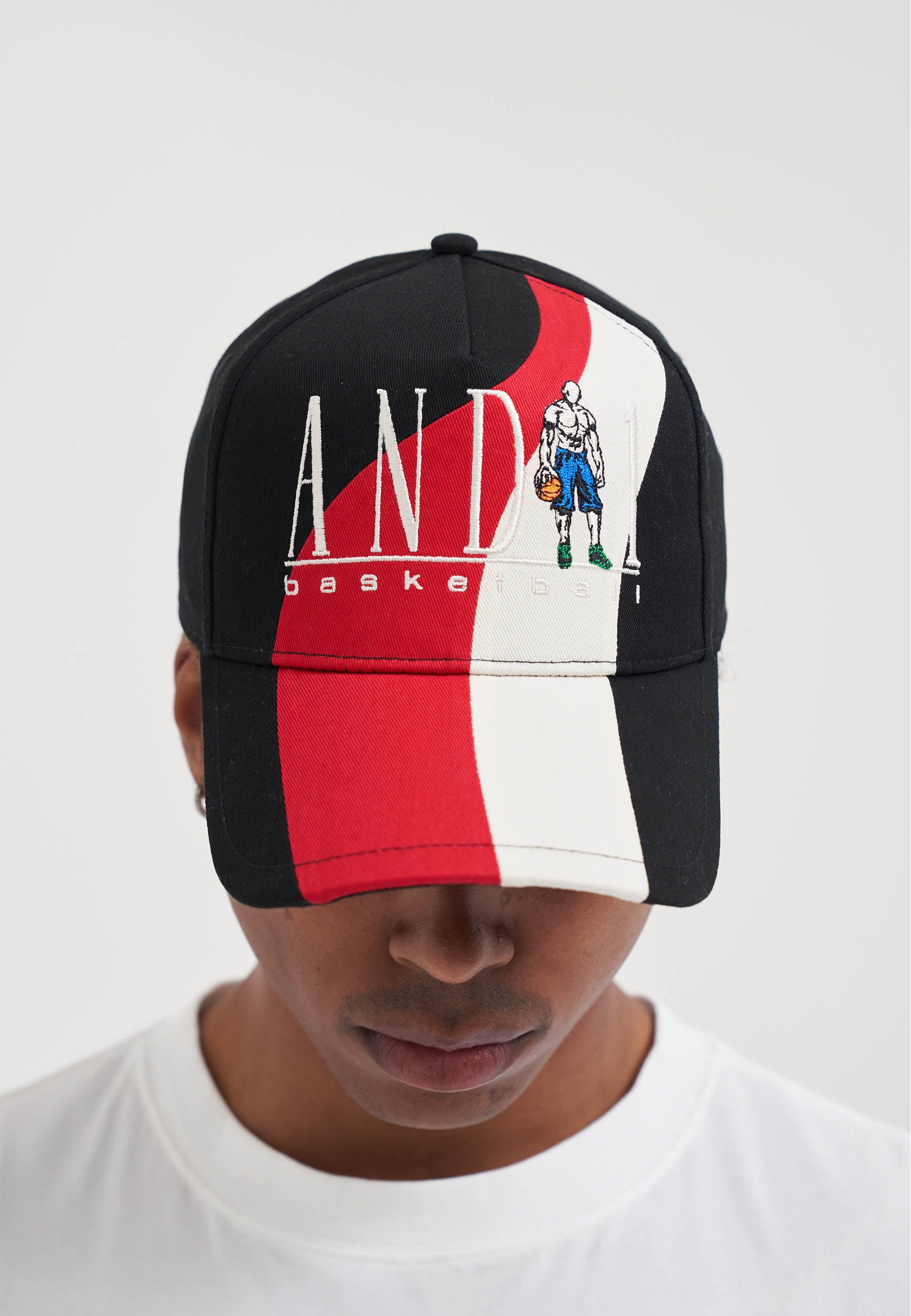 CASQUETTE DE BASEBALL À 5 PANNEAUX AVEC LOGO RÉTRO ET BLOCS DE COULEURS en noir
