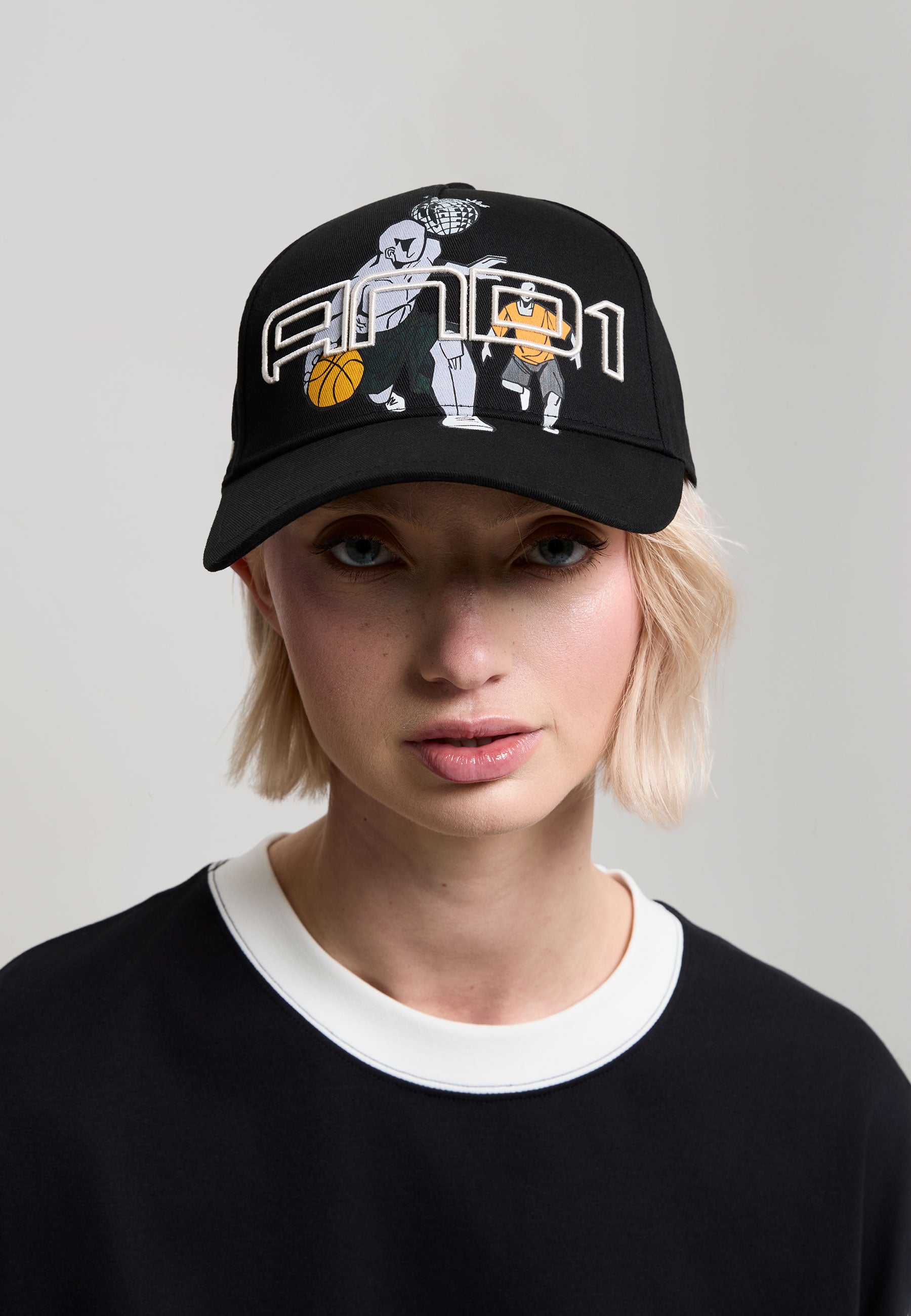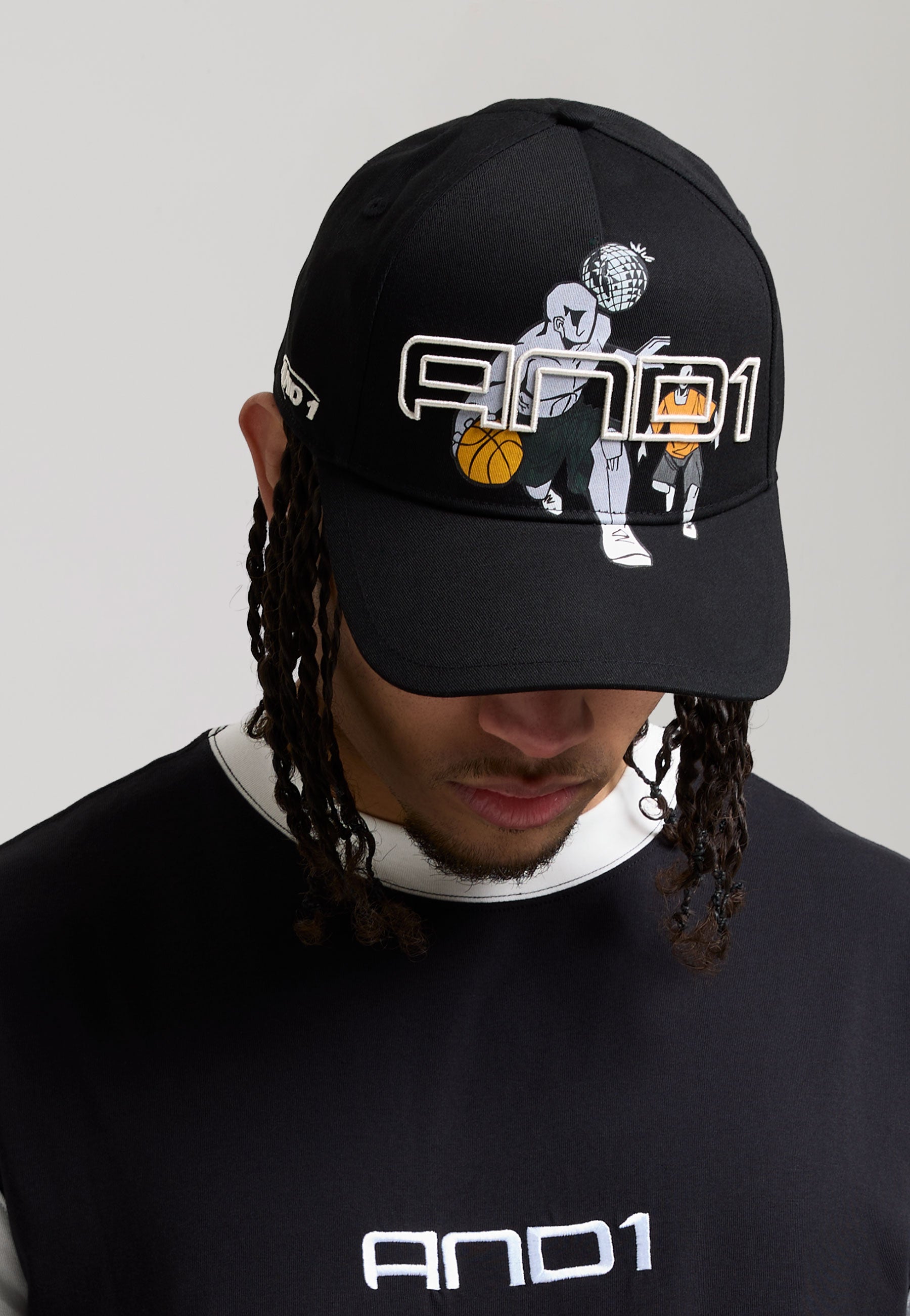 UNISEX AND1 HEAD IN THE GAME 5 PANEL BASEBALL CAP in Black
