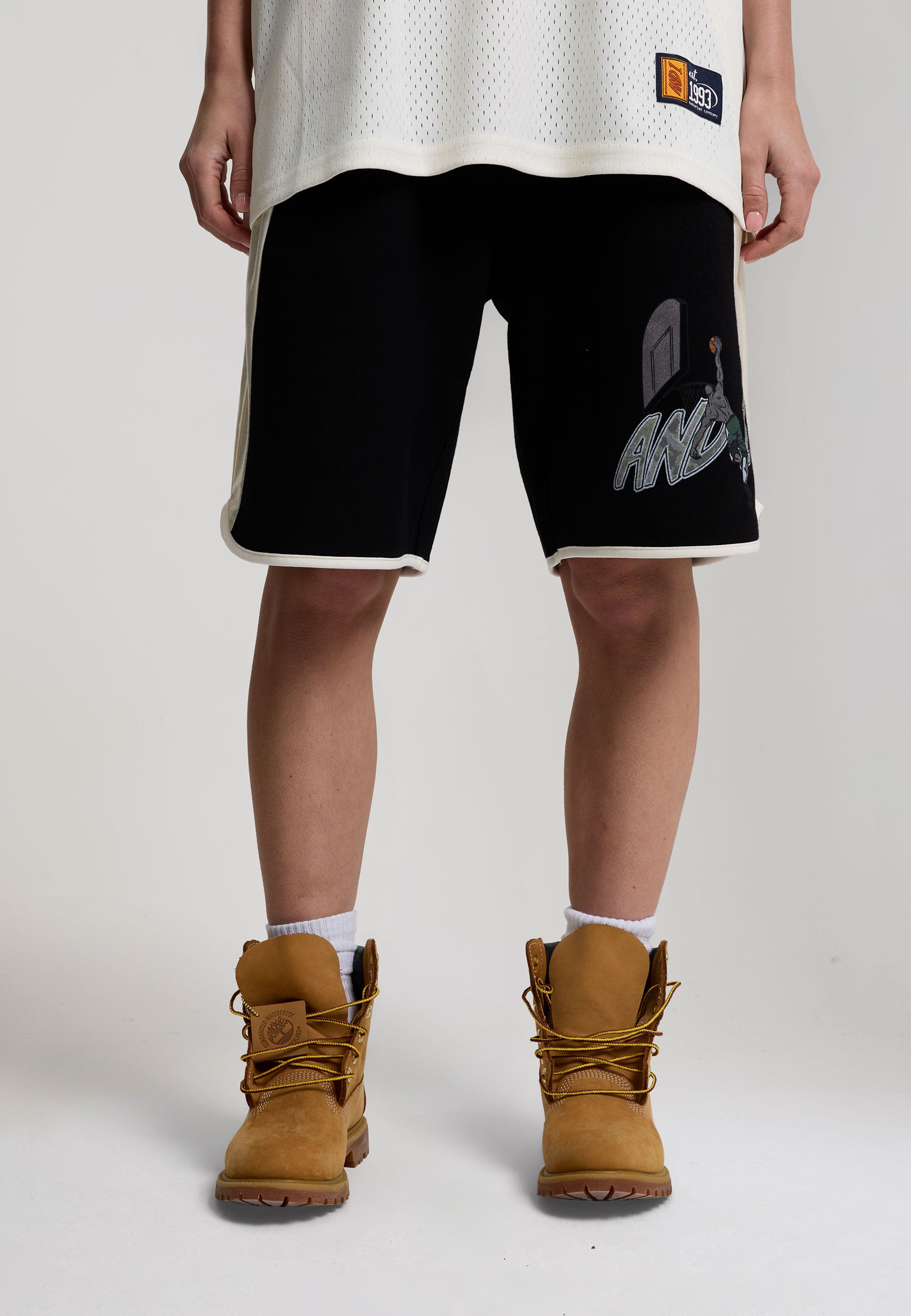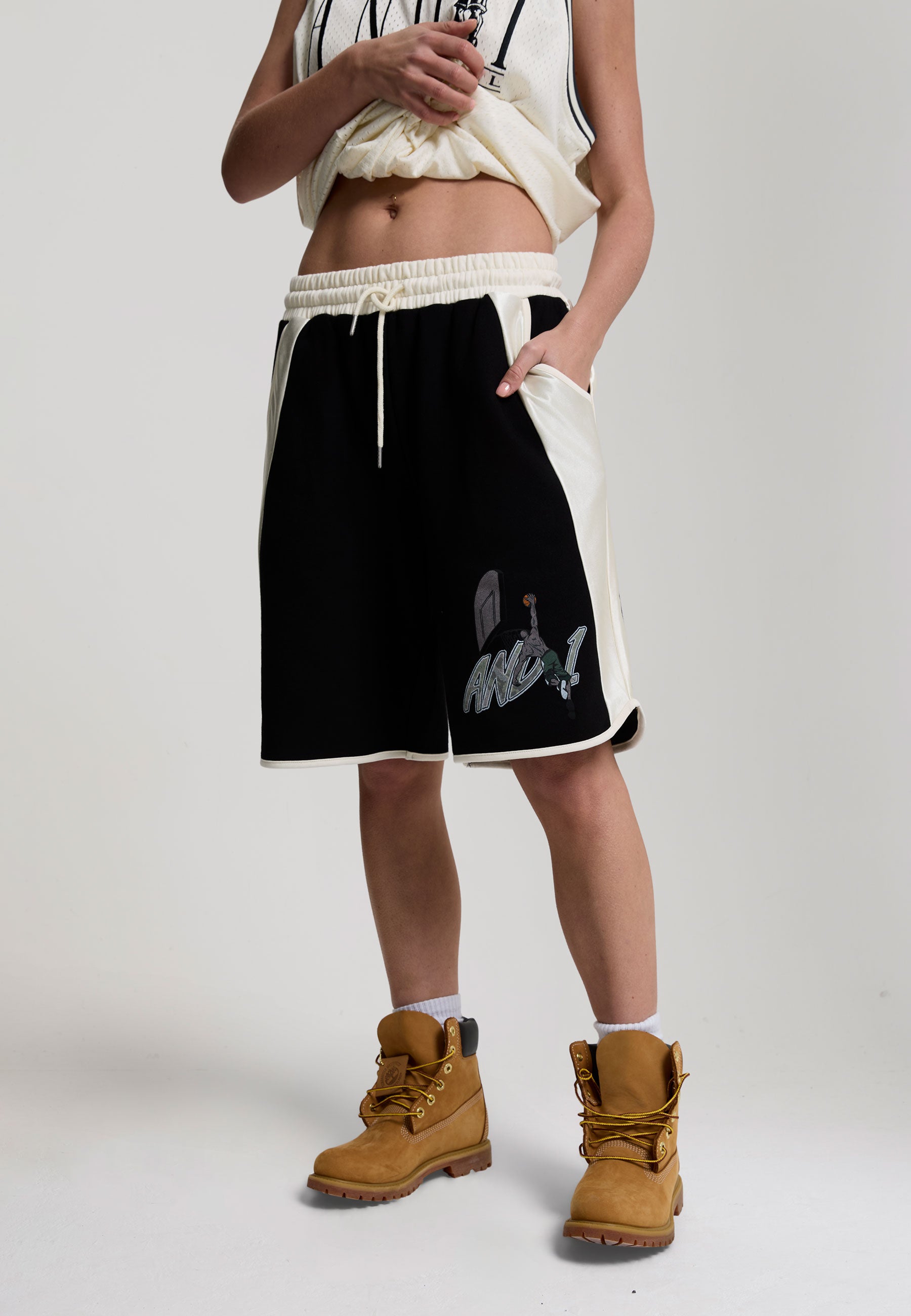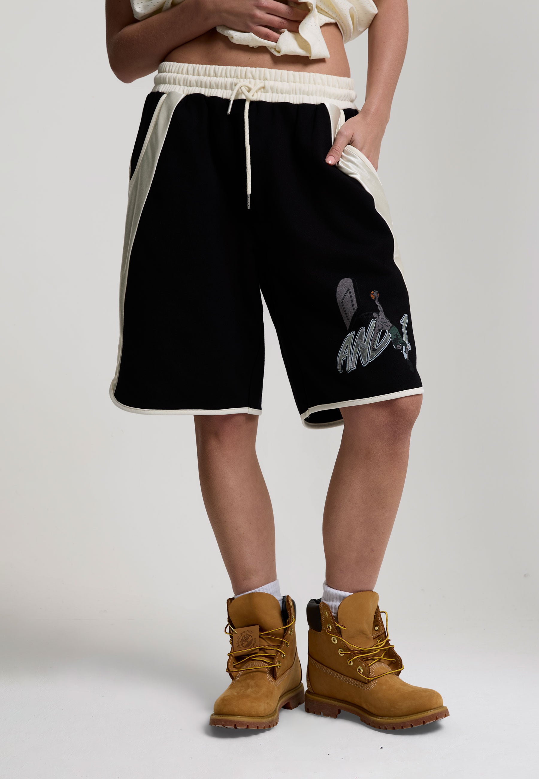 WOMENS CAMO DUNK PANELLED SHORTS in Black