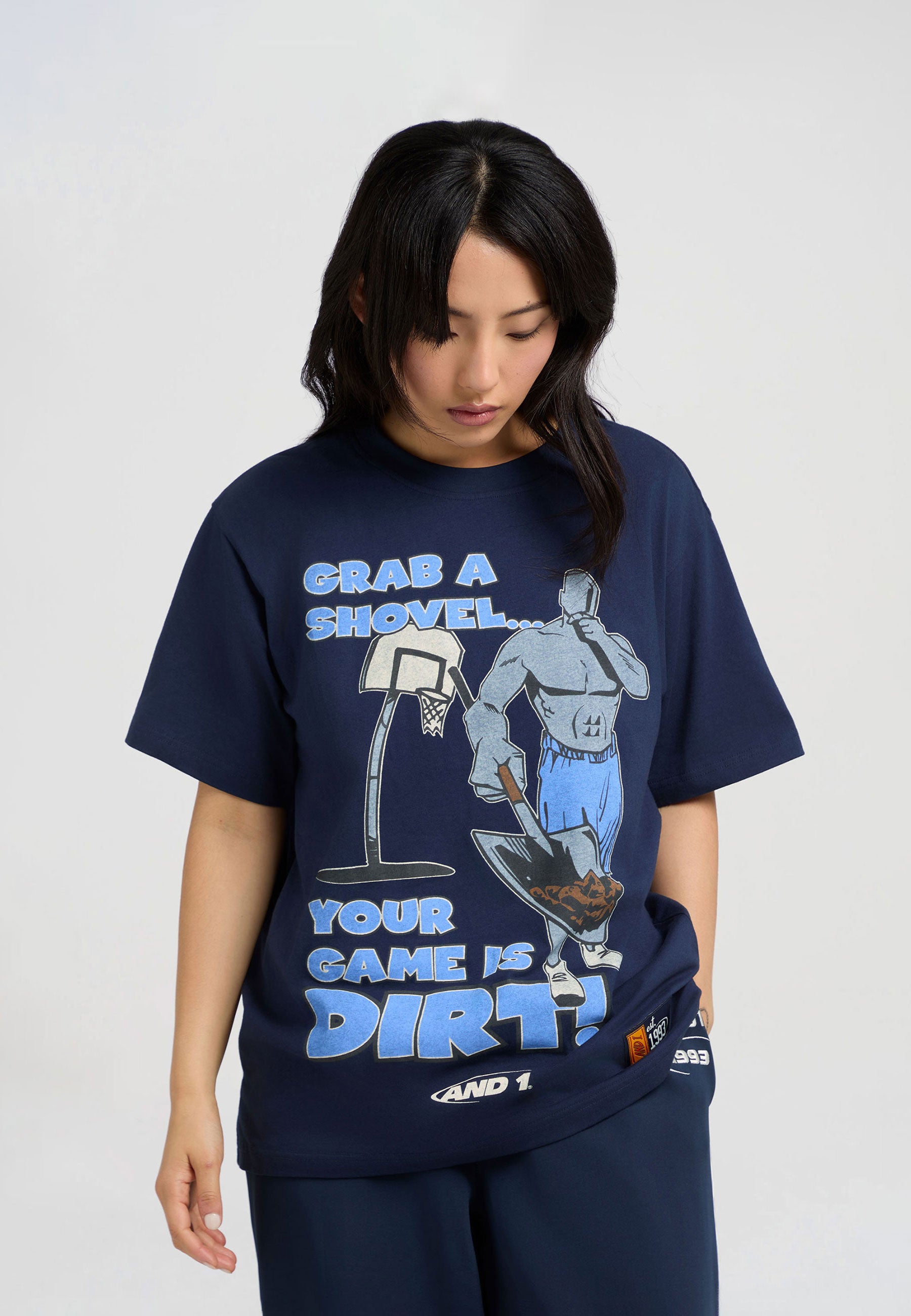 T-SHIRT FEMME « GRAB A SHOVEL TRASH TALK » bleu marine
