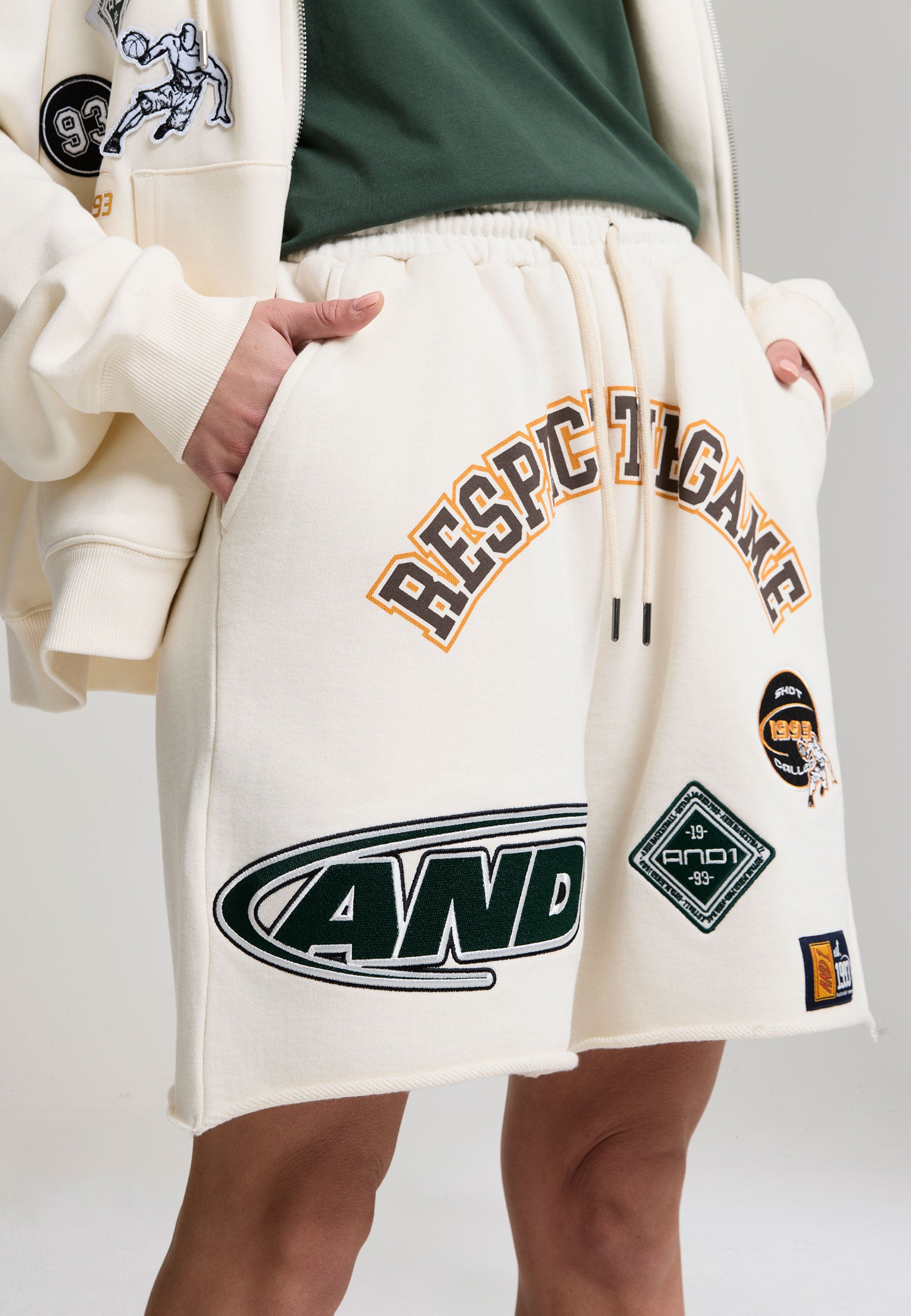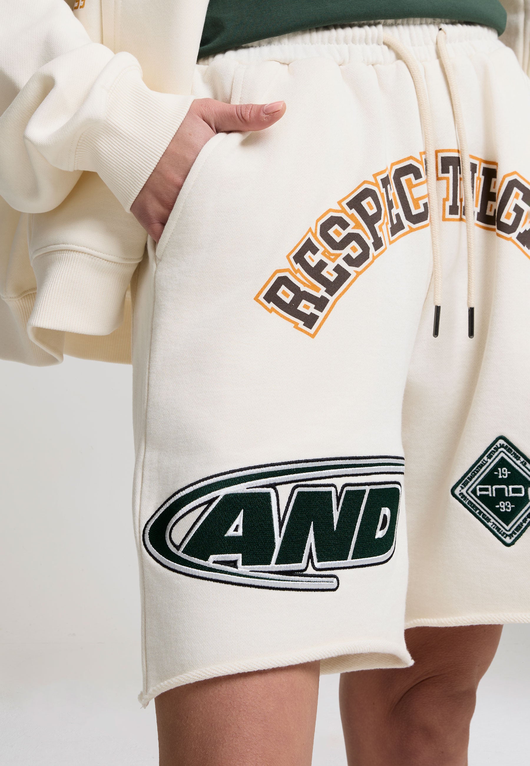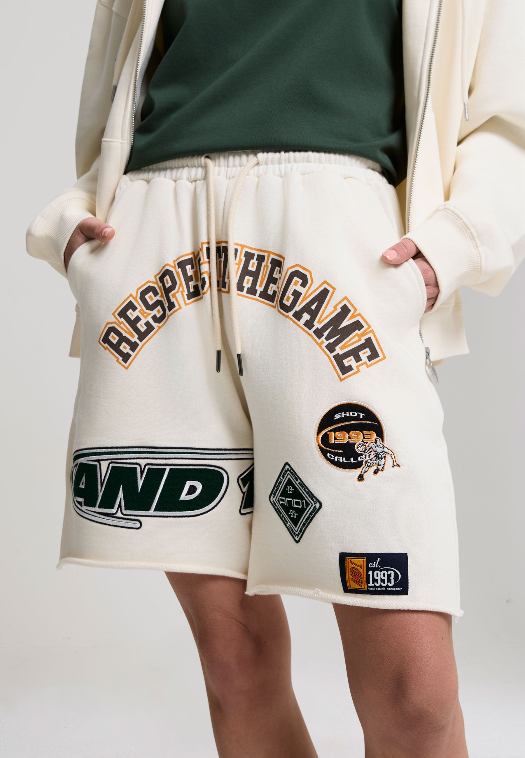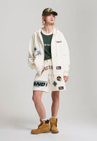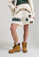 Womens Respect The Game Applique Badge Shorts - Ecru